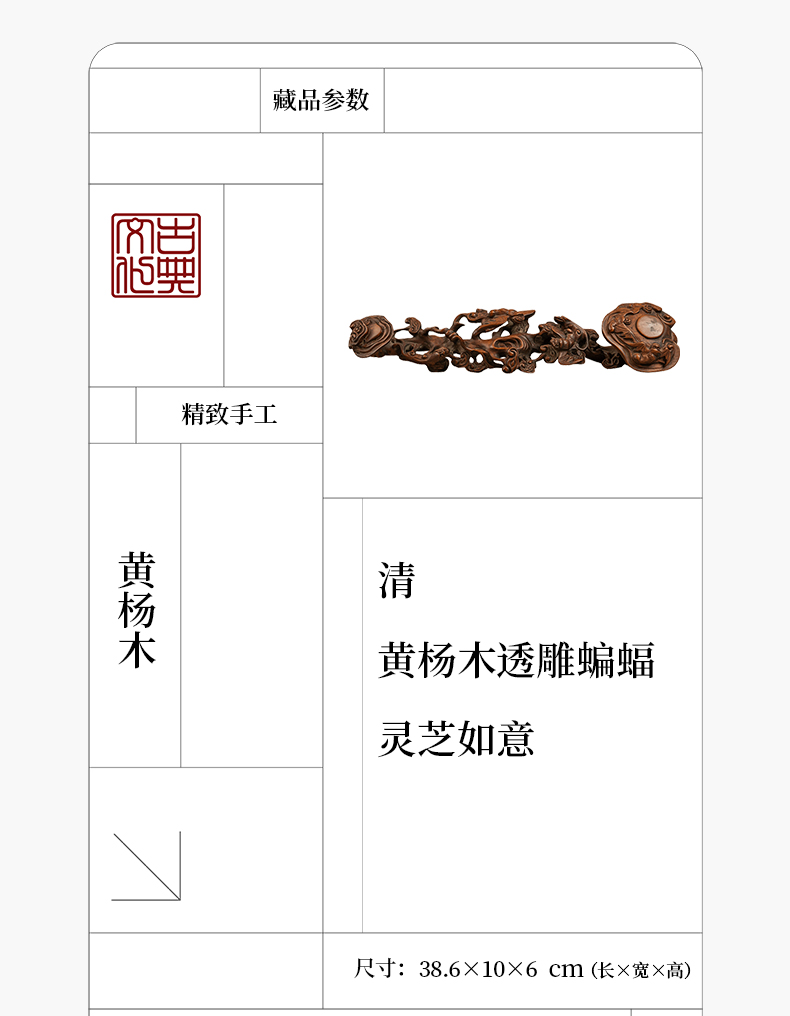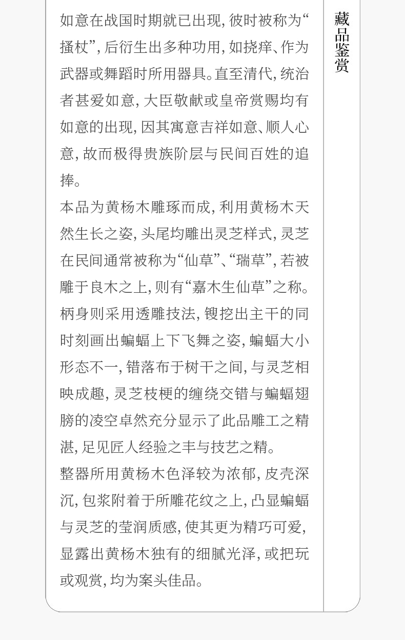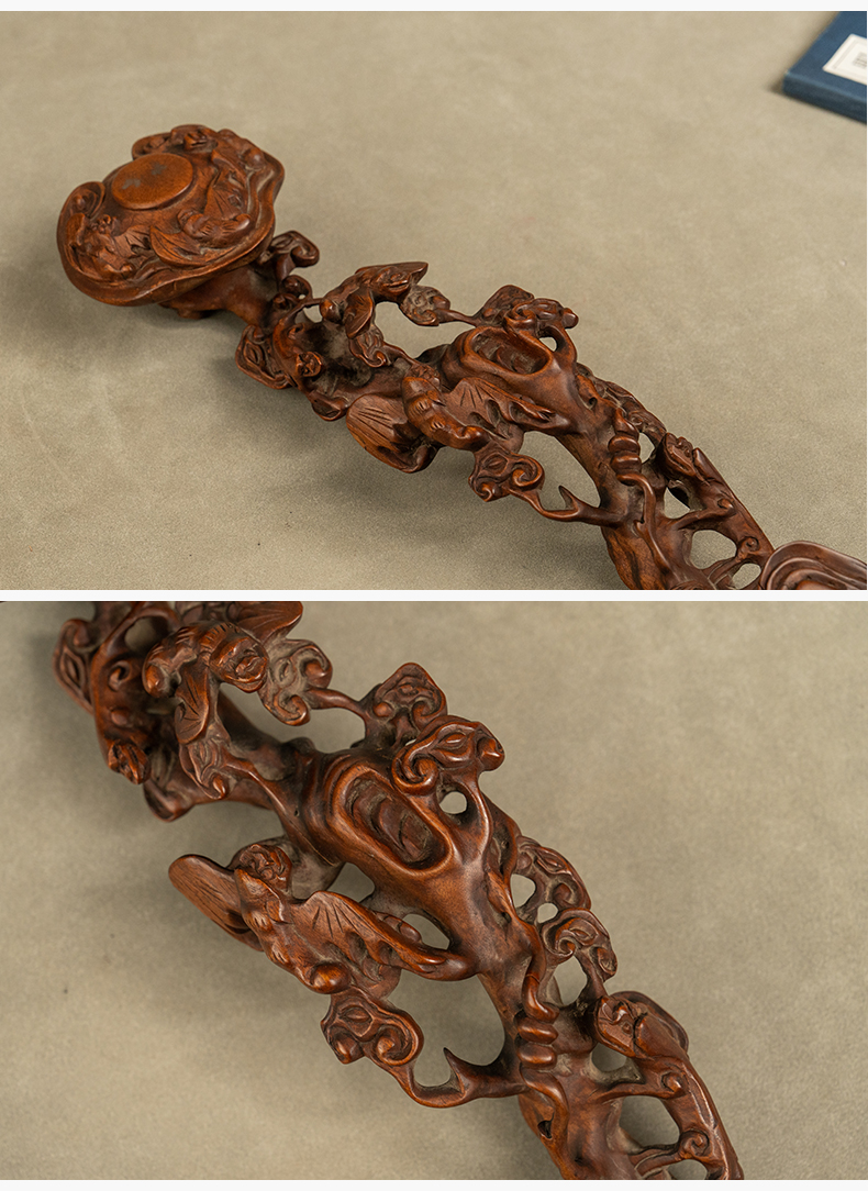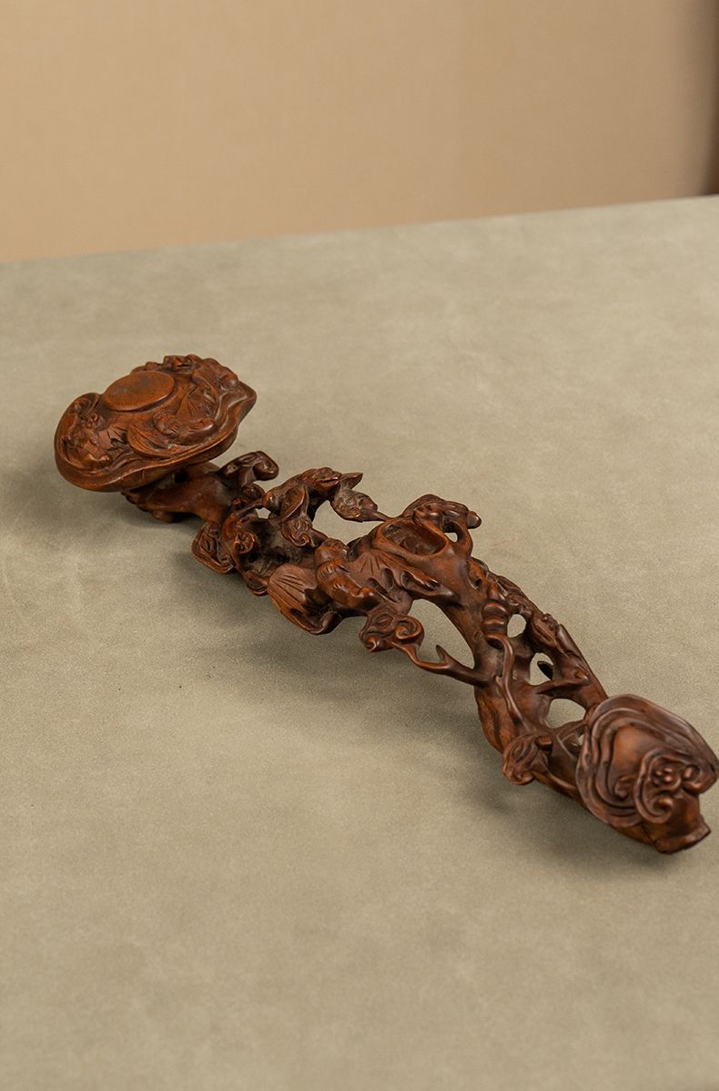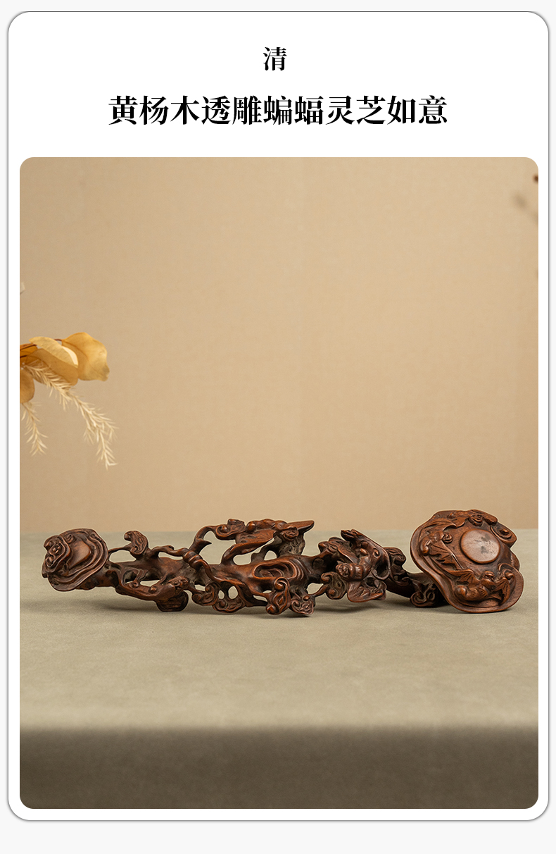清 黄杨木透雕蝙蝠灵芝如意