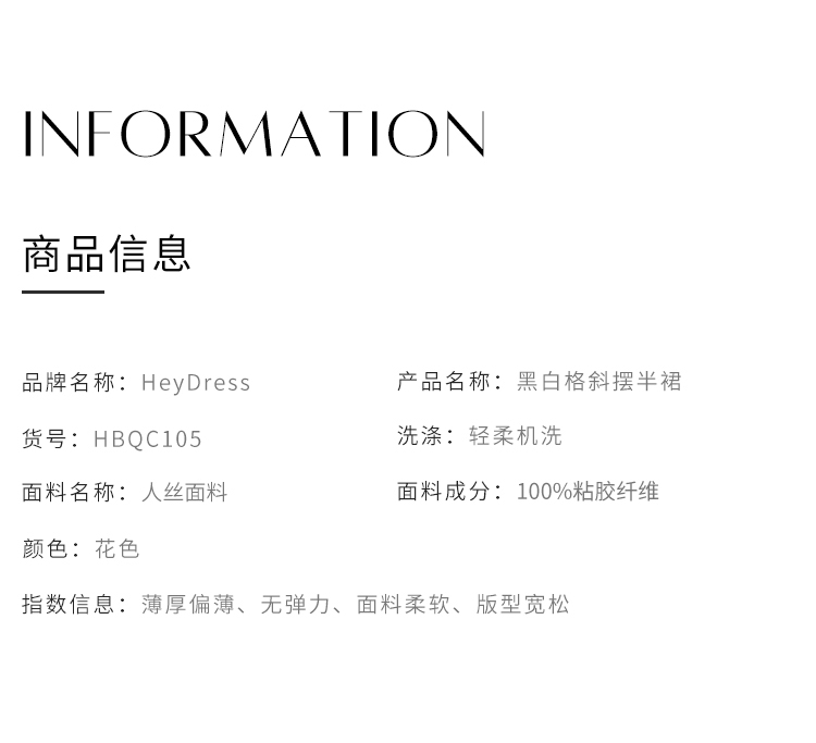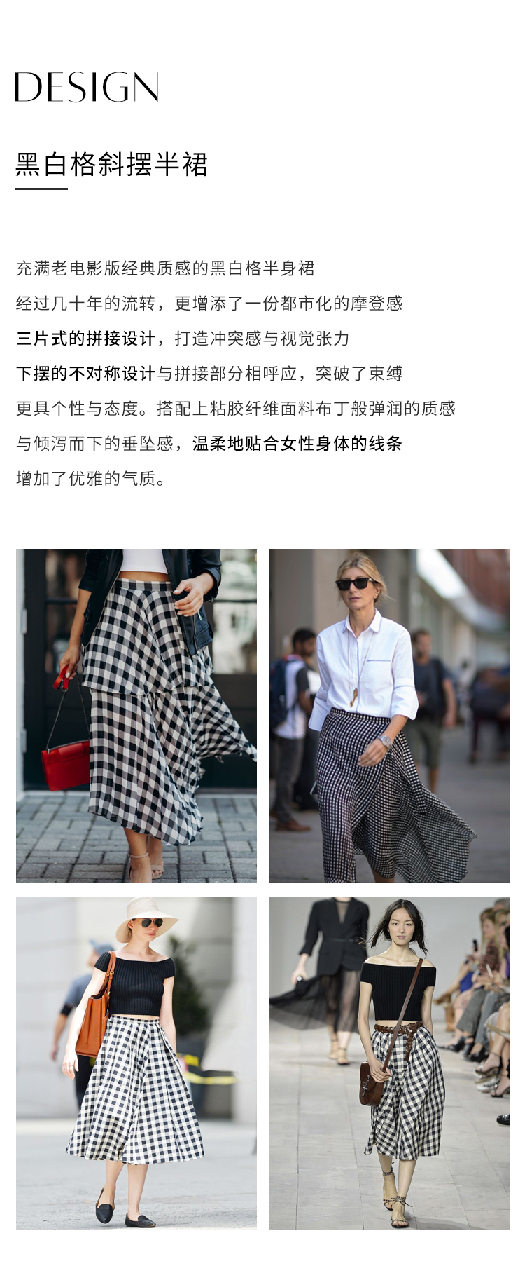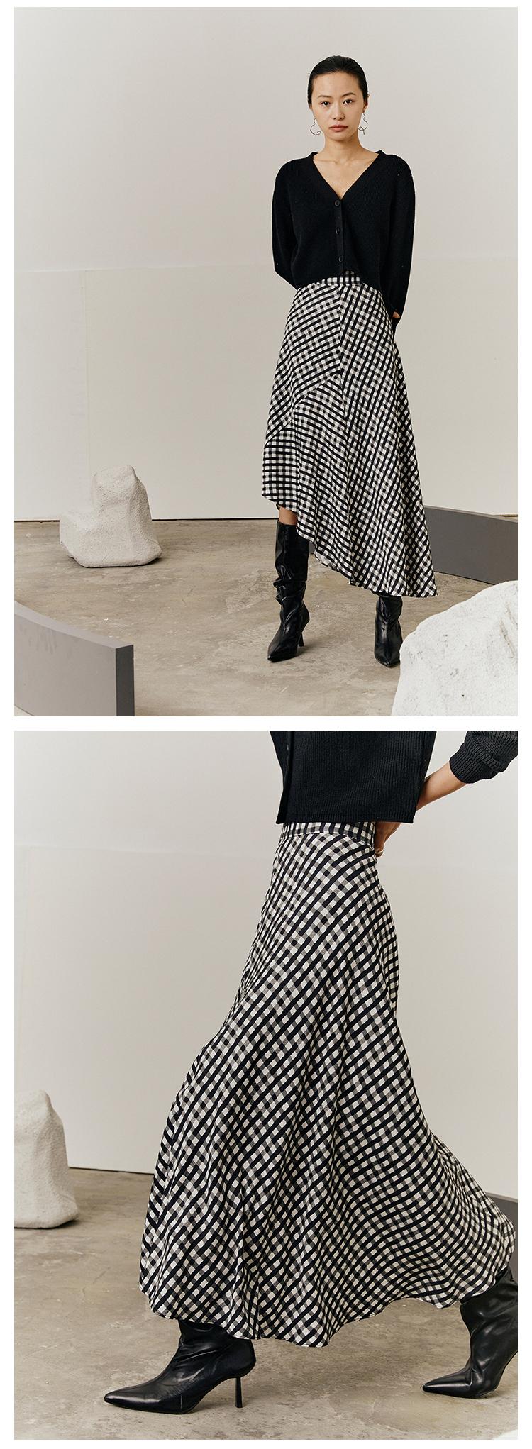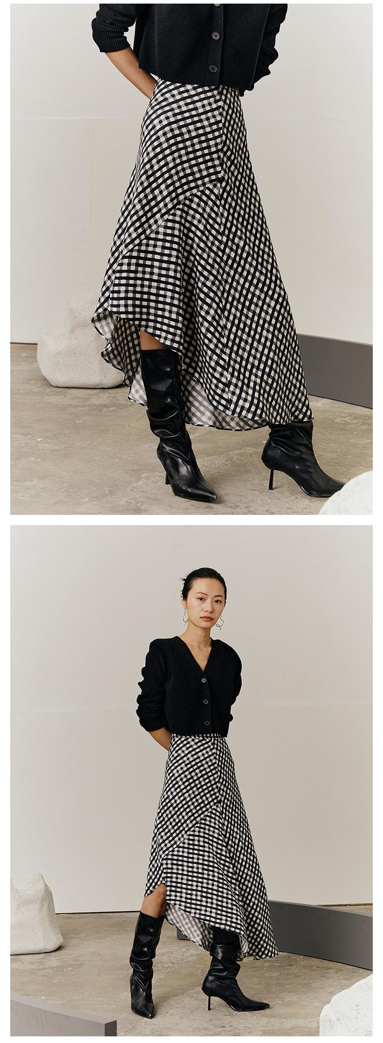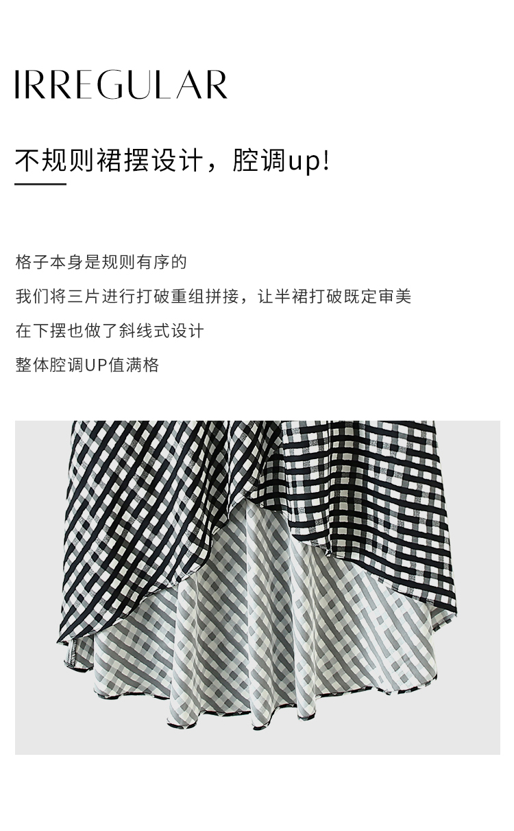 HeyDress格子女新款小众不规则拼接设计感高腰半裙子