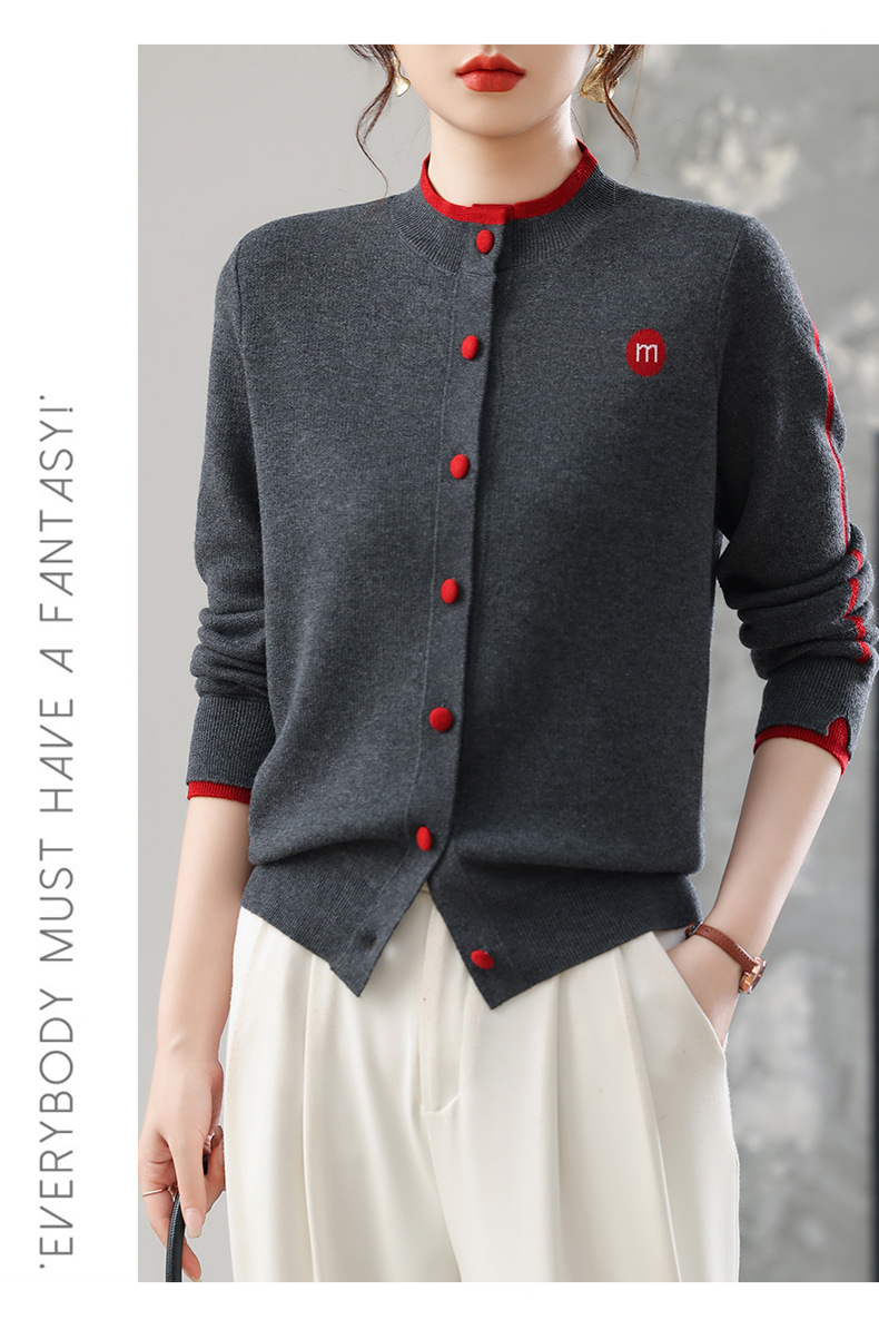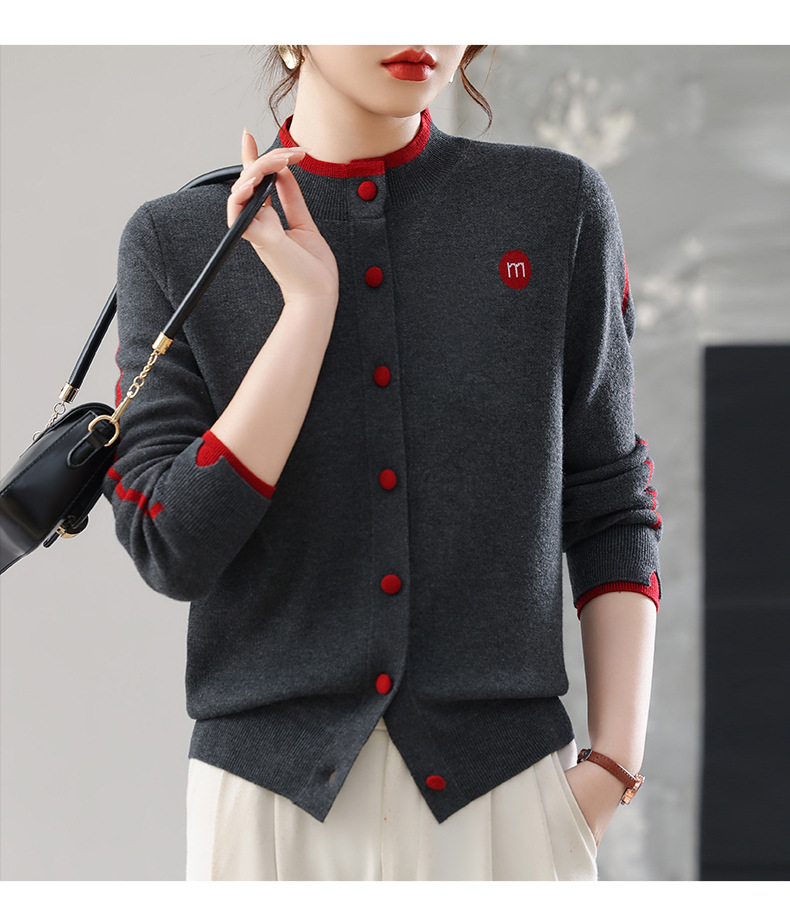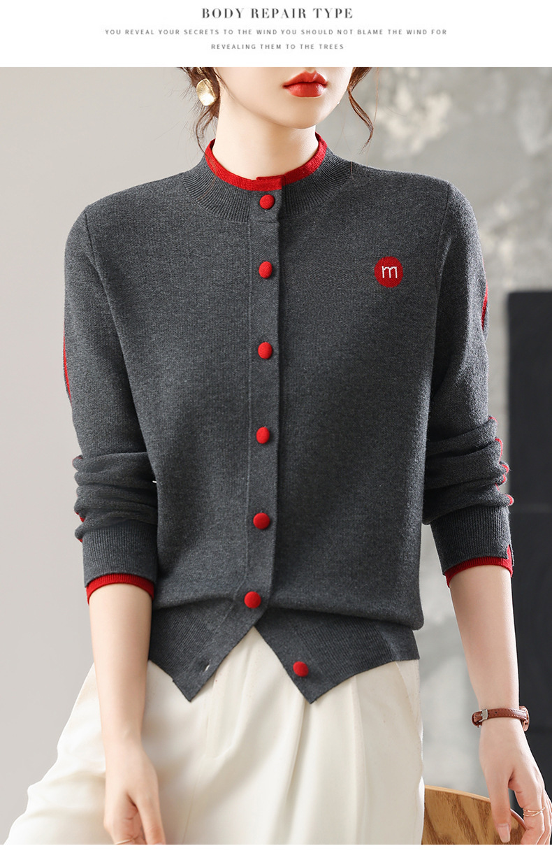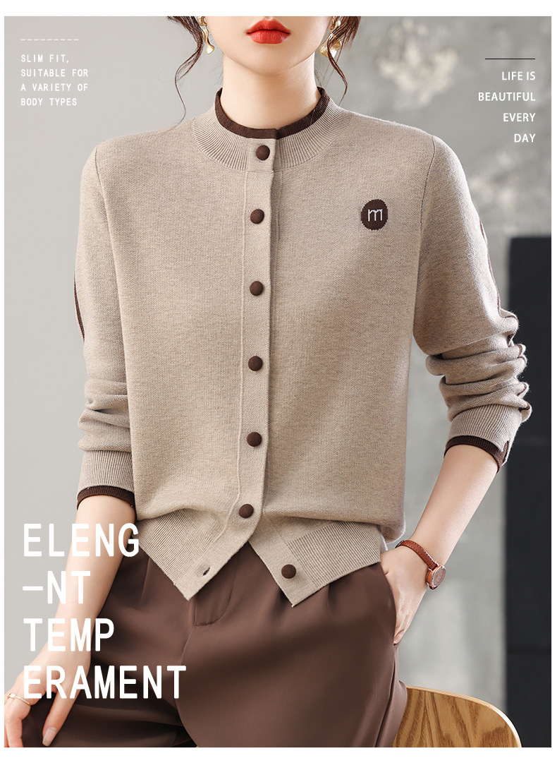 CC女士早秋短款夹克外套2025秋季新款女装休闲百搭针织开衫立领上衣
