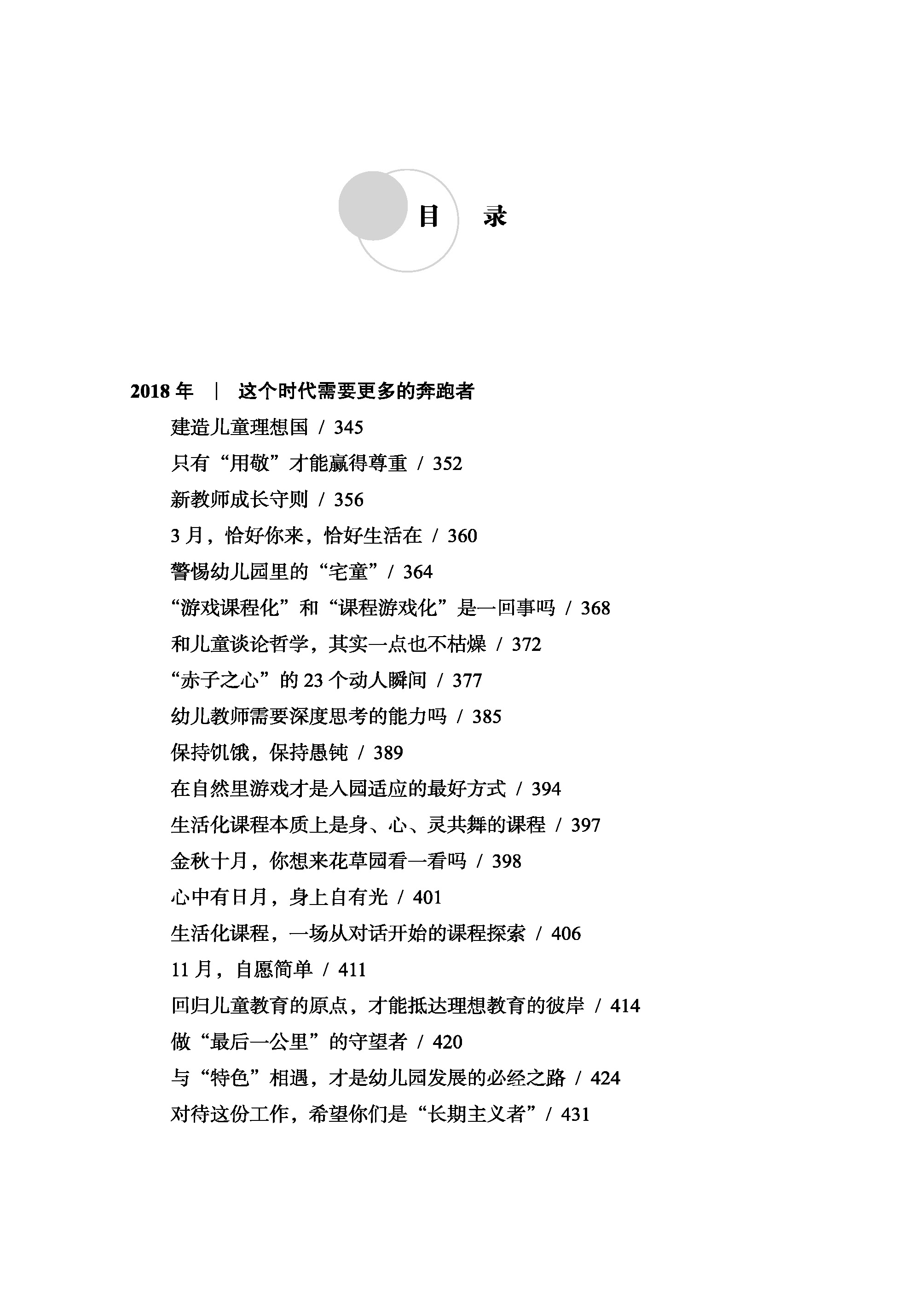 本书记录了胡华园长从2006年至2020年对具体生活事件和教育的感悟,展现了她在专业及心灵方面的成长之路,呈现了“给童年留白”这一认识背后由繁入简的思想蜕变过程。