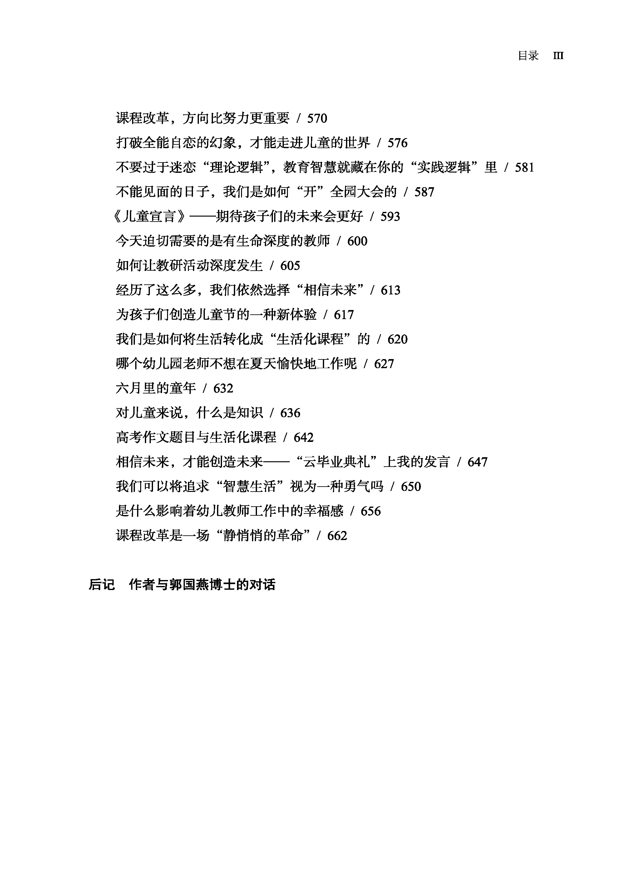 已出版《幼儿园生活化课程—回归传统、自然与本真》《给童年留白—让孩子活在自然里的幼儿园》等多部著作。