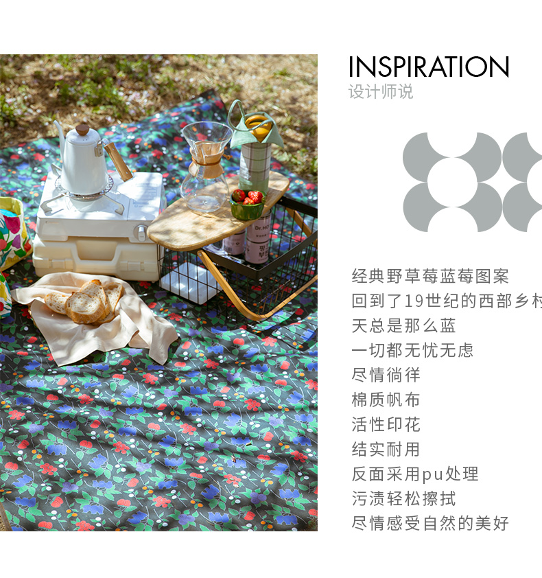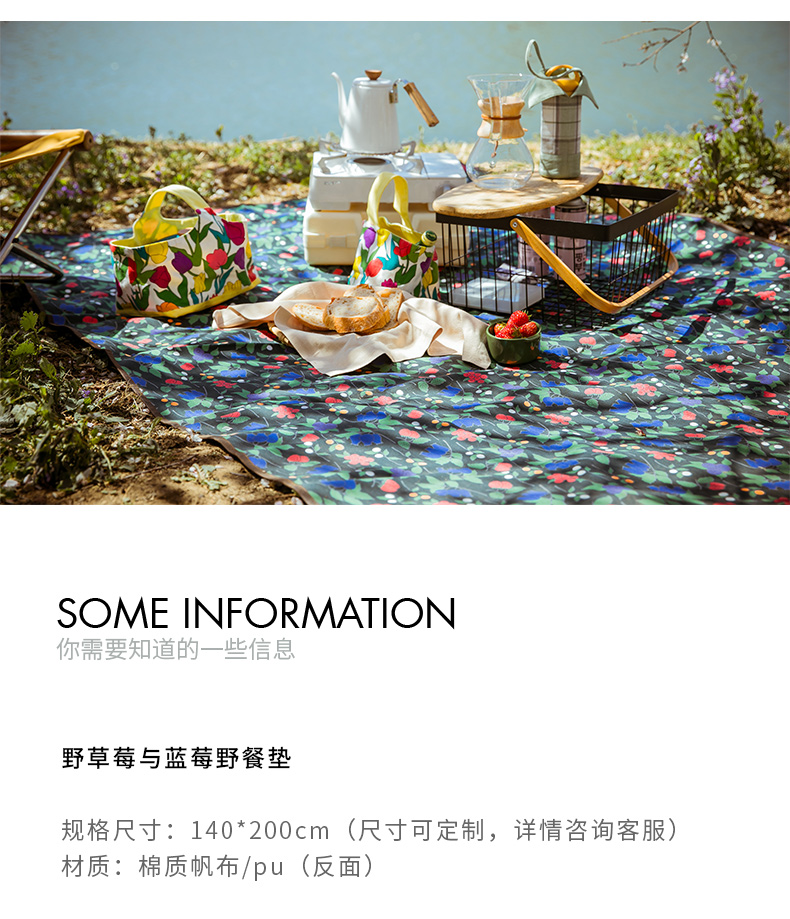 野草莓与蓝莓野餐垫户外加厚防潮垫