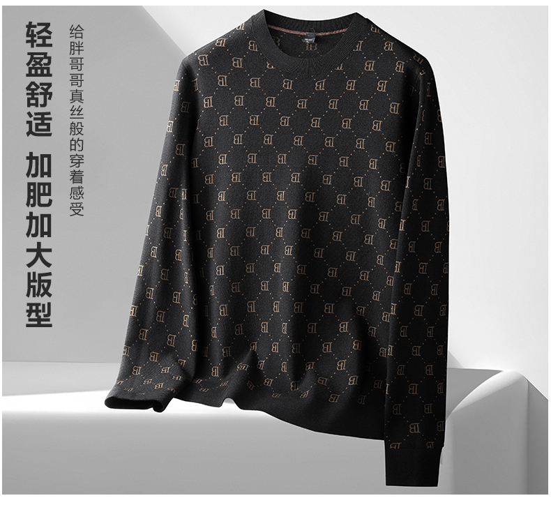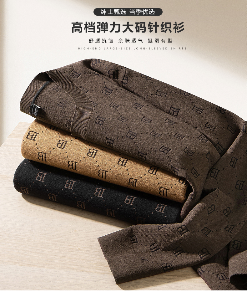 【圈】【绢丝绒】【新款DDS】大依优型大码男装针织衫毛衫毛衣休闲加肥加大男士胖子大码内搭上衣打底衫