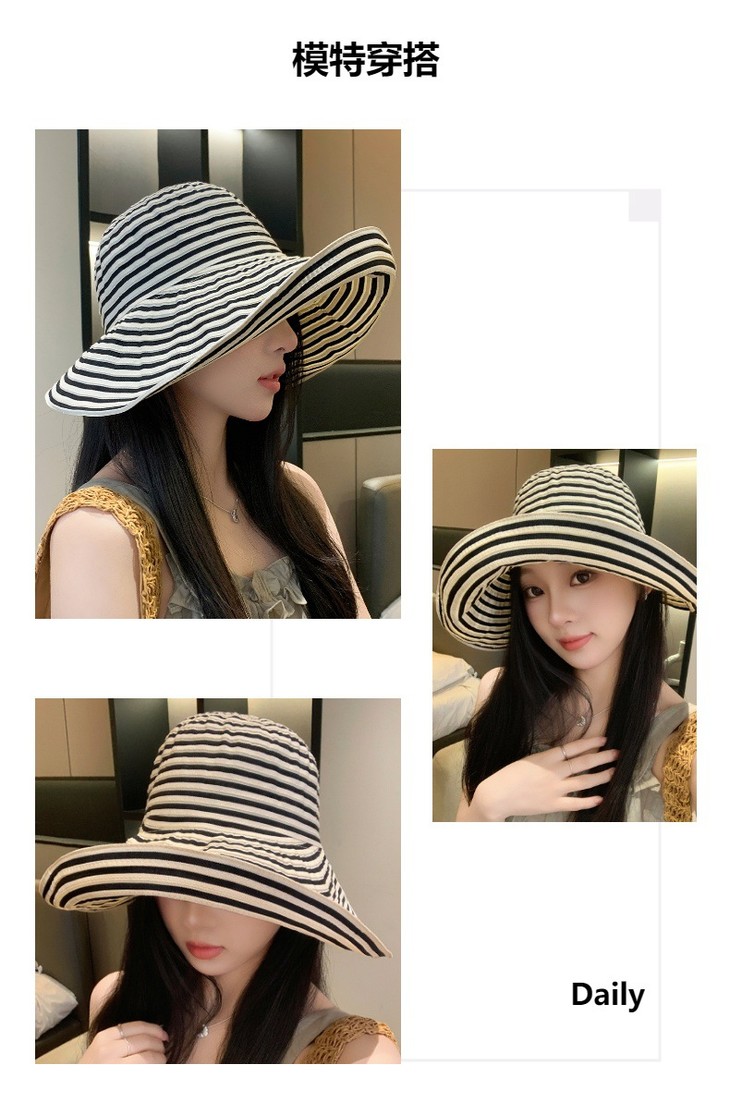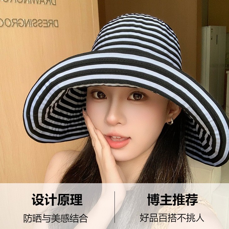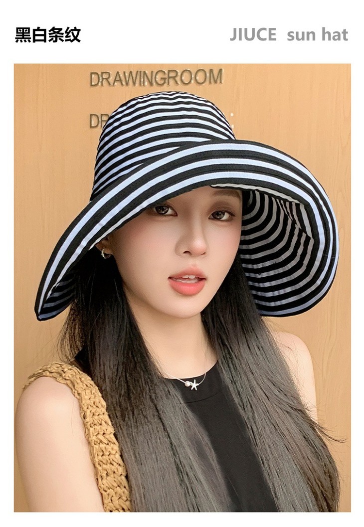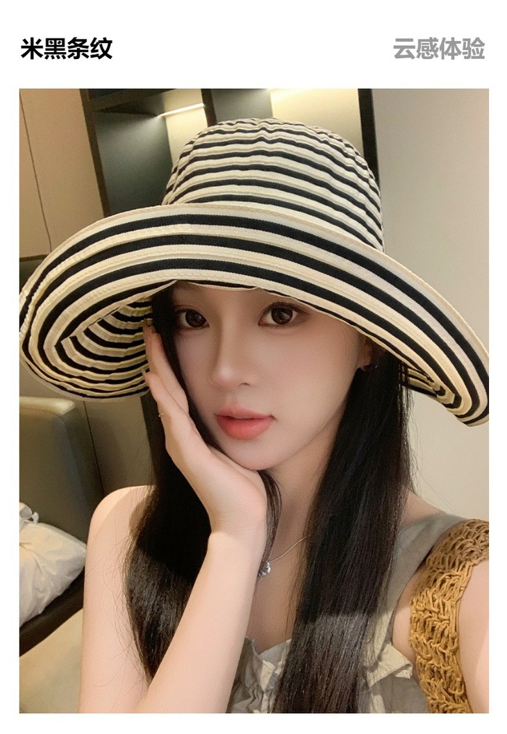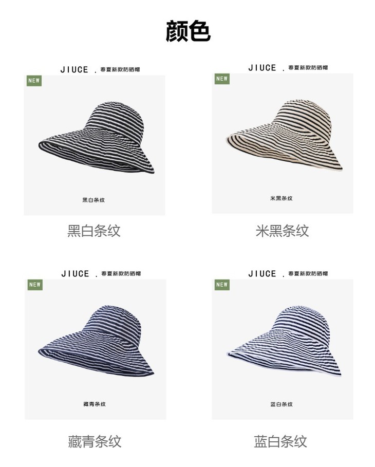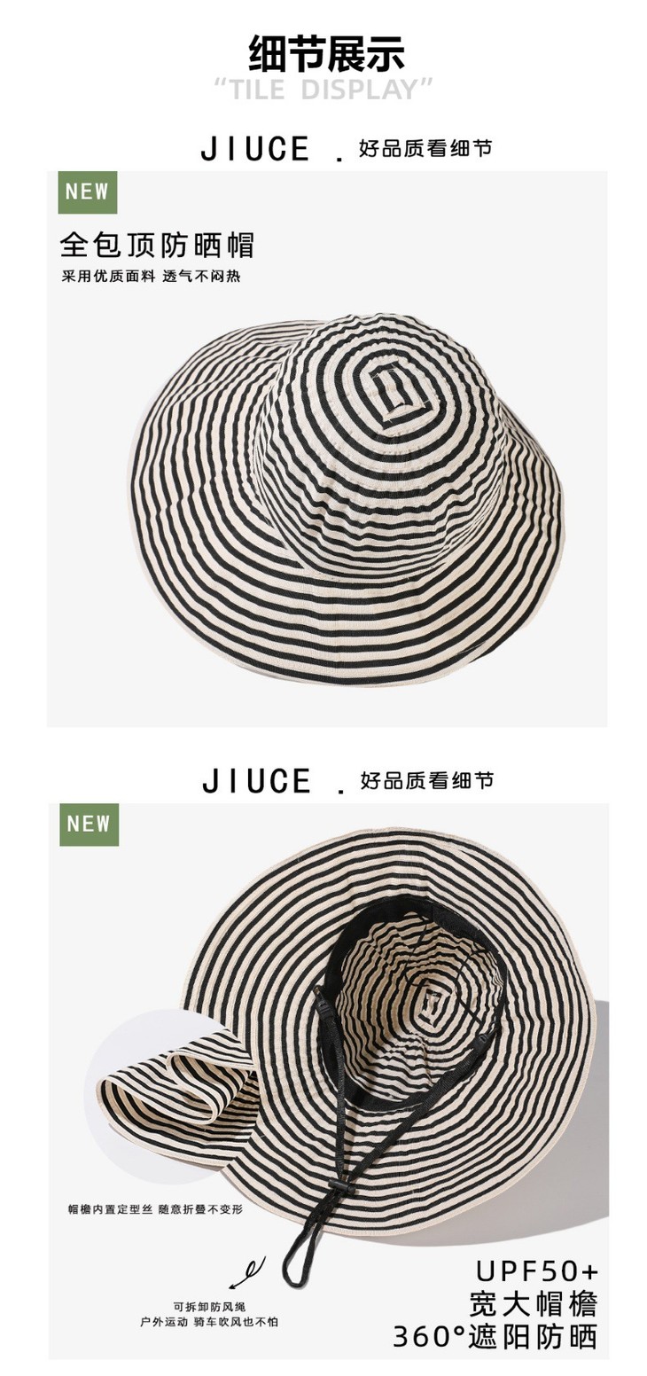 好品质条纹大沿度假慵懒风太阳帽遮脸防晒帽JC3552