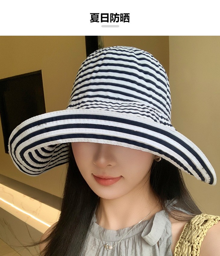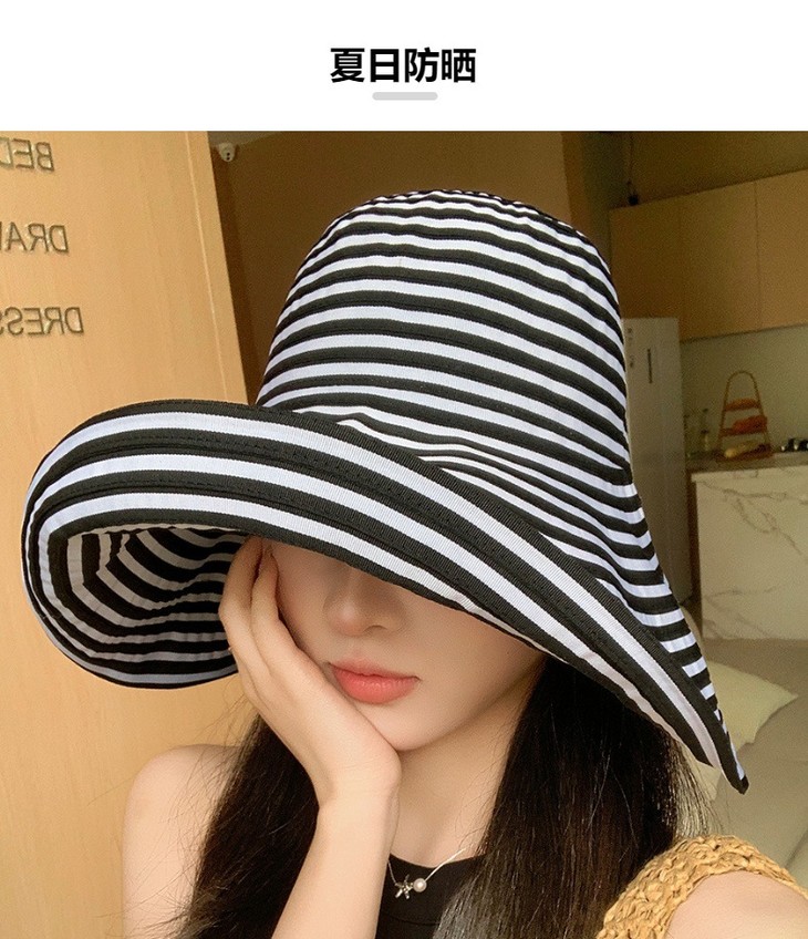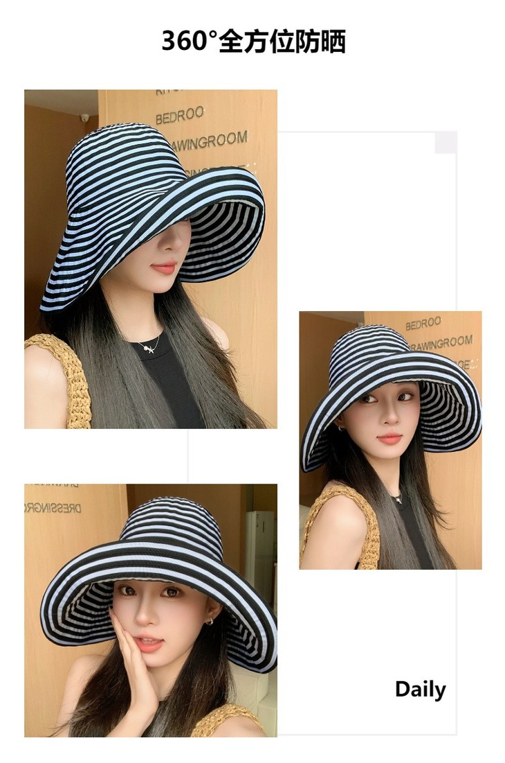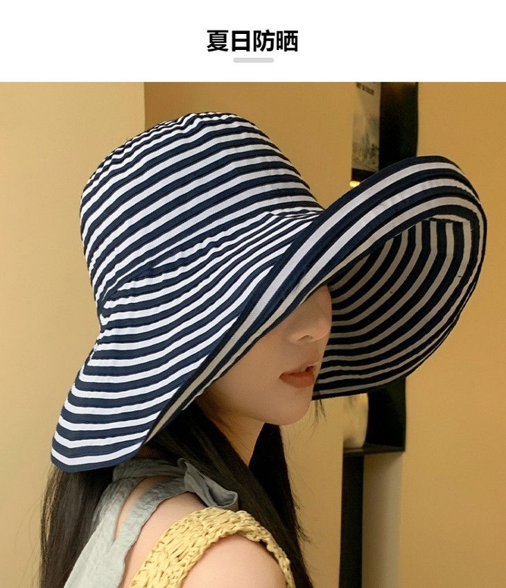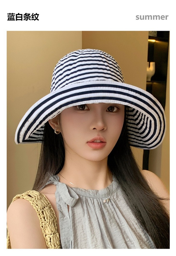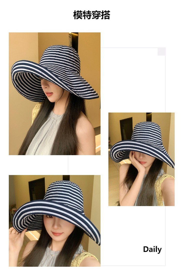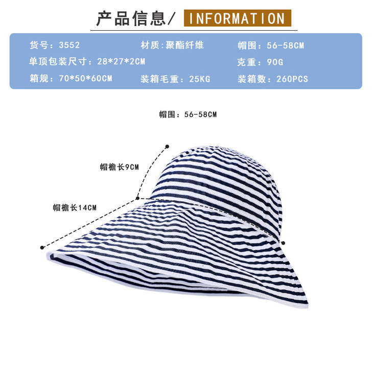 好品质条纹大沿度假慵懒风太阳帽遮脸防晒帽JC3552