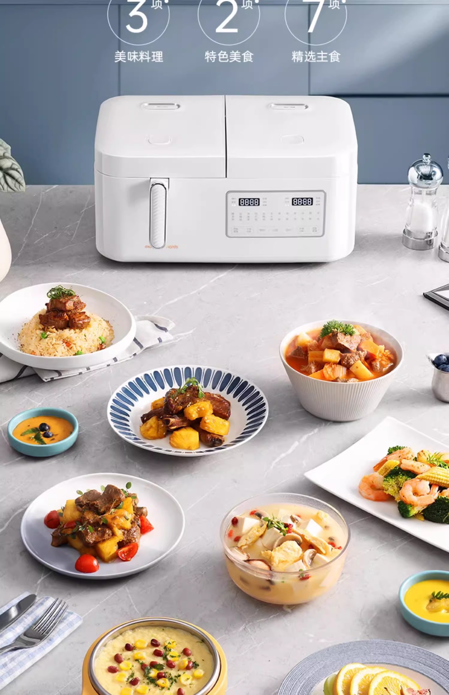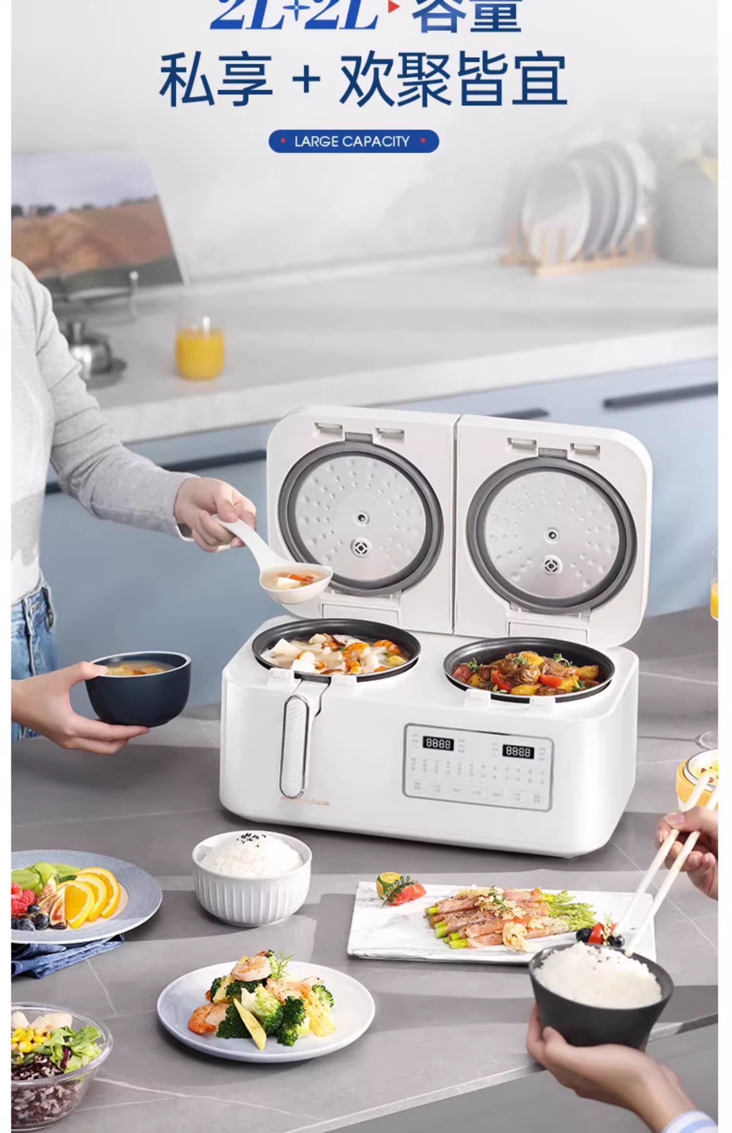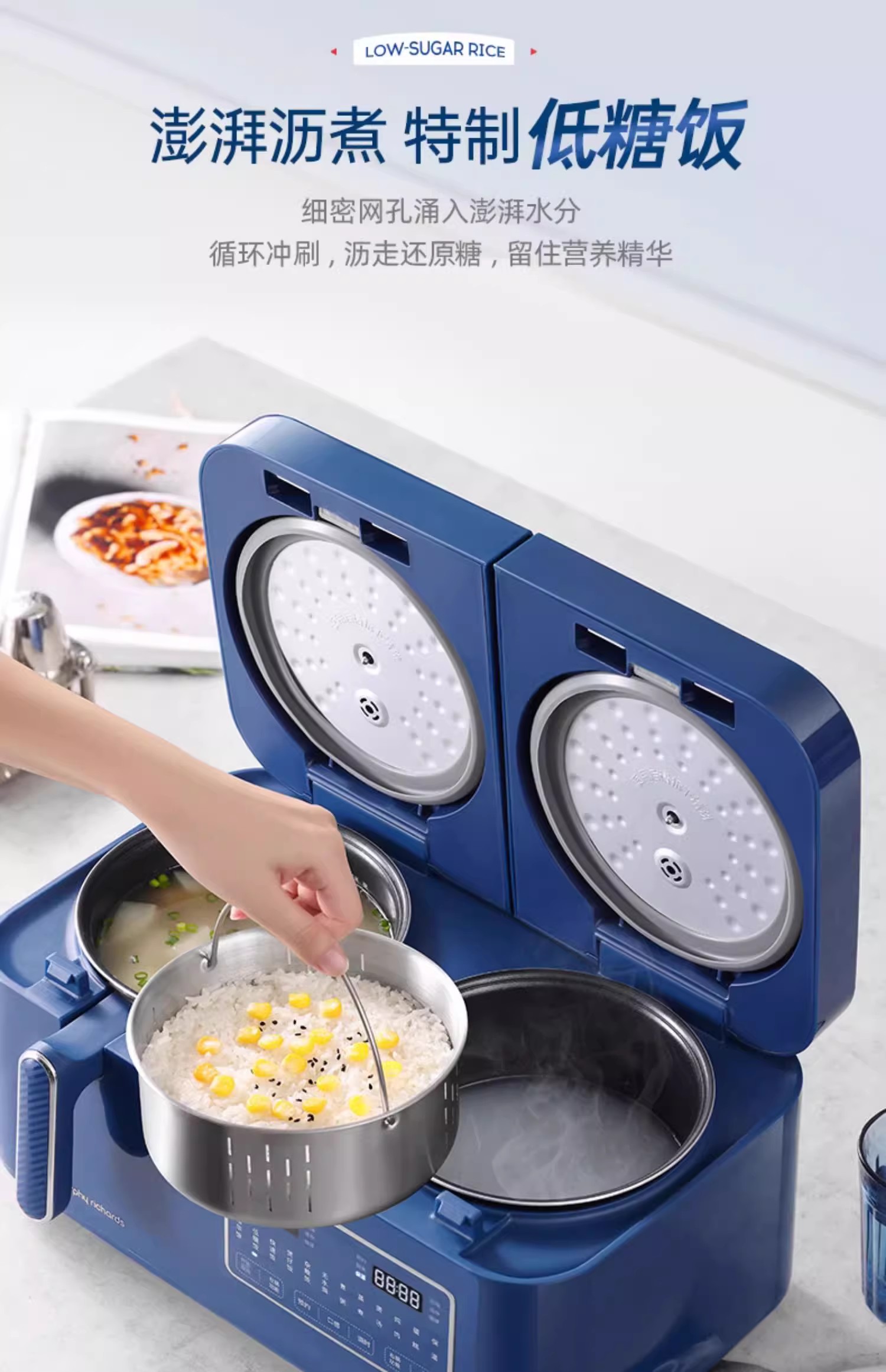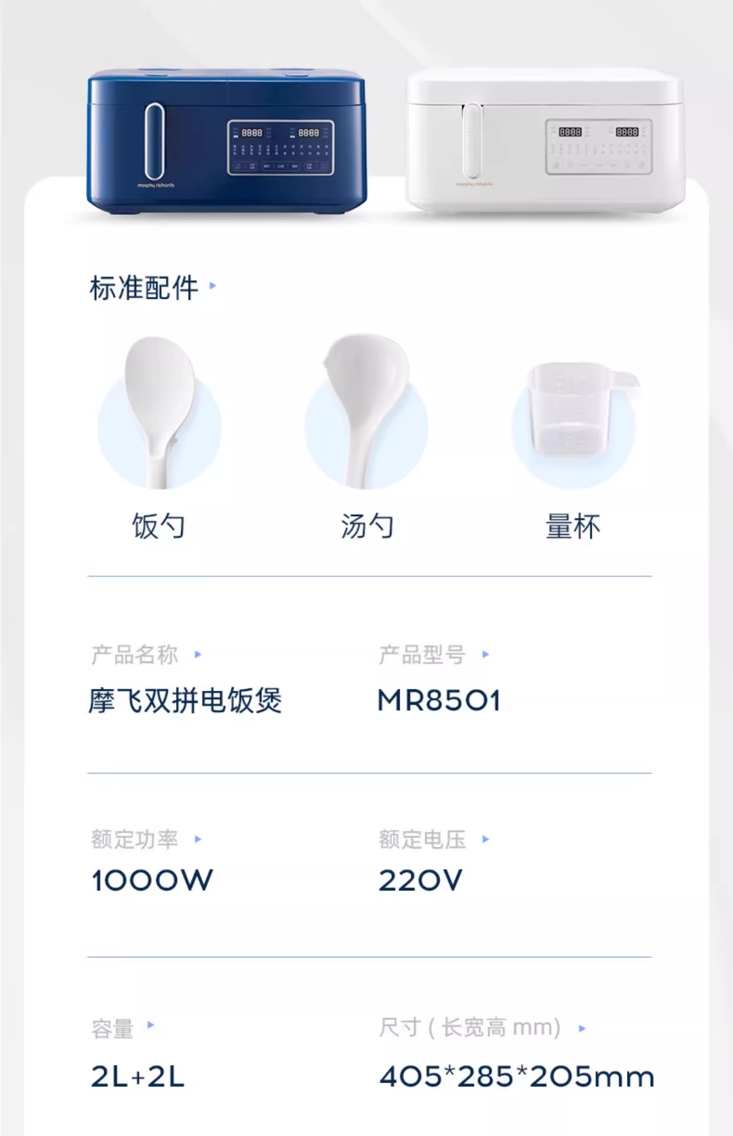 英国morphy摩飞MR8501双拼电饭煲(轻奢蓝)