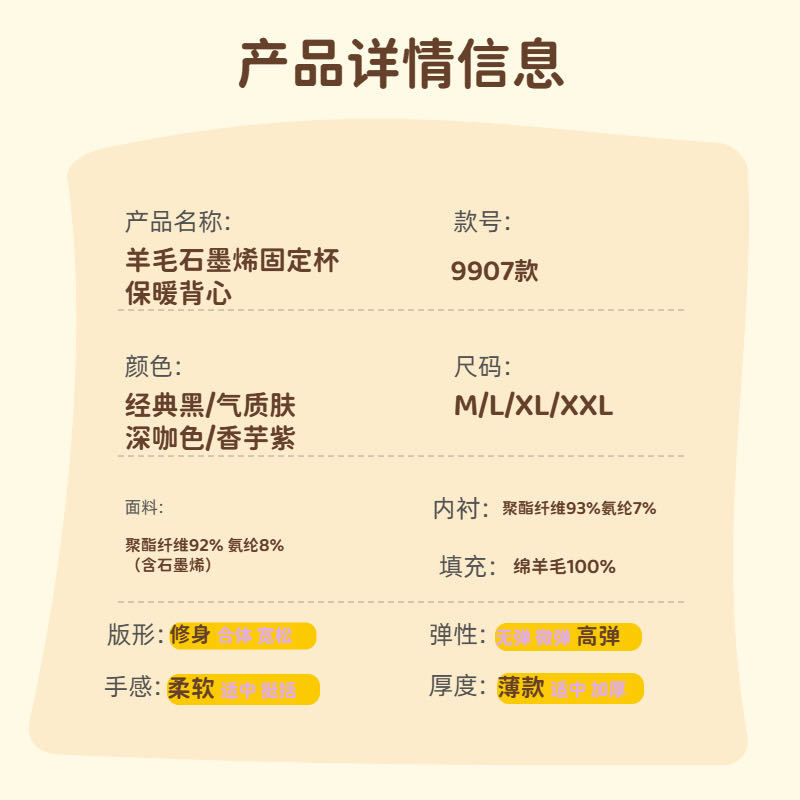 雀说 100%羊毛背心女士石墨烯固定杯罩杯一体内搭外穿秋冬磨毛保暖马甲T86