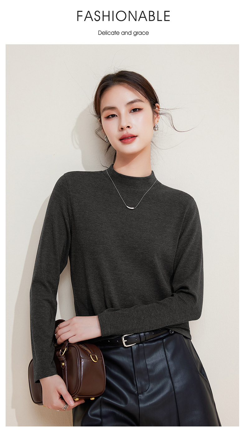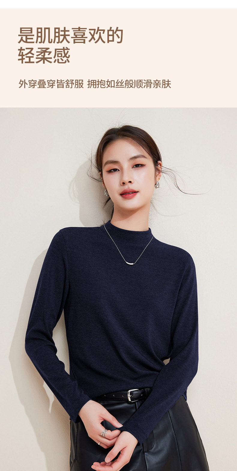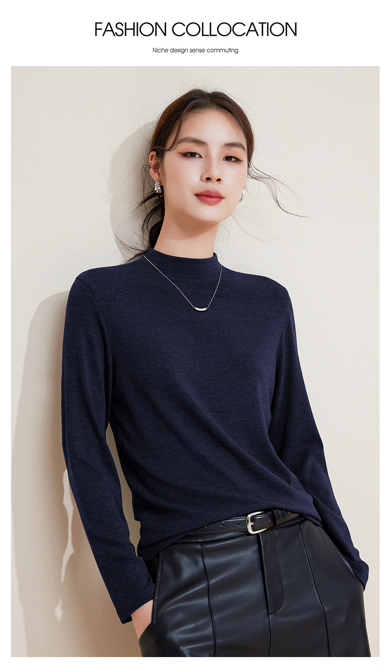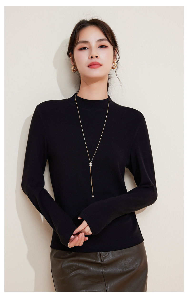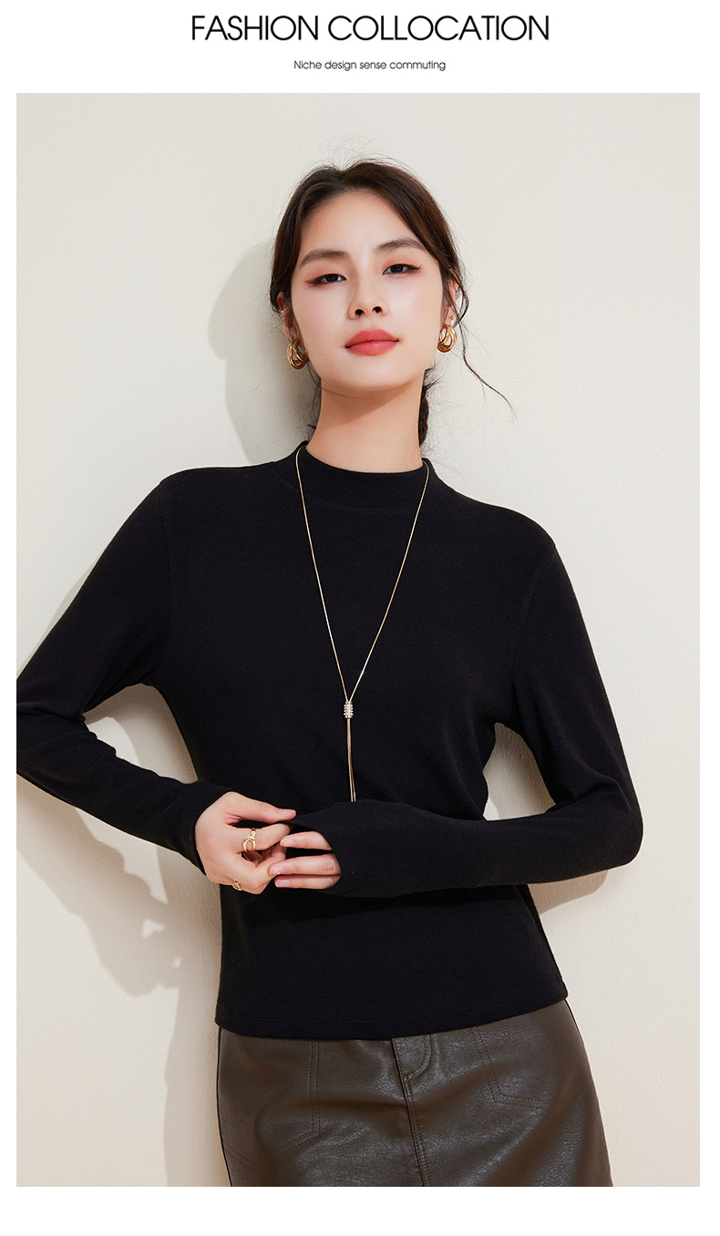 丁摩 打底衫女半高领黑色内搭高级感秋冬针织大码女装绵羊毛上衣5ZF-M948