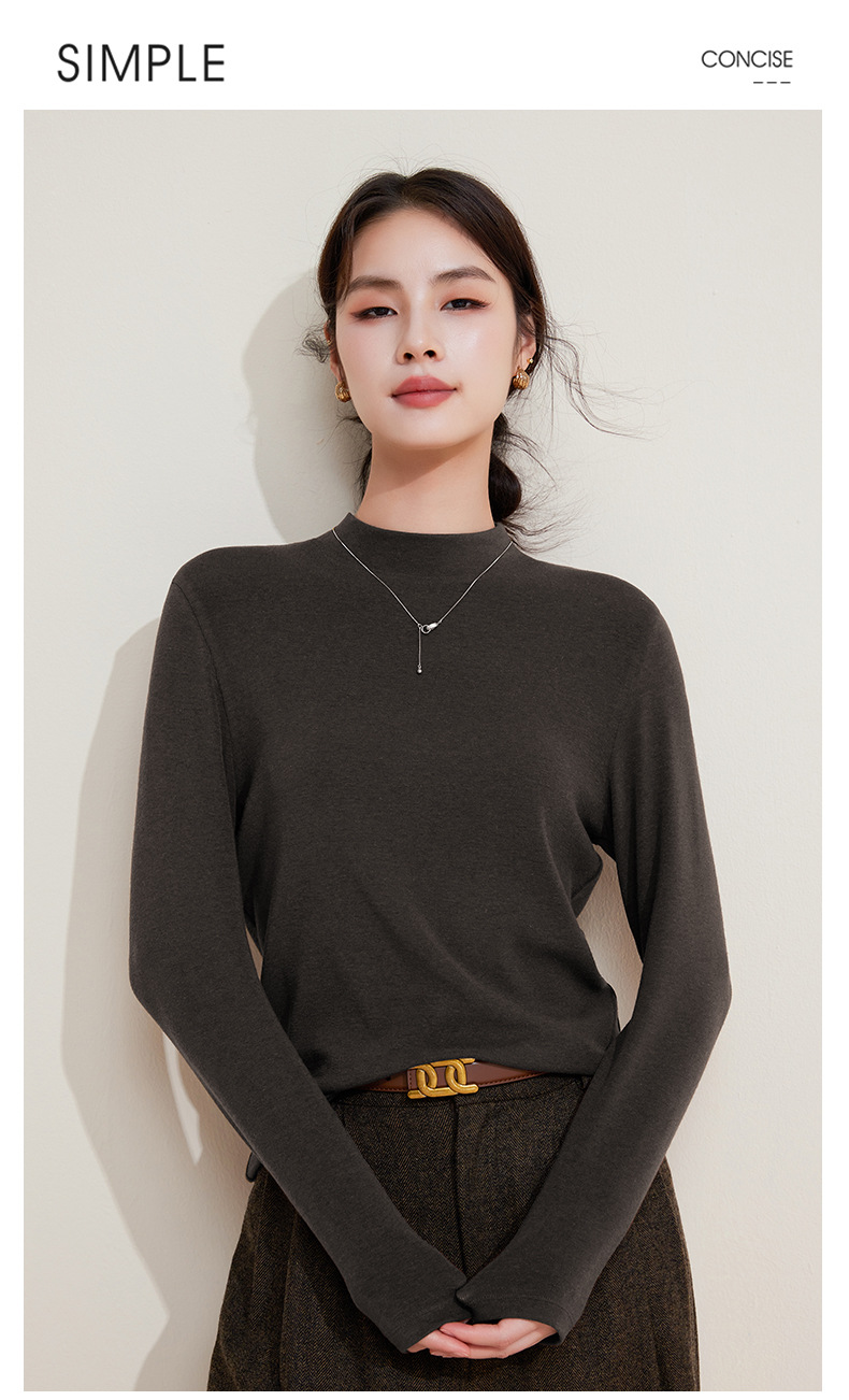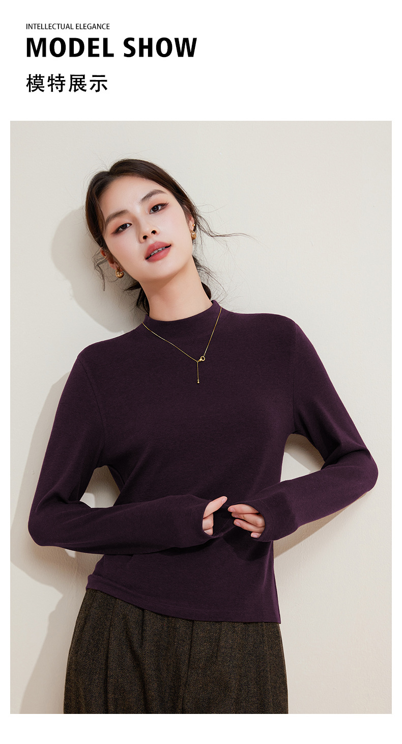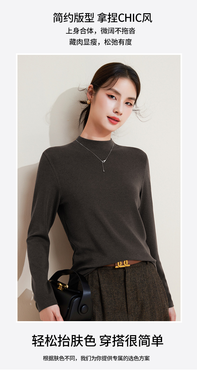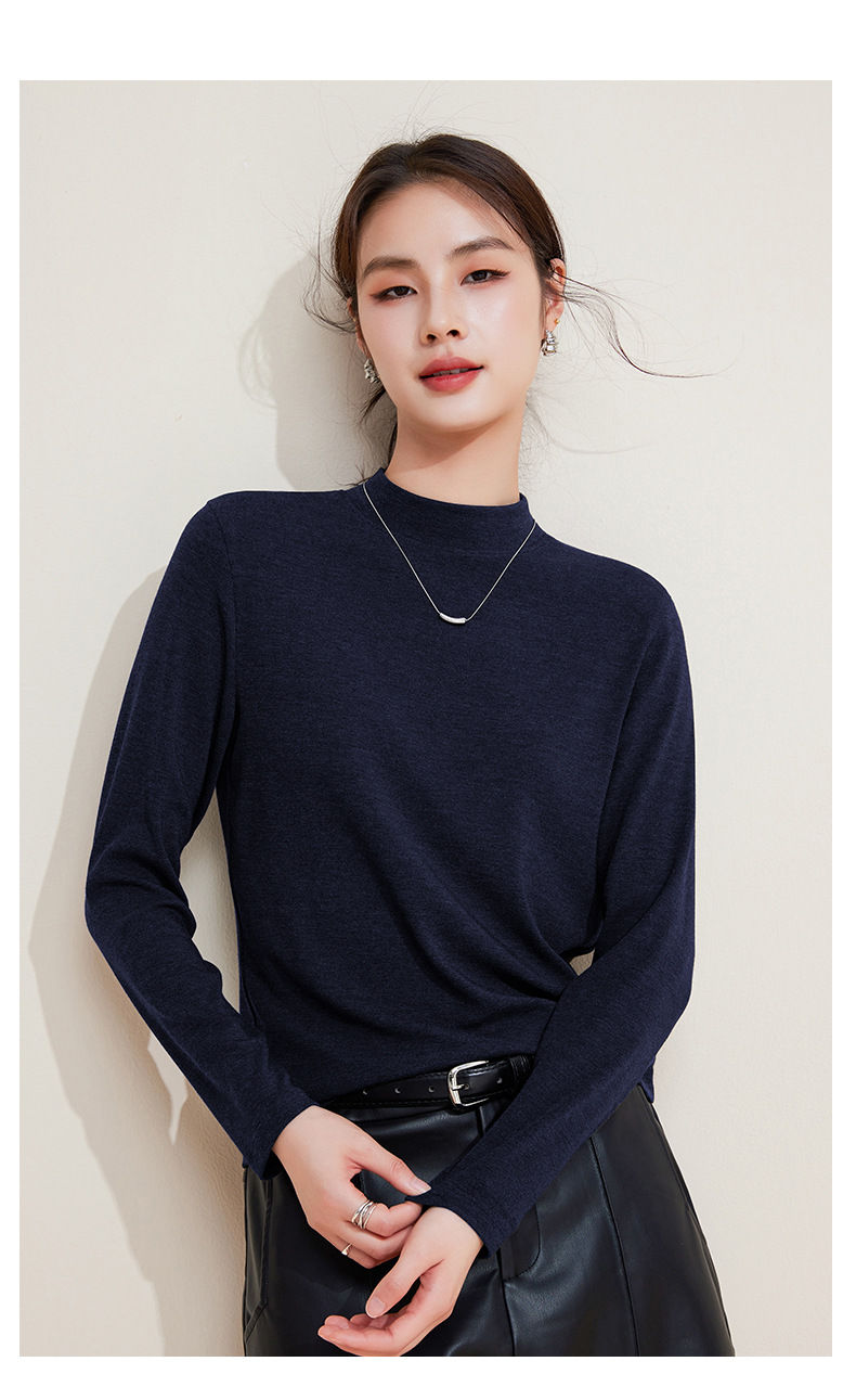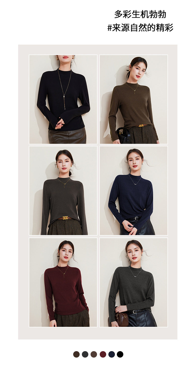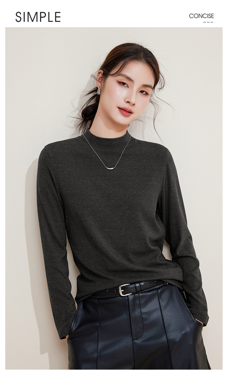 丁摩 打底衫女半高领黑色内搭高级感秋冬针织大码女装绵羊毛上衣5ZF-M948