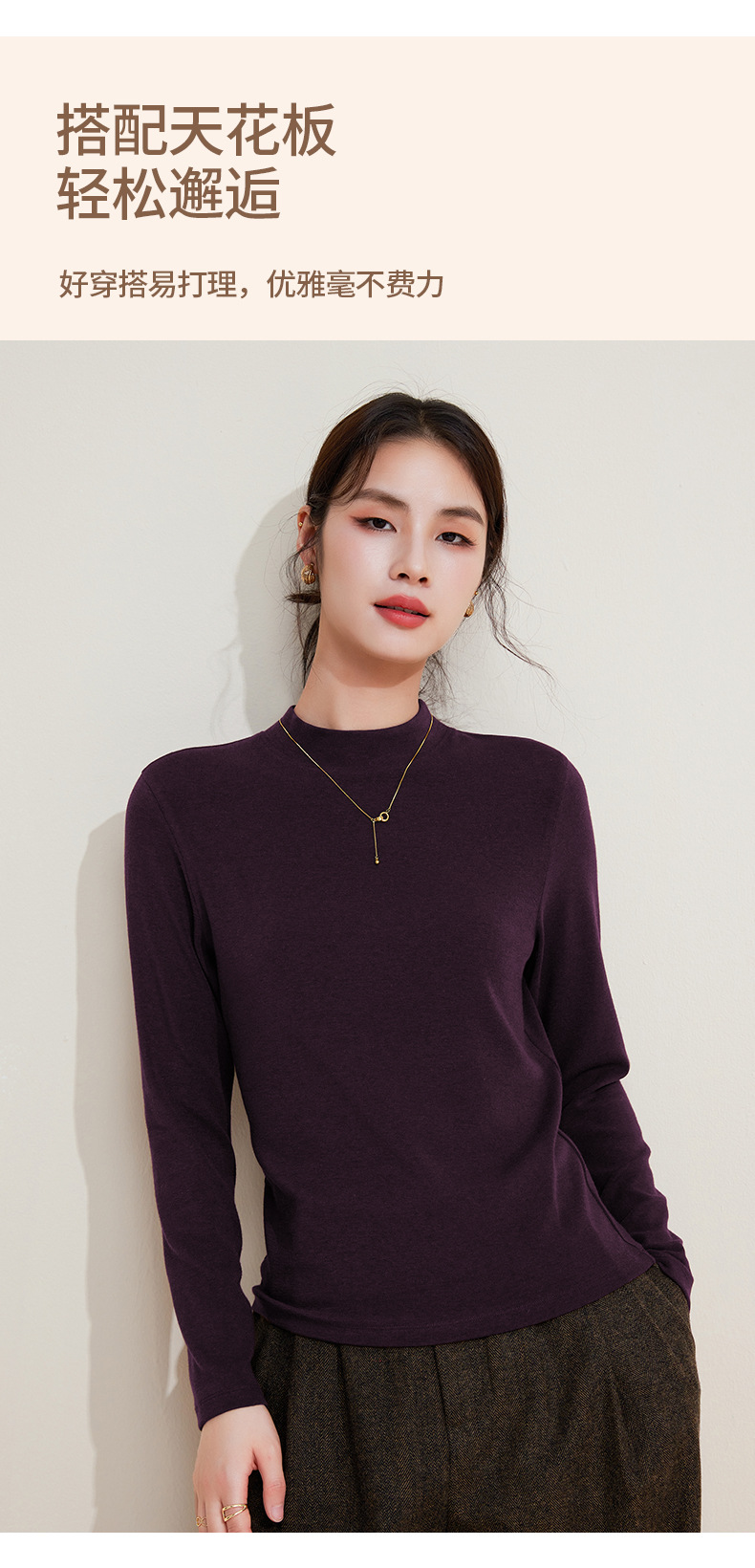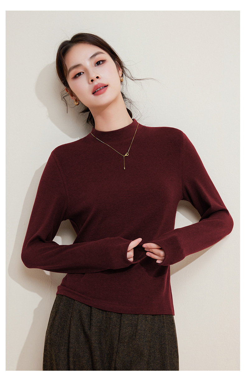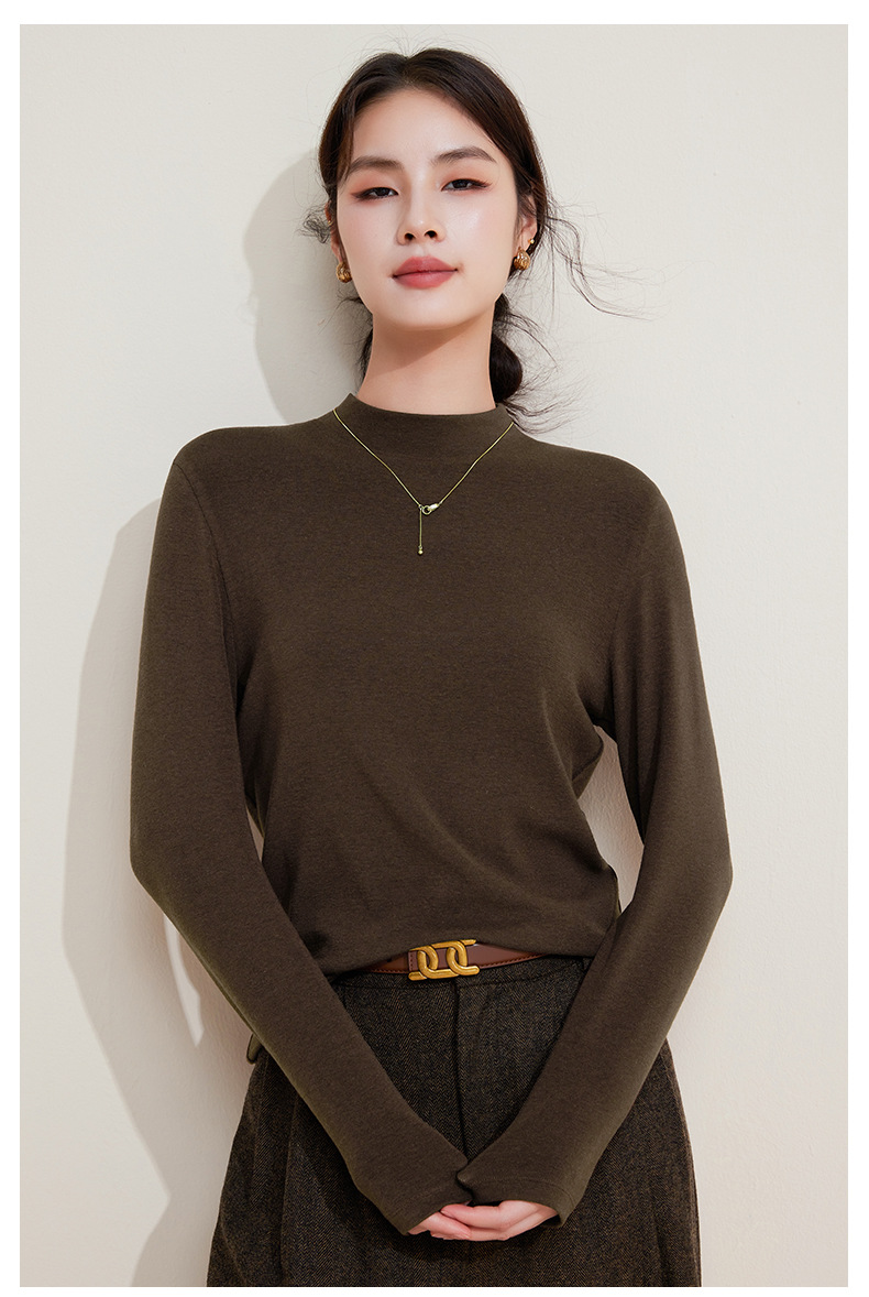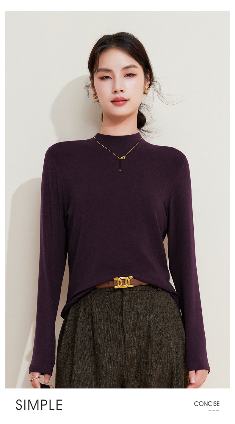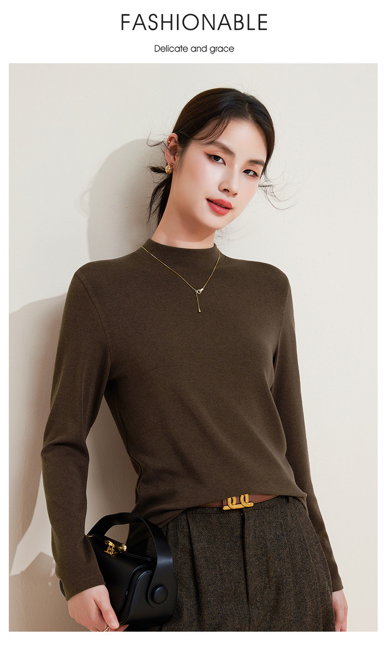 丁摩 打底衫女半高领黑色内搭高级感秋冬针织大码女装绵羊毛上衣5ZF-M948