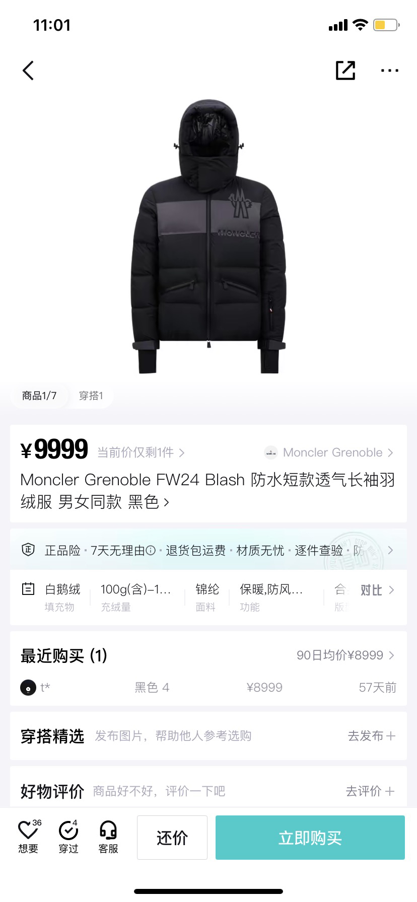 🦋 Moncler Grenoble 连帽防水滑雪鹅绒服