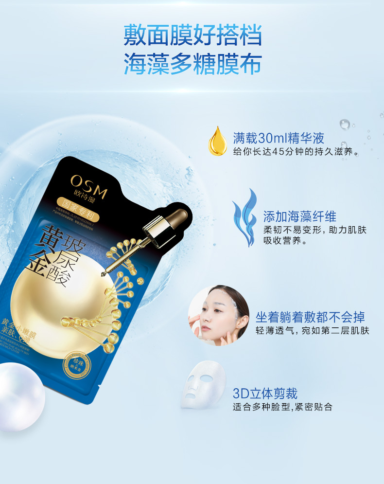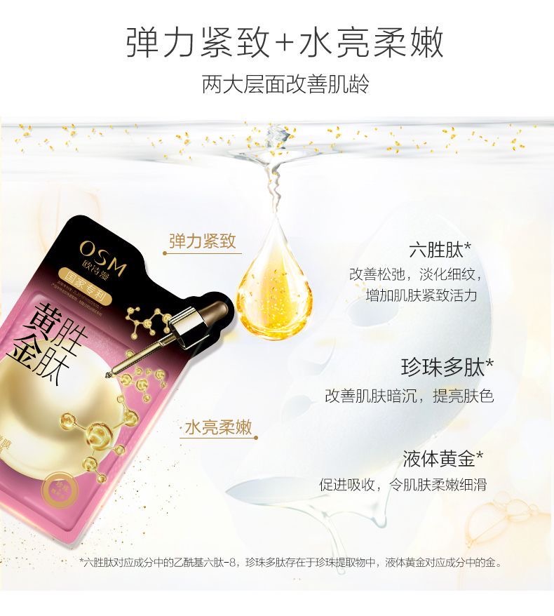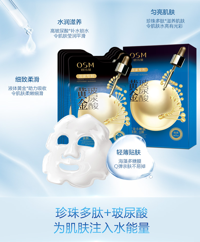 【100元3盒】欧诗漫黄金面膜【玻尿酸+胜肽+蜂王浆】补水保湿紧致弹润
