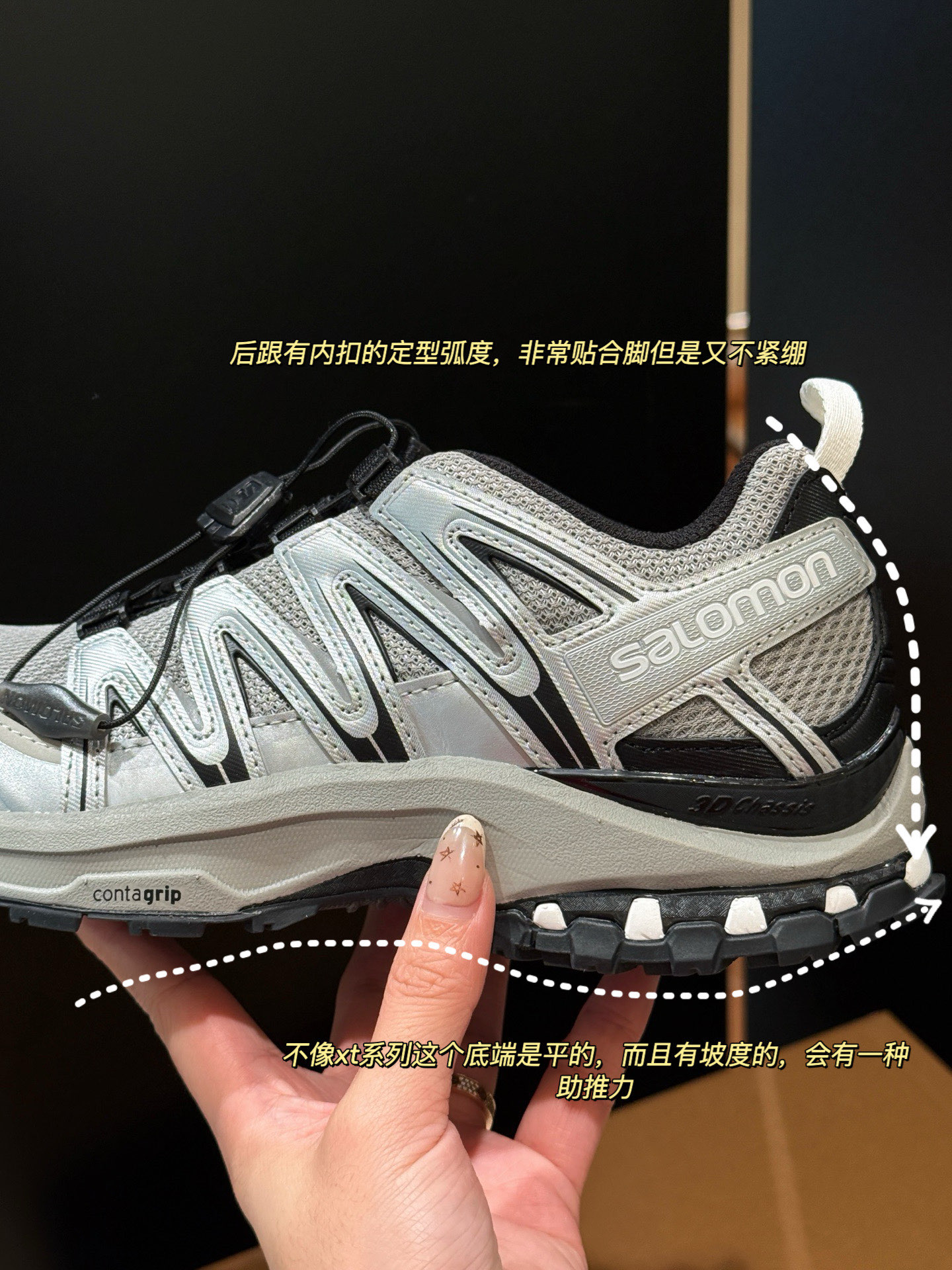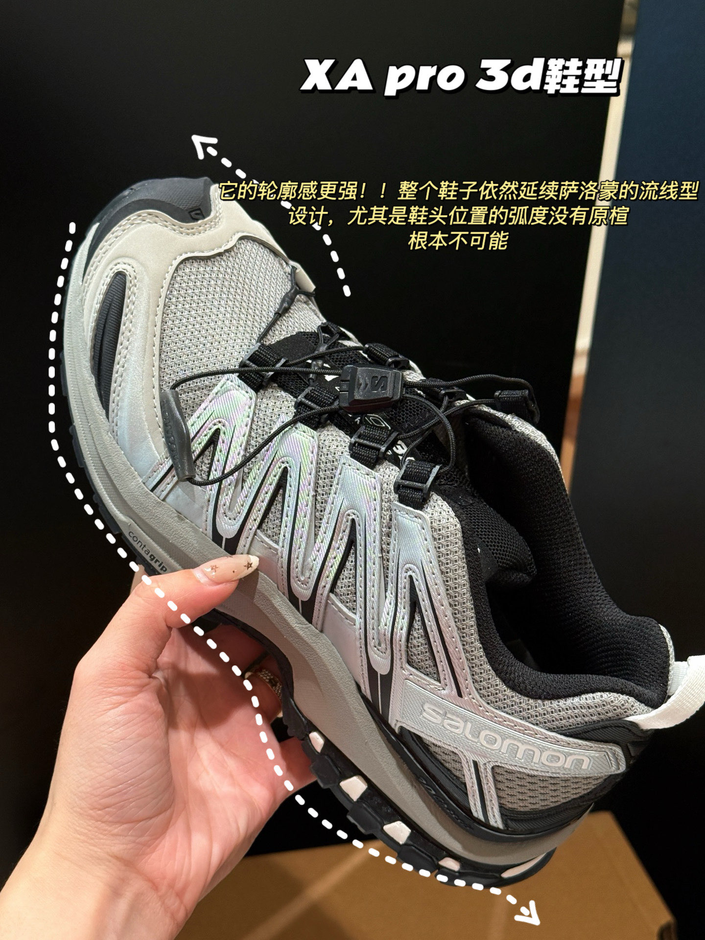 脚感更是无人能敌,这双鞋为什么能让全网疯狂心动就是因为它才是真正的六边形战士,巨巨巨好穿啊,Salomon经典设计,机能风拉满同时给你有史以来最强的包裹性!!!