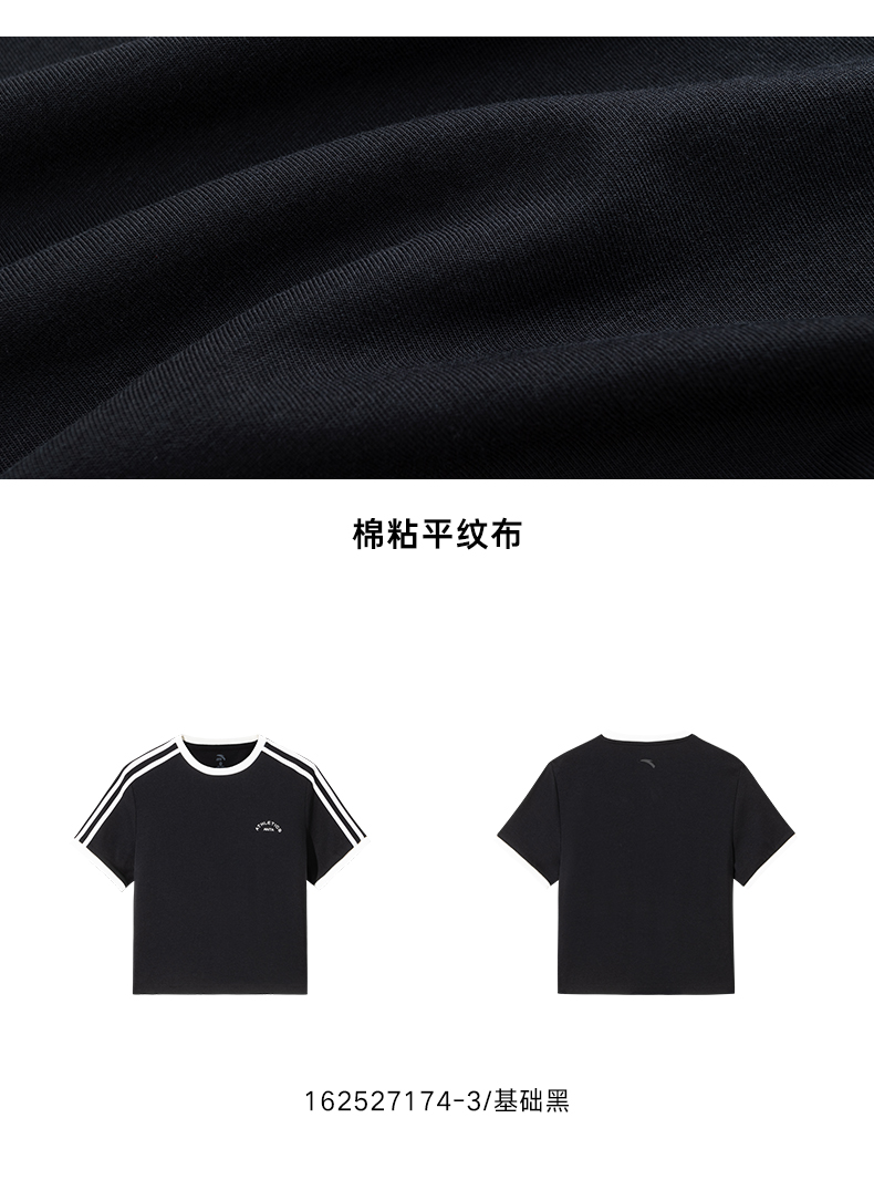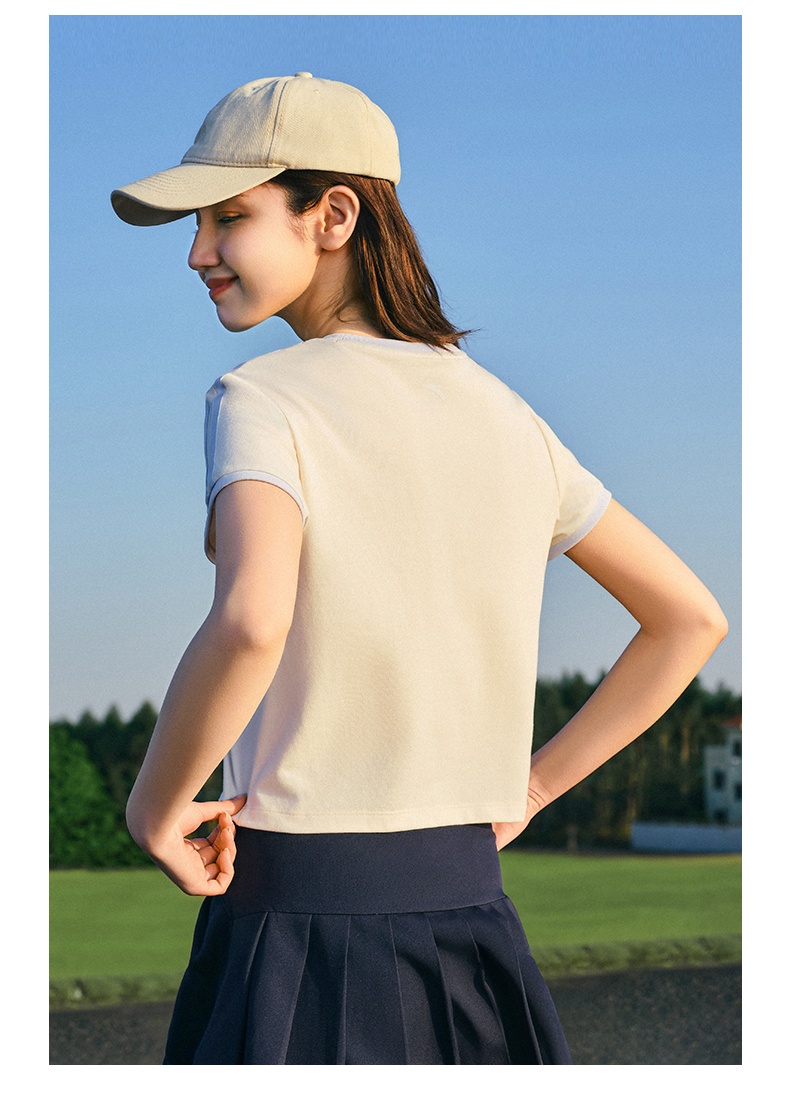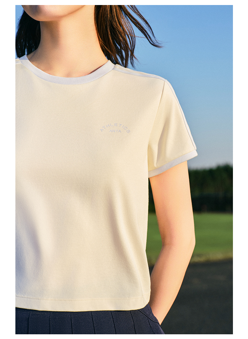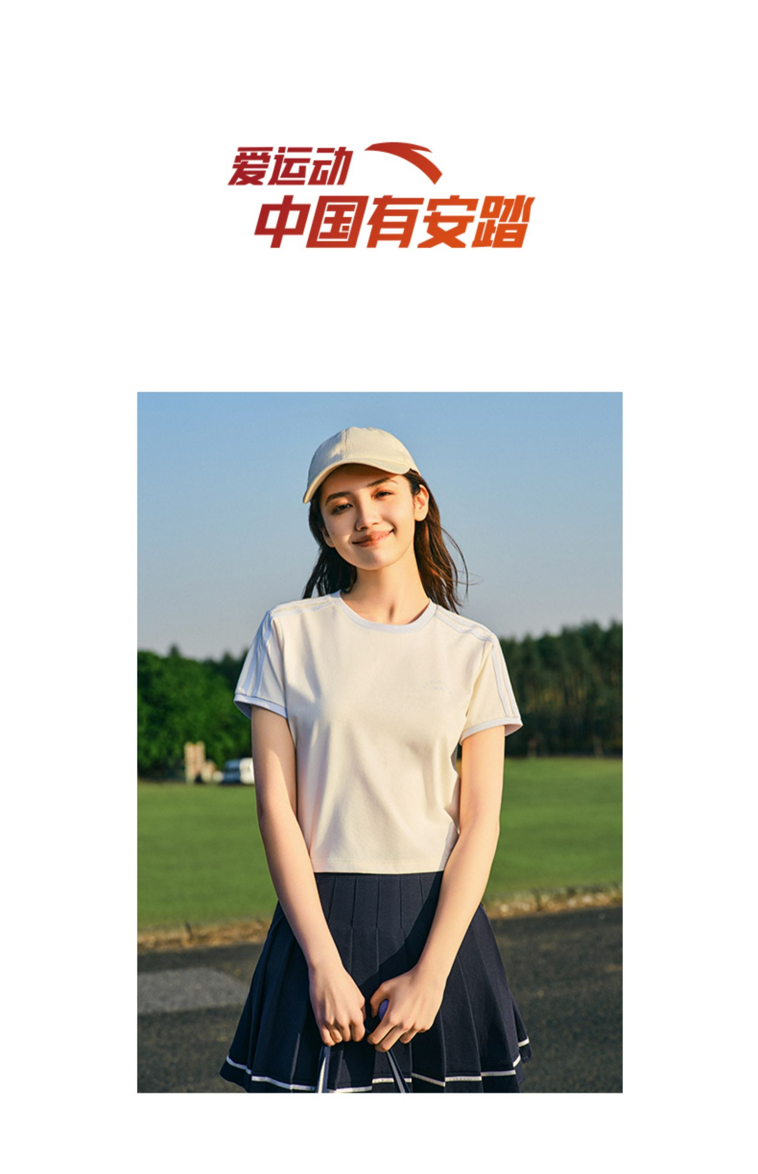 【M/L/XL/2XL断码】安踏冰丝T丨短款休闲正肩短袖女夏季学院风网球圆领t恤162527174