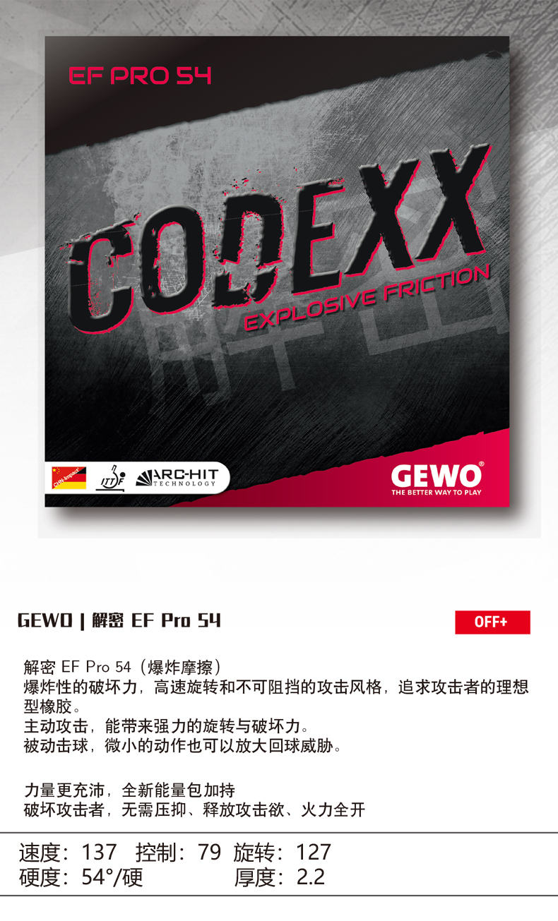 商品名称:捷沃Gewo 解密54 专业粘性反胶套胶 德系高弹粘套