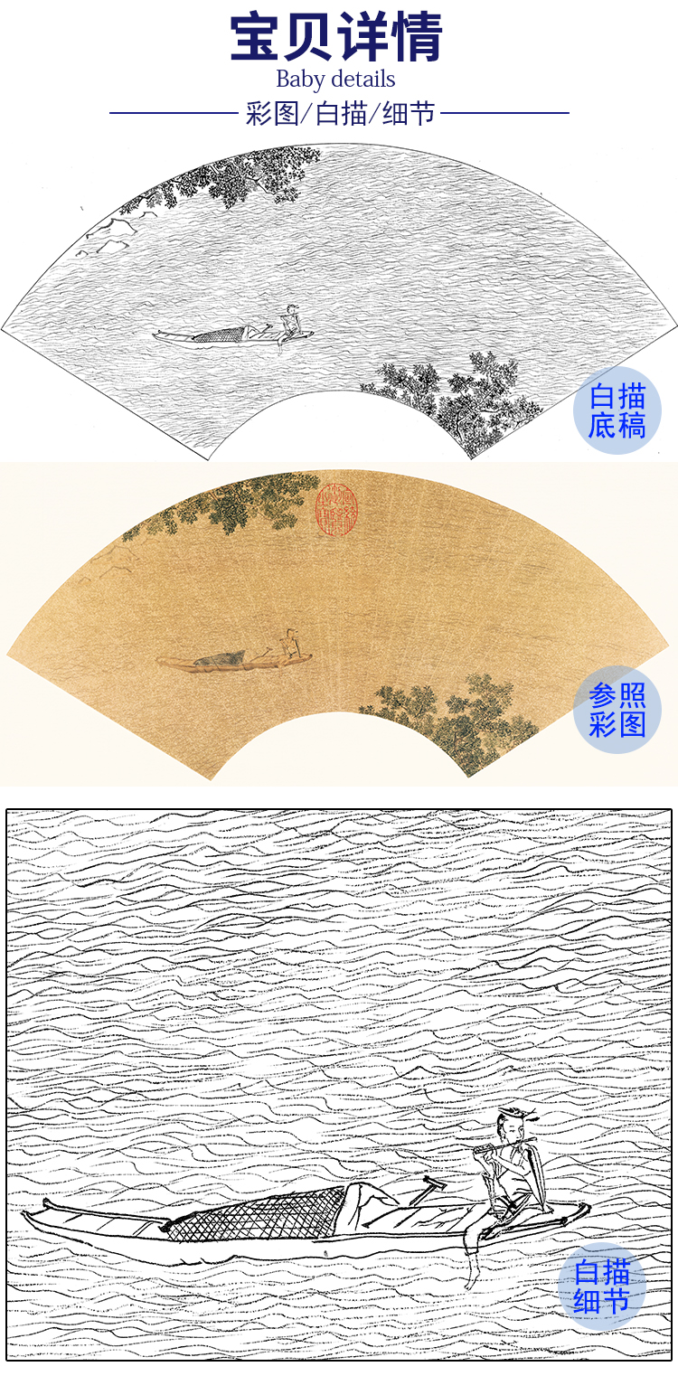 工笔画白描底稿 扇面小品 明 仇英 山水人物图 SR11