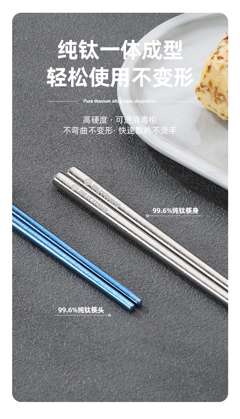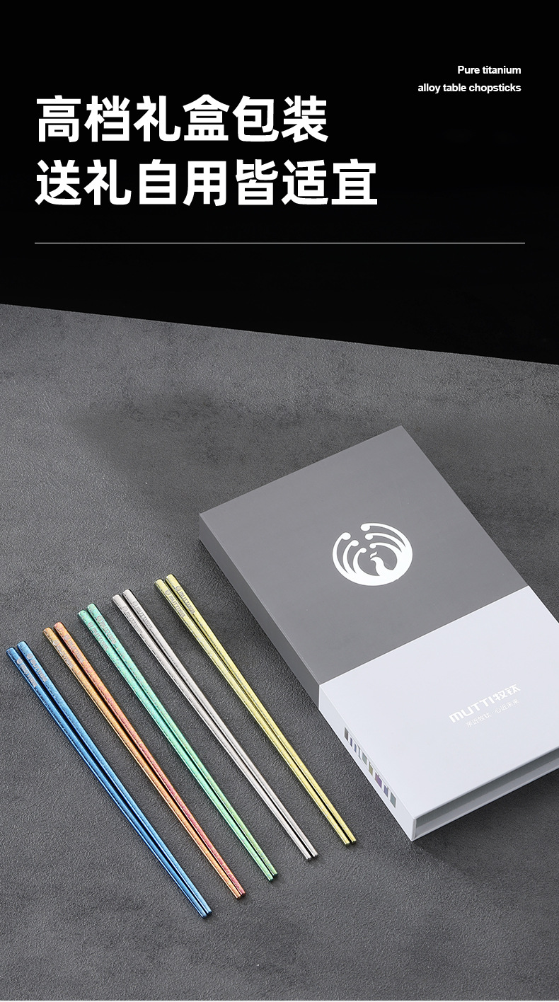 【纯钛筷子】牧钛Mutti纯钛筷子 99.6%纯钛 防滑防烫 健康耐蚀 易清洗不藏灰 礼盒套装
