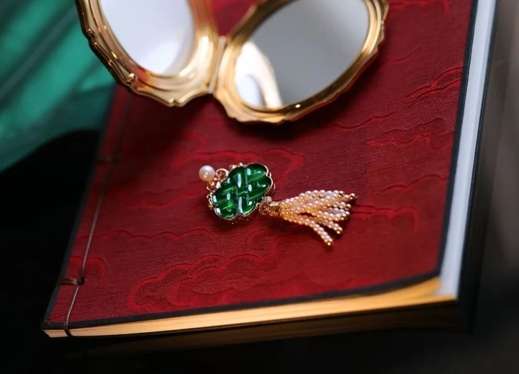 这个中国结翡翠延伸的设计,从“余庆”灯笼胸针开始,