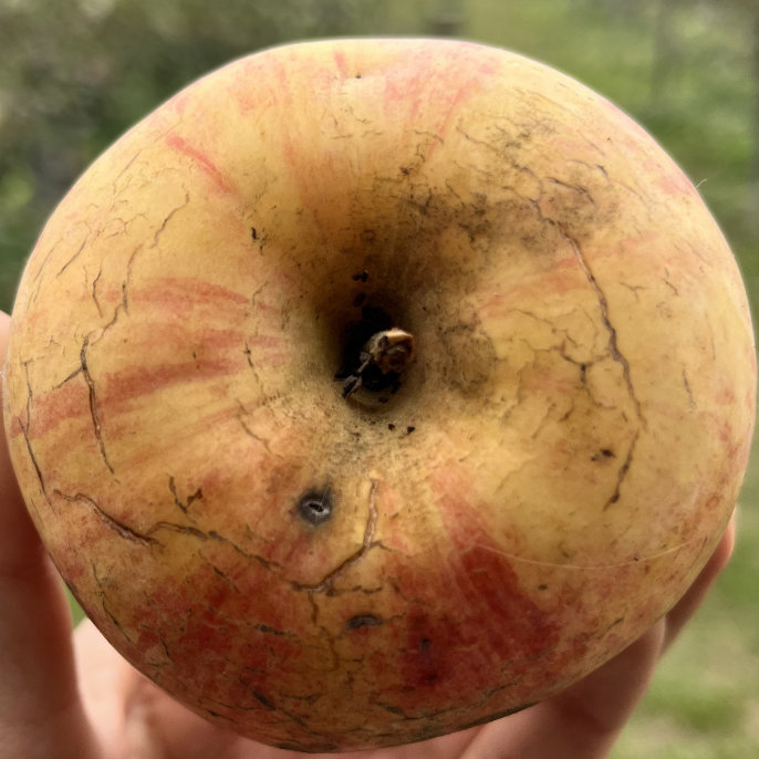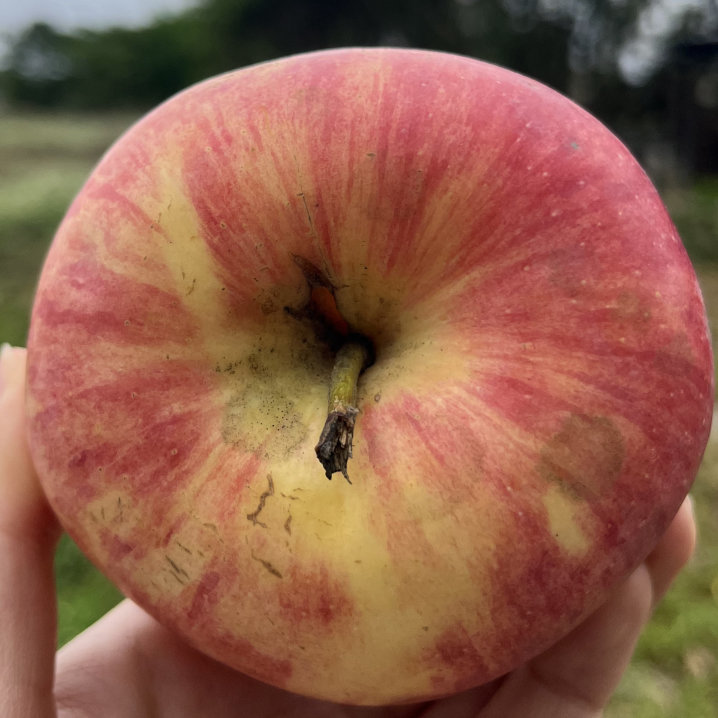 张韶明大哥的果园里,除了梨树,还栽种了一些苹果树,品种是新世纪(新世界)苹果,根据资料,这种苹果是由富士苹果杂交而来,自1990年代引入中国后,并未进行大规模商业化推广。所以比较小众,但是遗传了富士苹果的优良形状,果肉细密、汁液多,口感酸甜适中。
