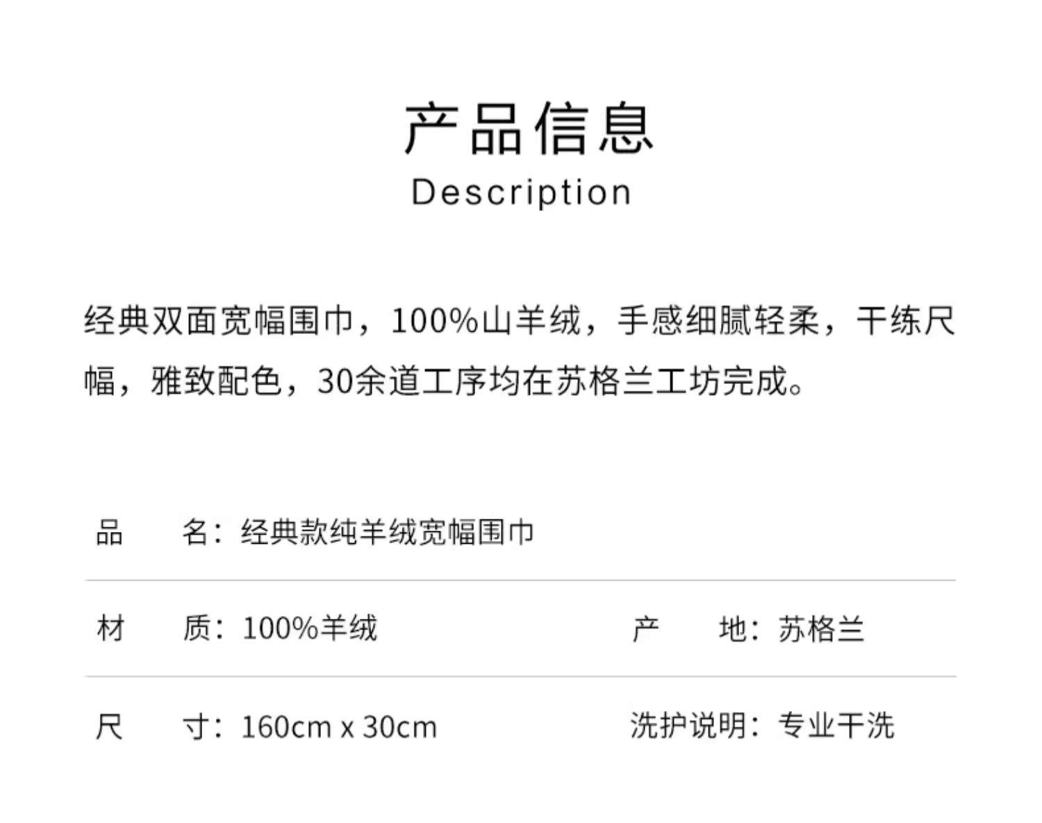 Johnstons of Elgin纯羊绒双面宽幅围巾 纯色