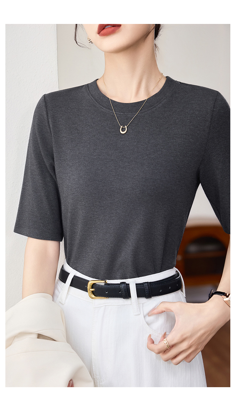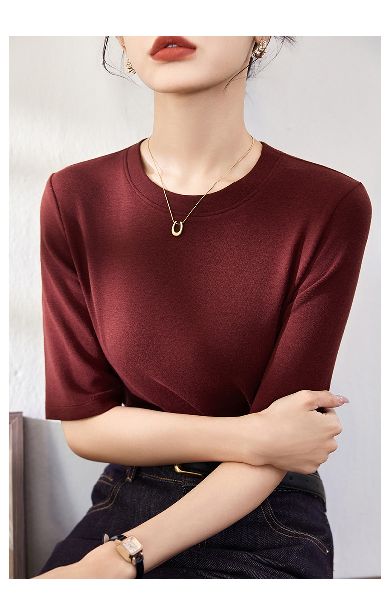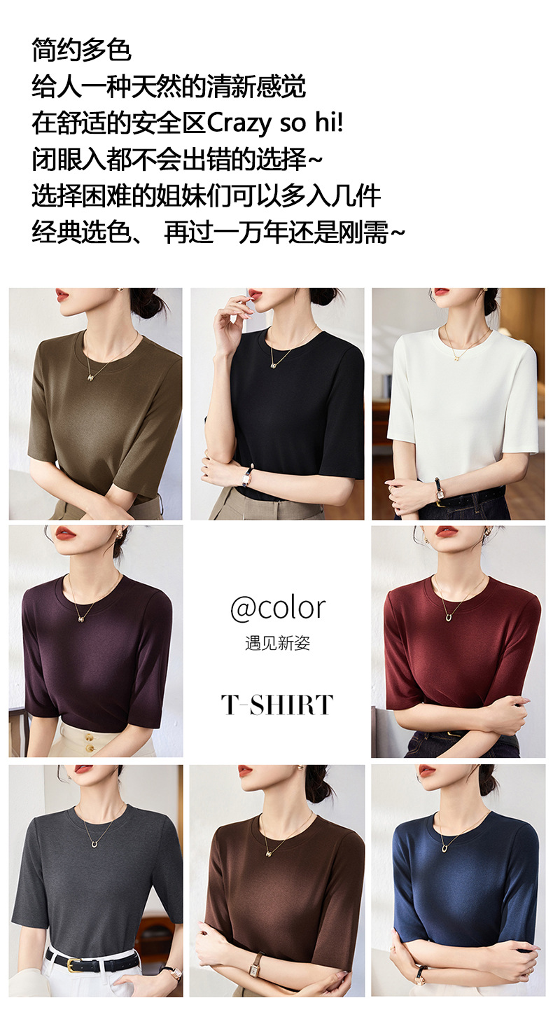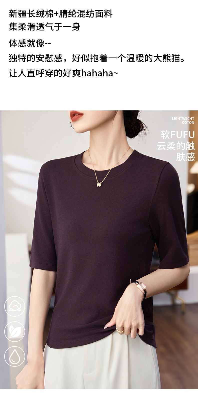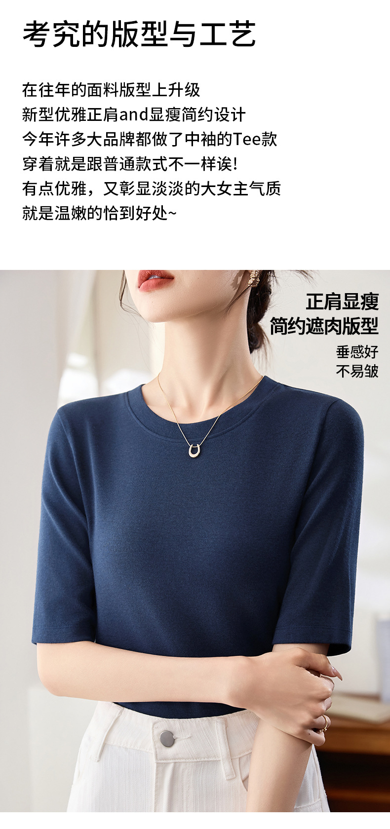 「自j」全新升级【铂金会员109/天猫139/差价30】(35910)洛诗琳气质圆领中袖T恤2025秋季新款正肩百搭五分袖打底上衣