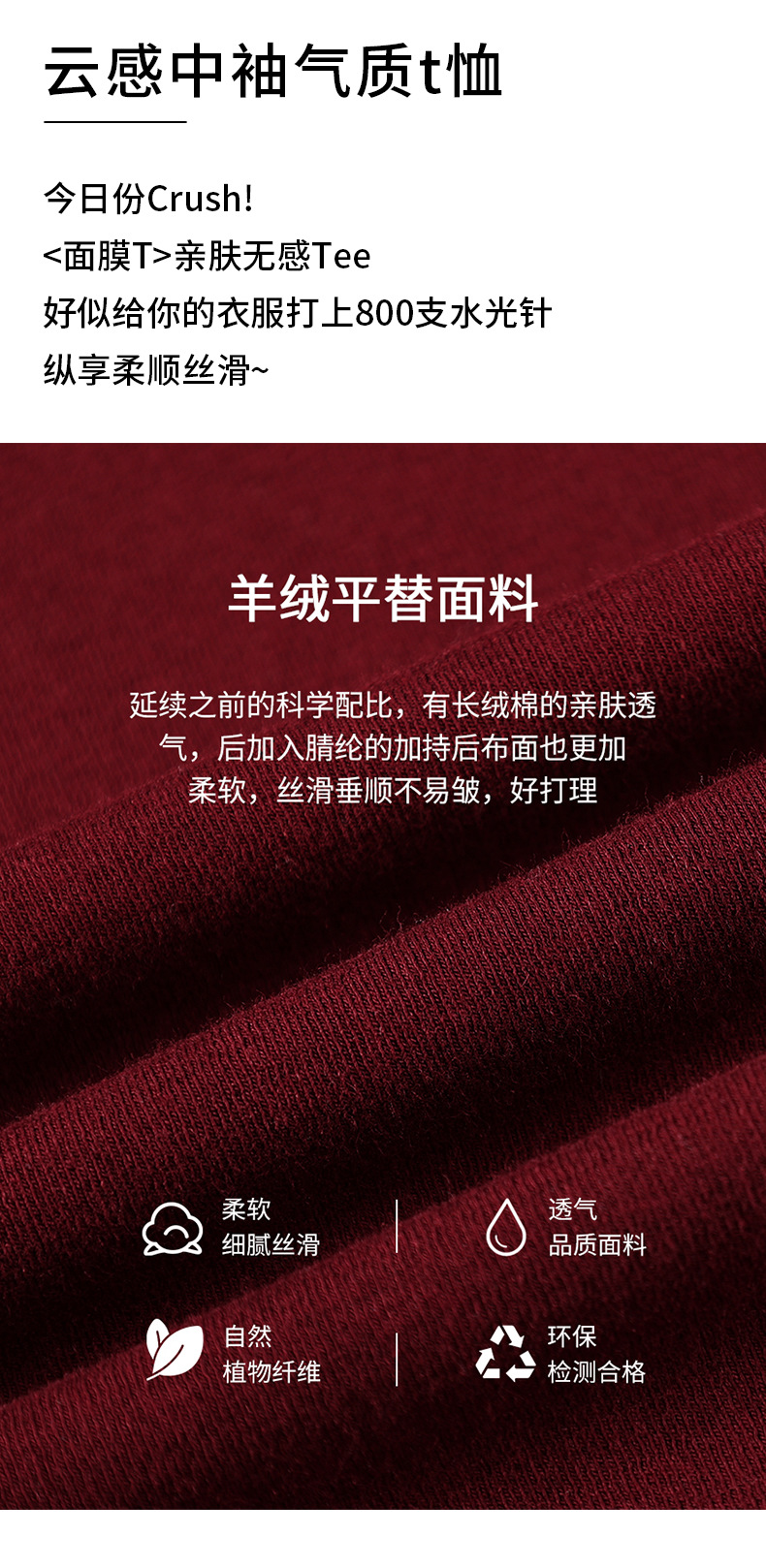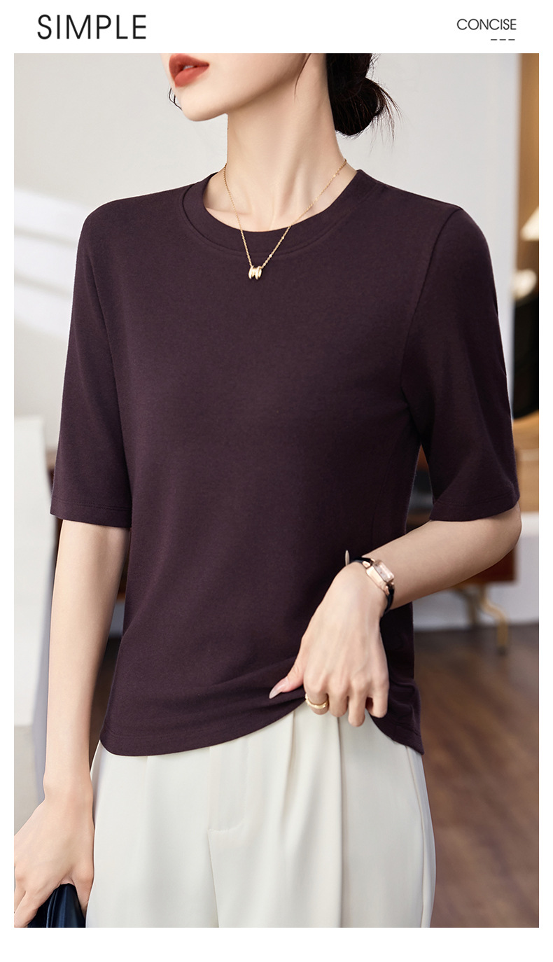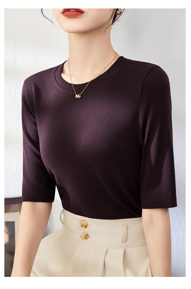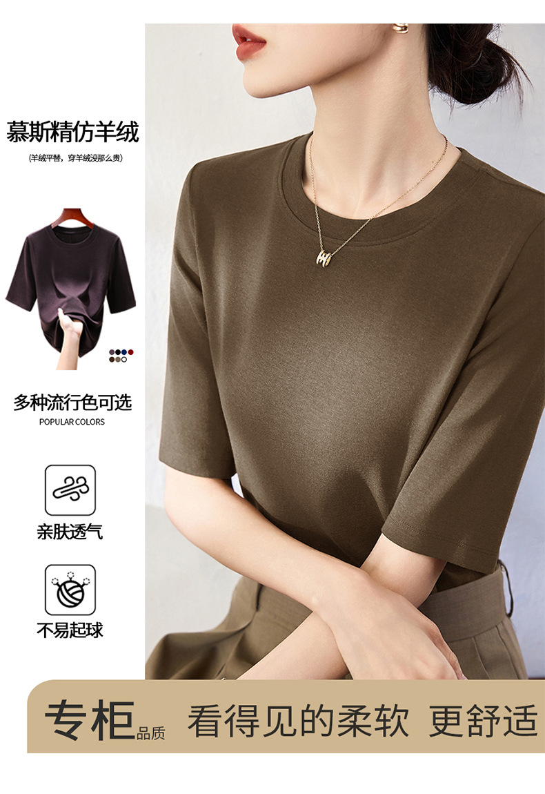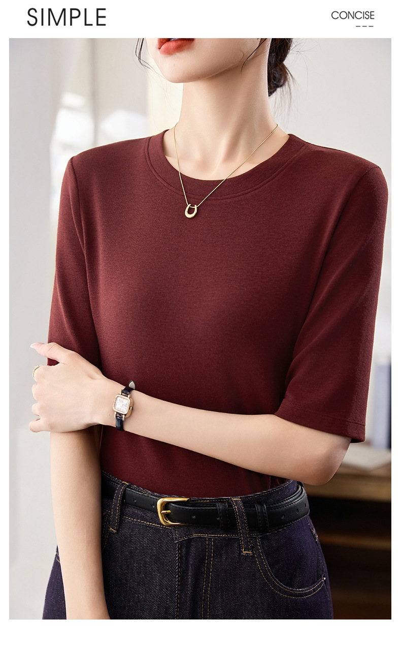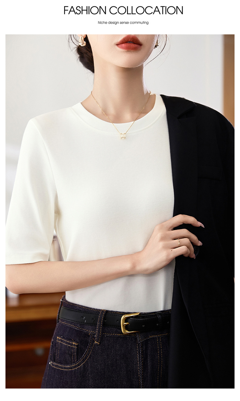 「自j」全新升级【铂金会员109/天猫139/差价30】(35910)洛诗琳气质圆领中袖T恤2025秋季新款正肩百搭五分袖打底上衣