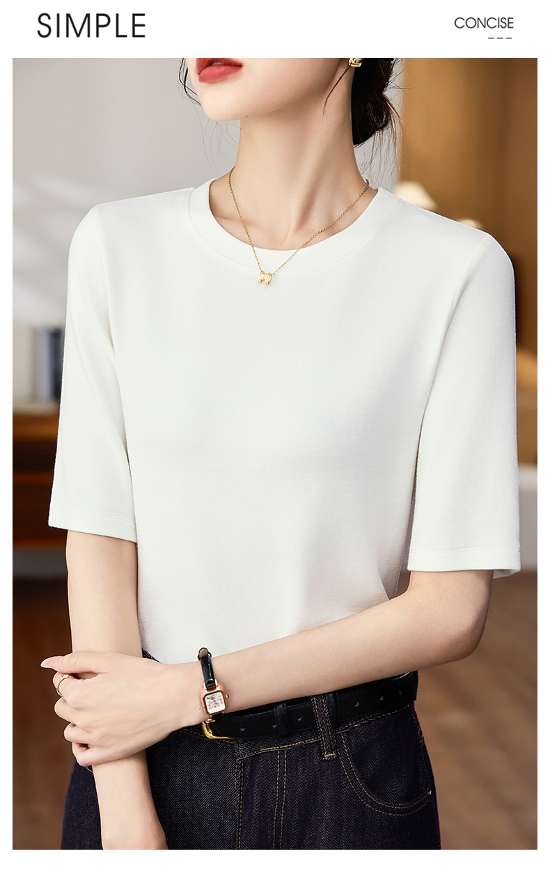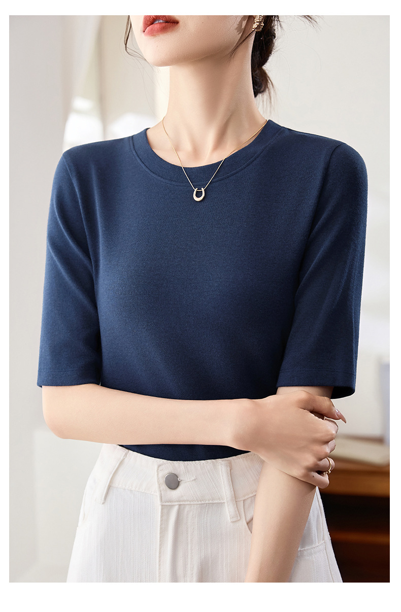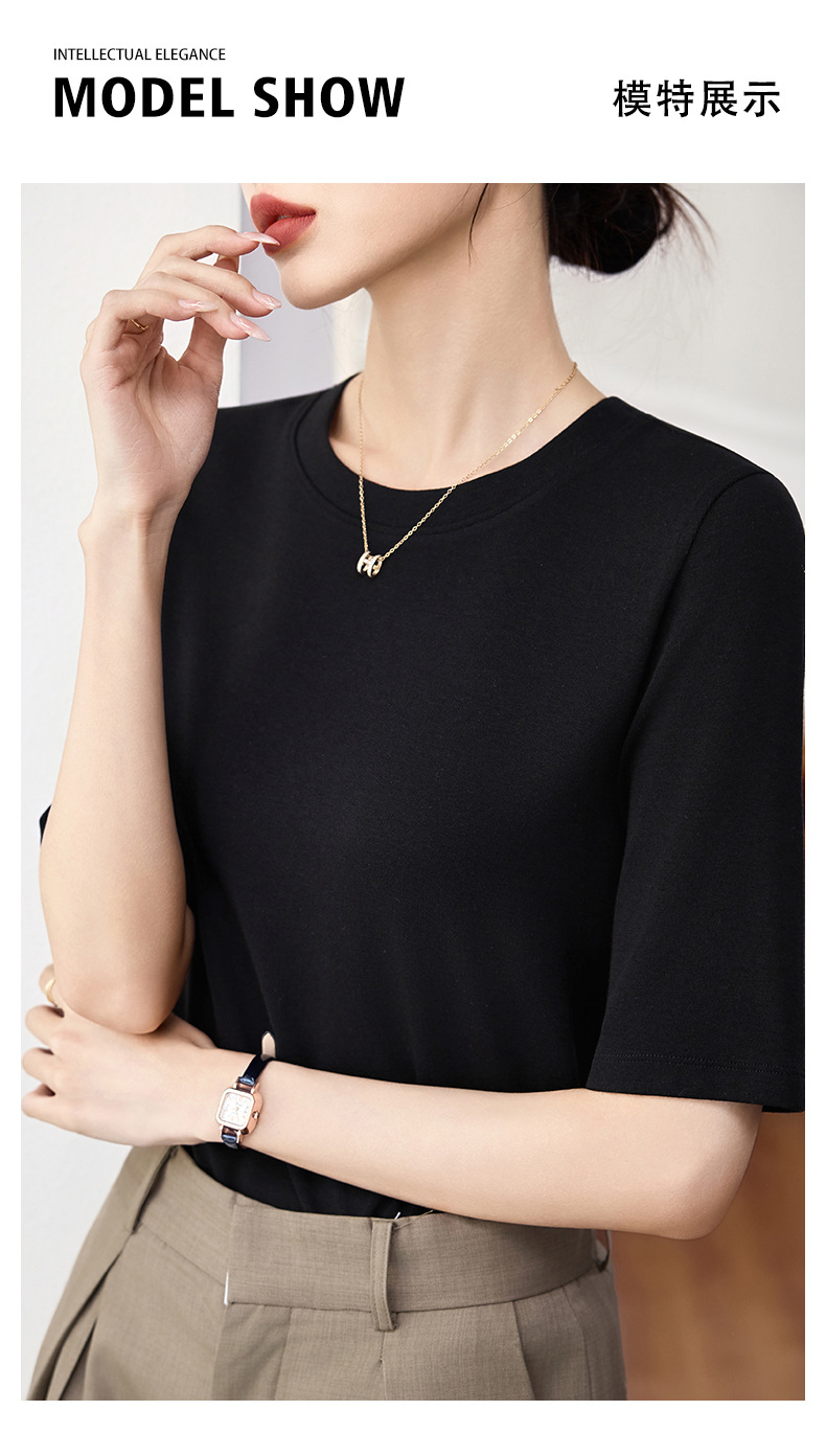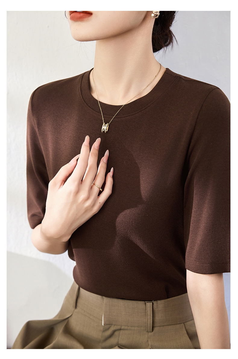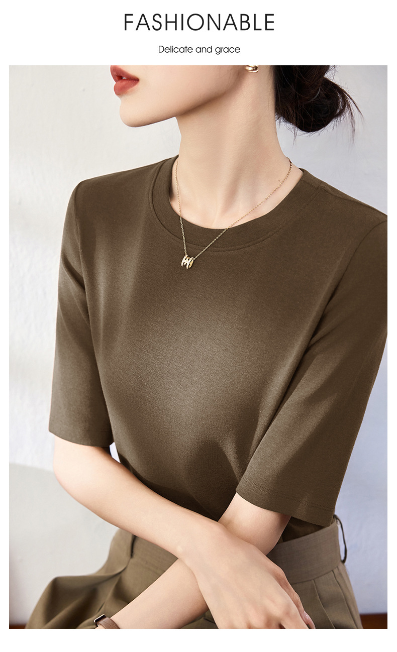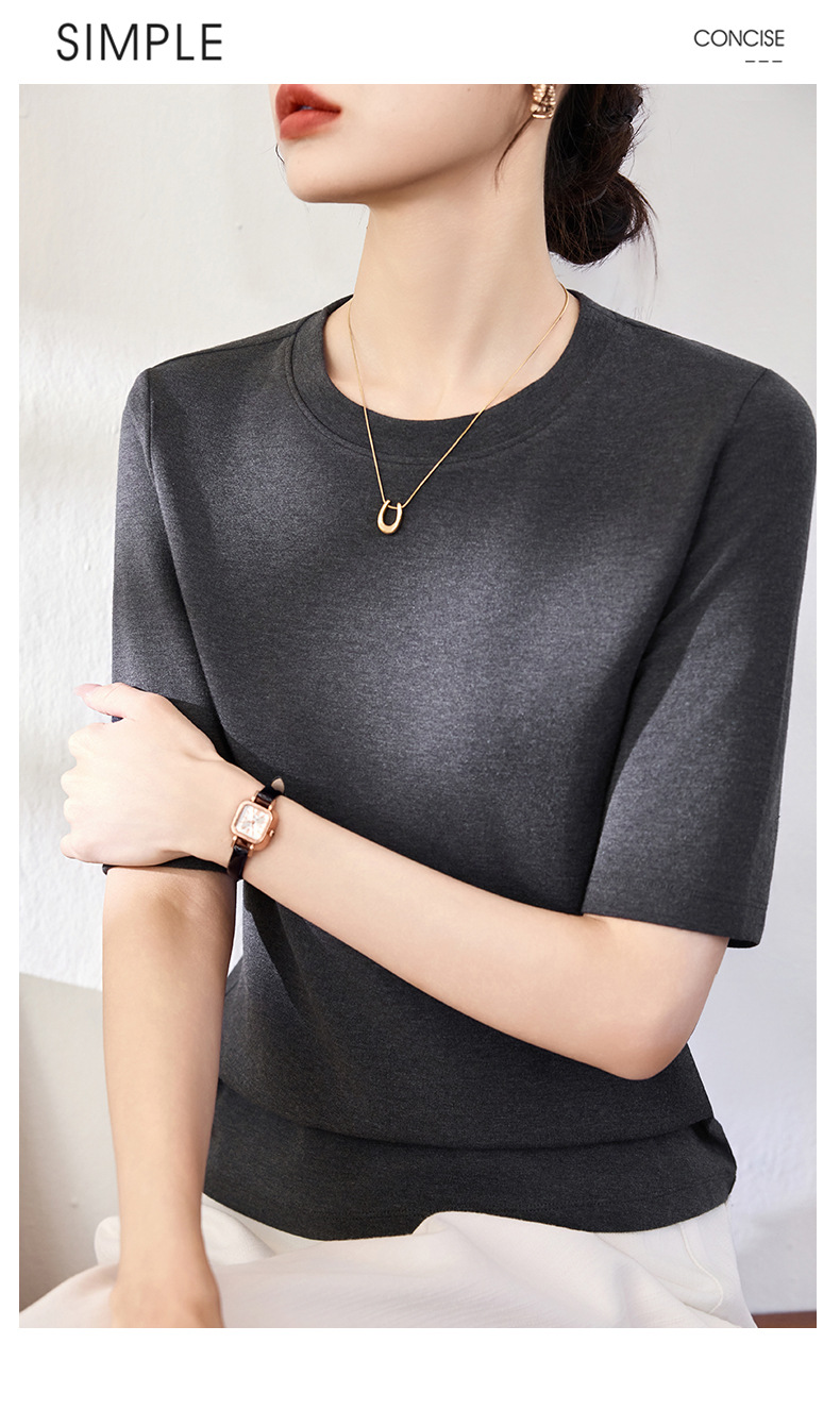 「自j」全新升级【铂金会员109/天猫139/差价30】(35910)洛诗琳气质圆领中袖T恤2025秋季新款正肩百搭五分袖打底上衣