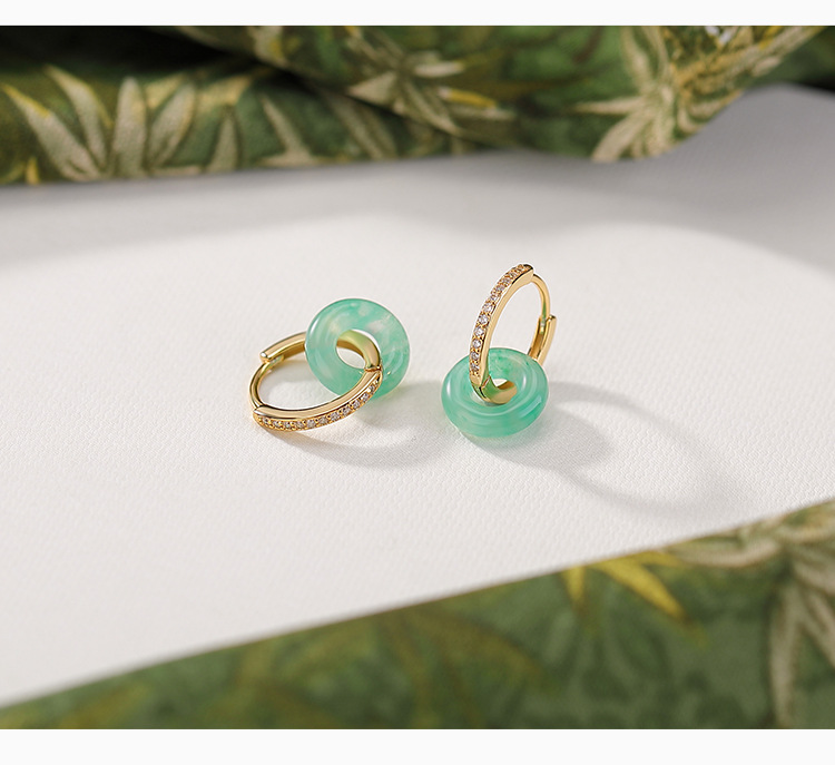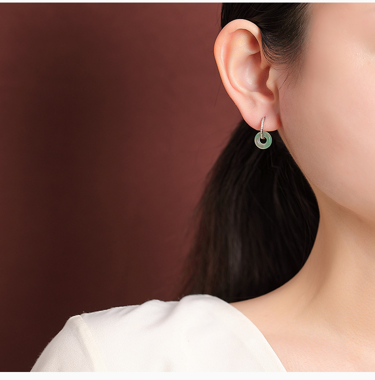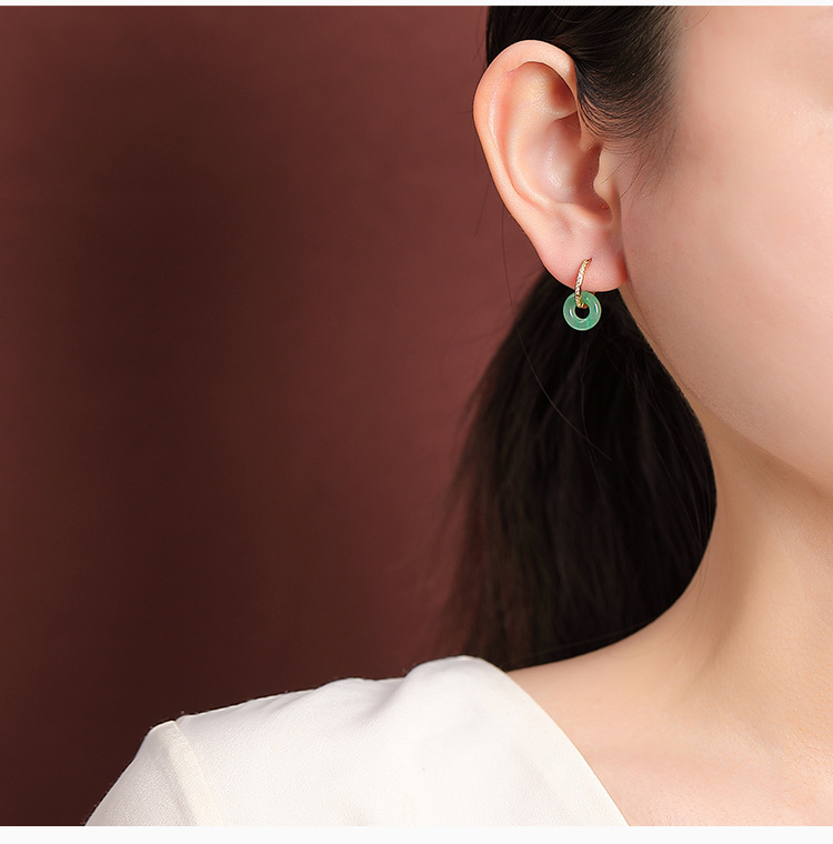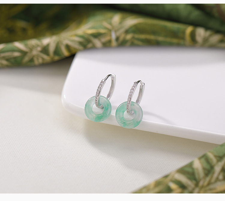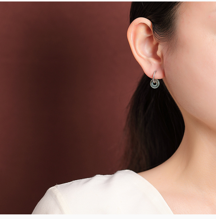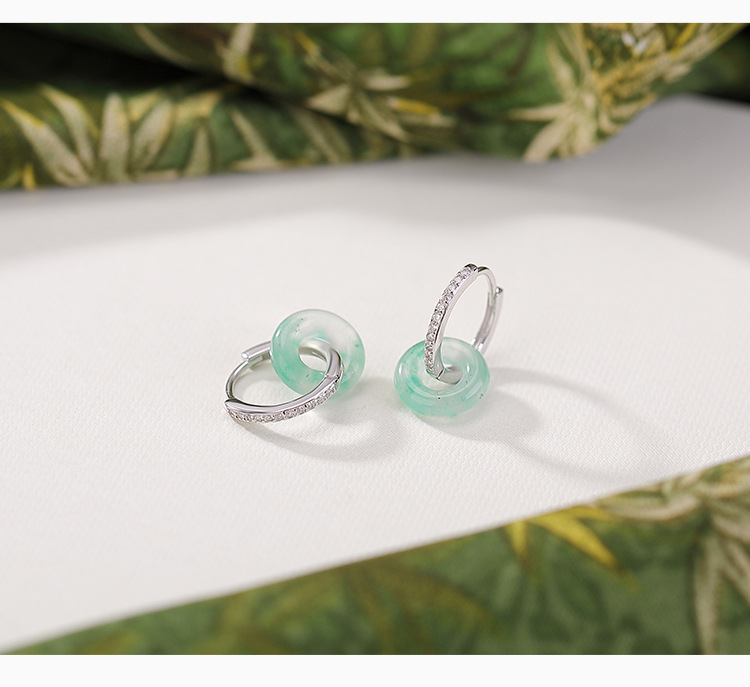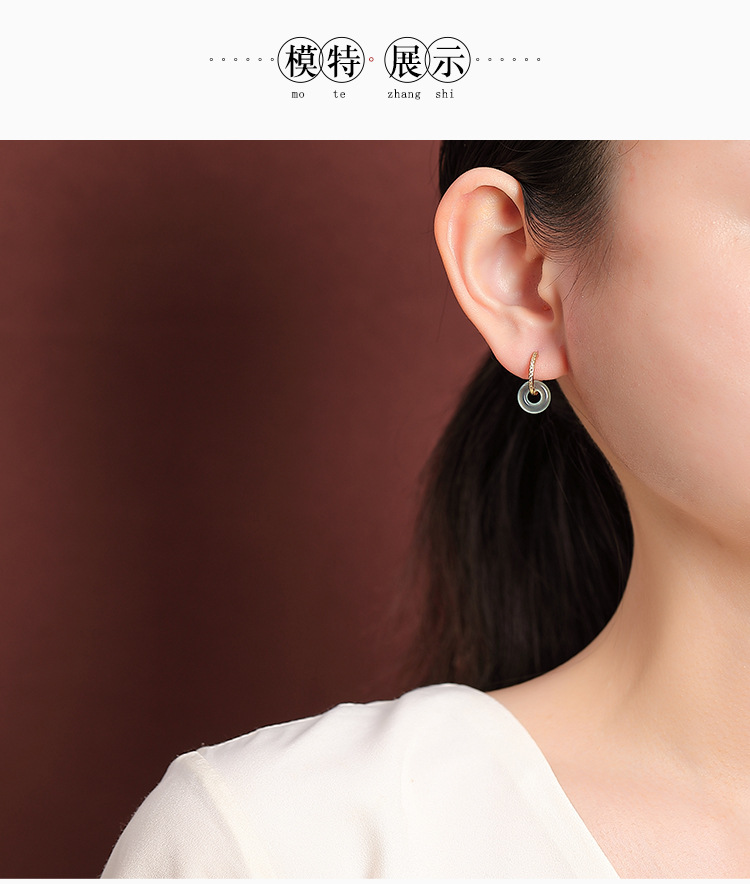蓝水翡翠S925非洲翠纯银镀金,平安扣圆圈银耳夹简约耳饰CW-869