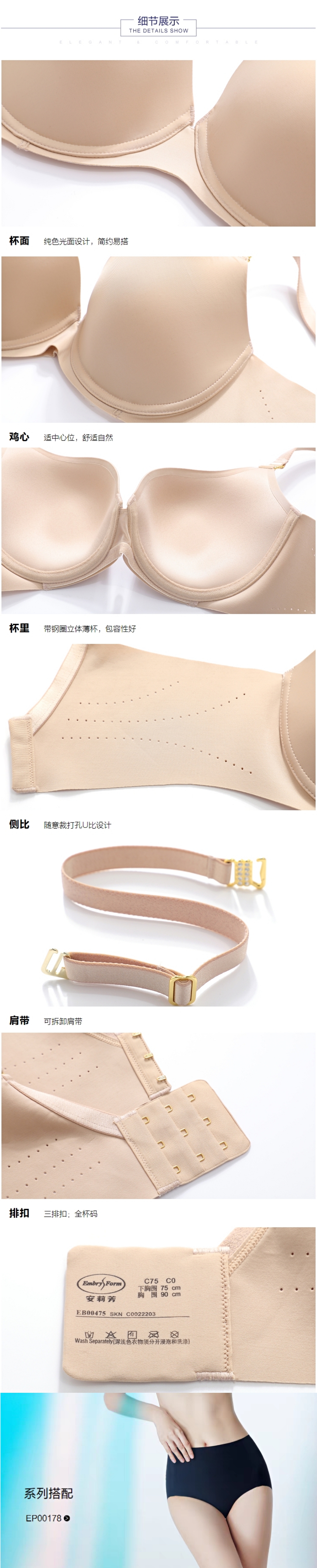 安莉芳薄款大胸光面文胸女士无痕U比防下垂大码内衣EB00475