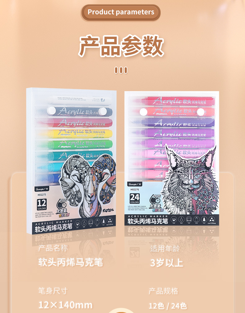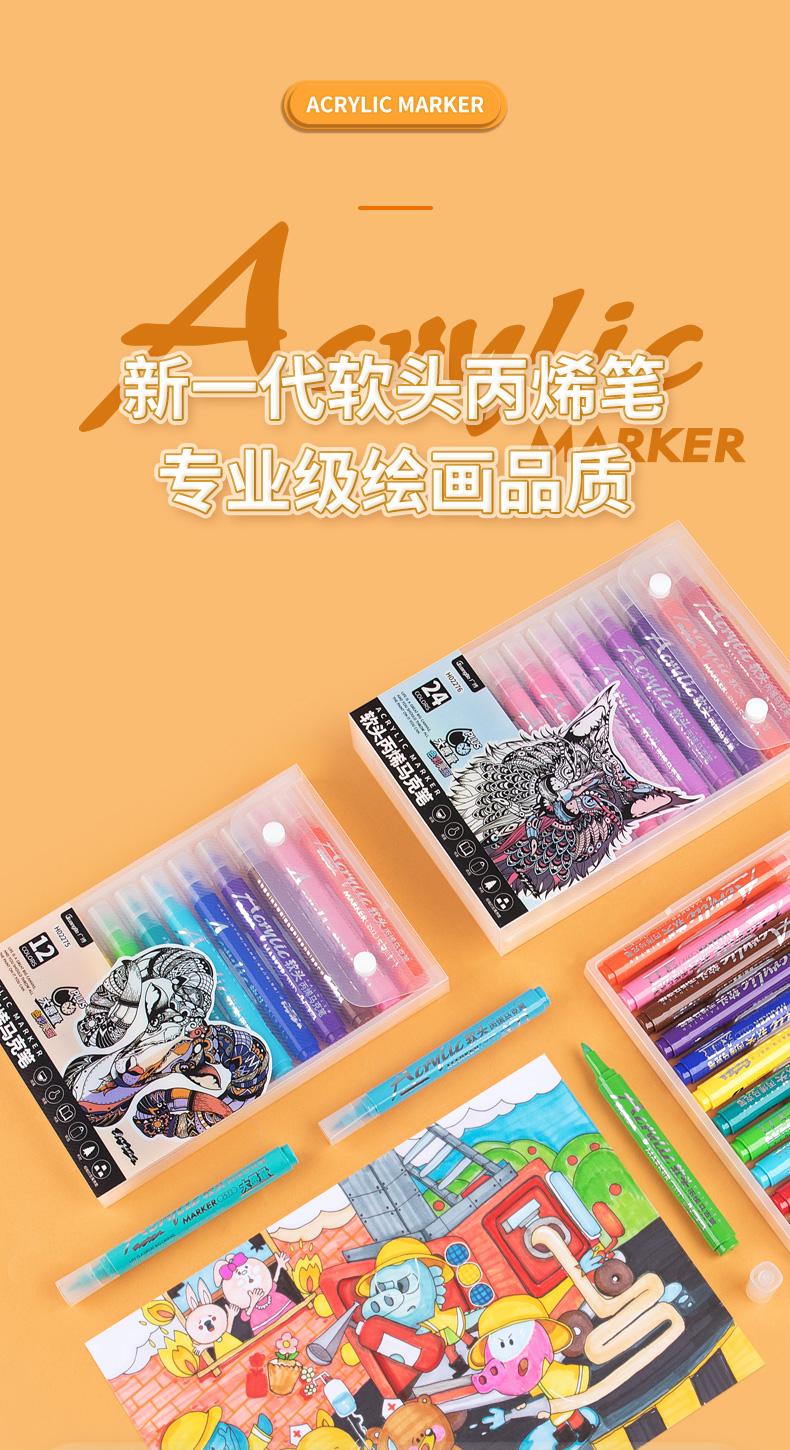 【广博】软头丙烯马克笔不透色笔芯60色小学生儿童幼儿园无毒可水洗水彩笔美术专用彩色24速干防水炳漆颜料画笔