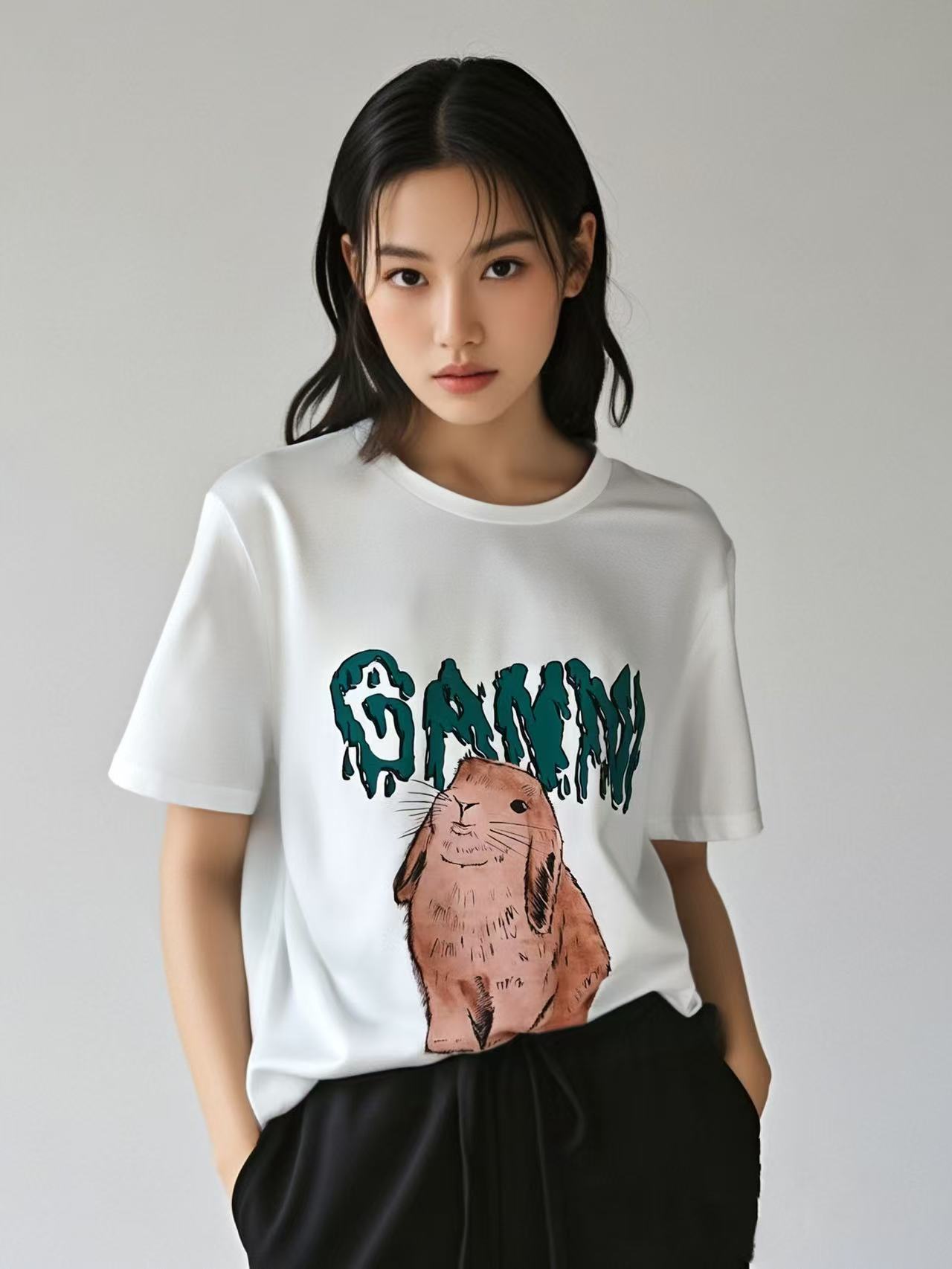七夕福利-NO退~潮牌小兔子涂鸦字母短袖T恤M1-1-喜出