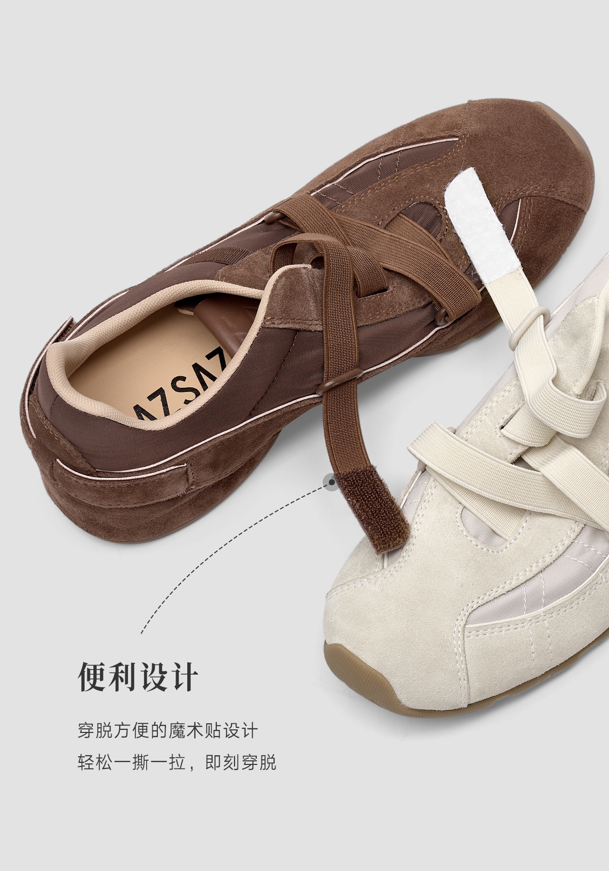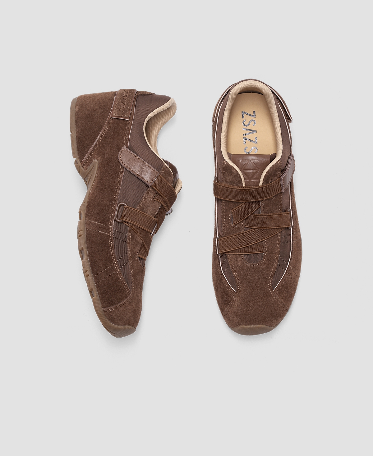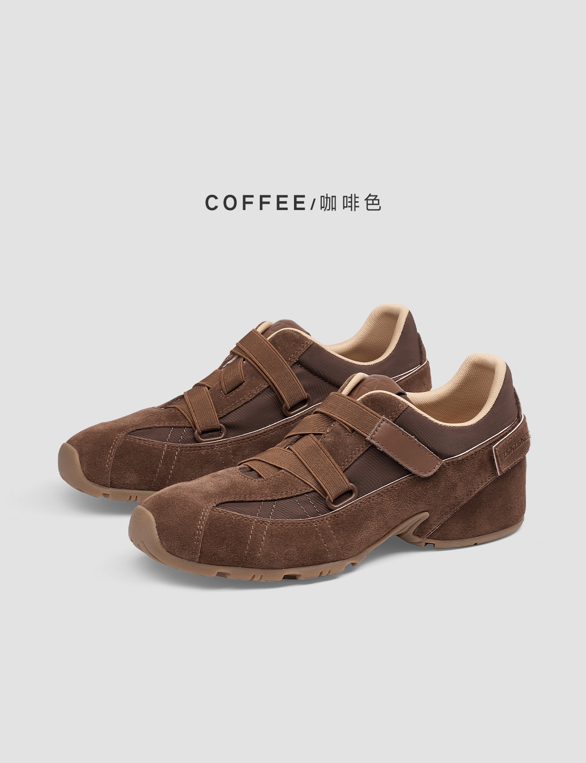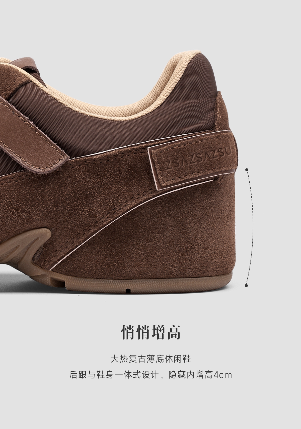 [松果]ZSAZSAZSU莎莎苏 2025春新款棕色复古运动阿甘鞋内增高休闲芭蕾德训鞋