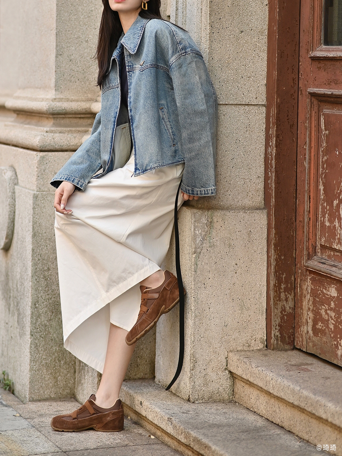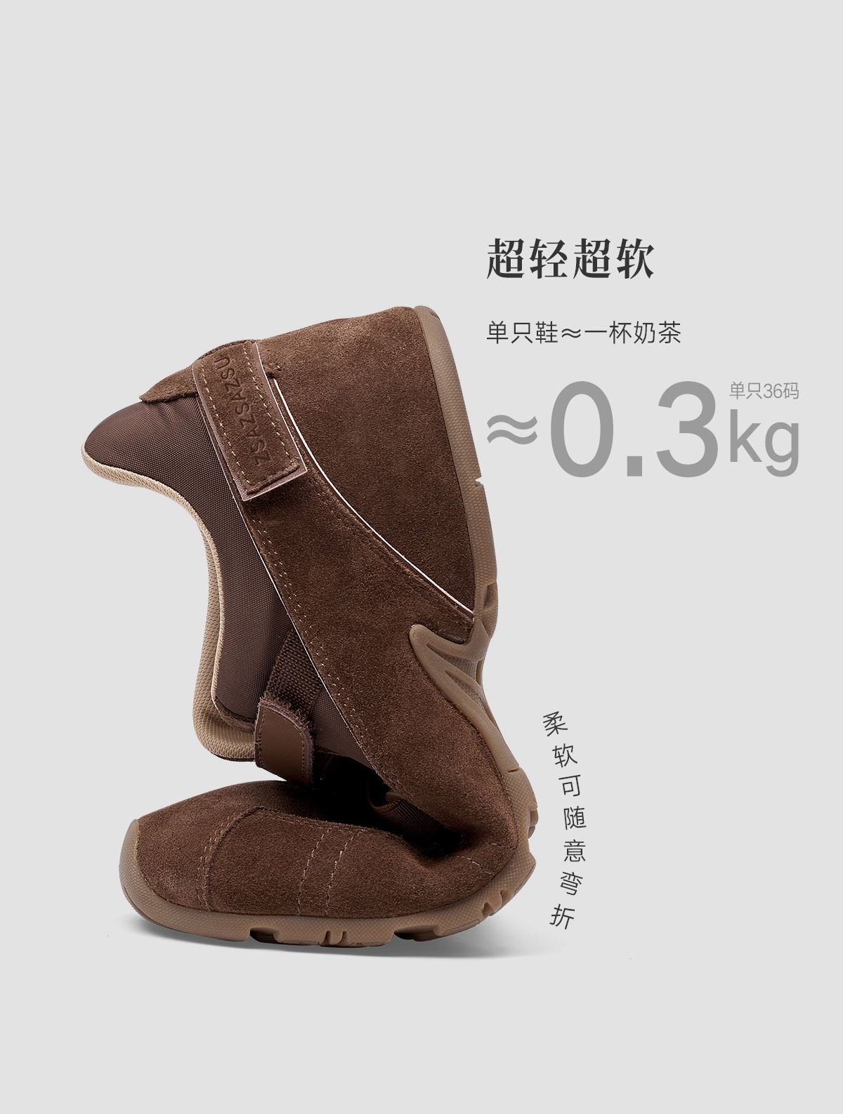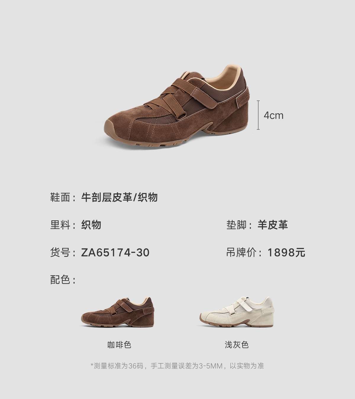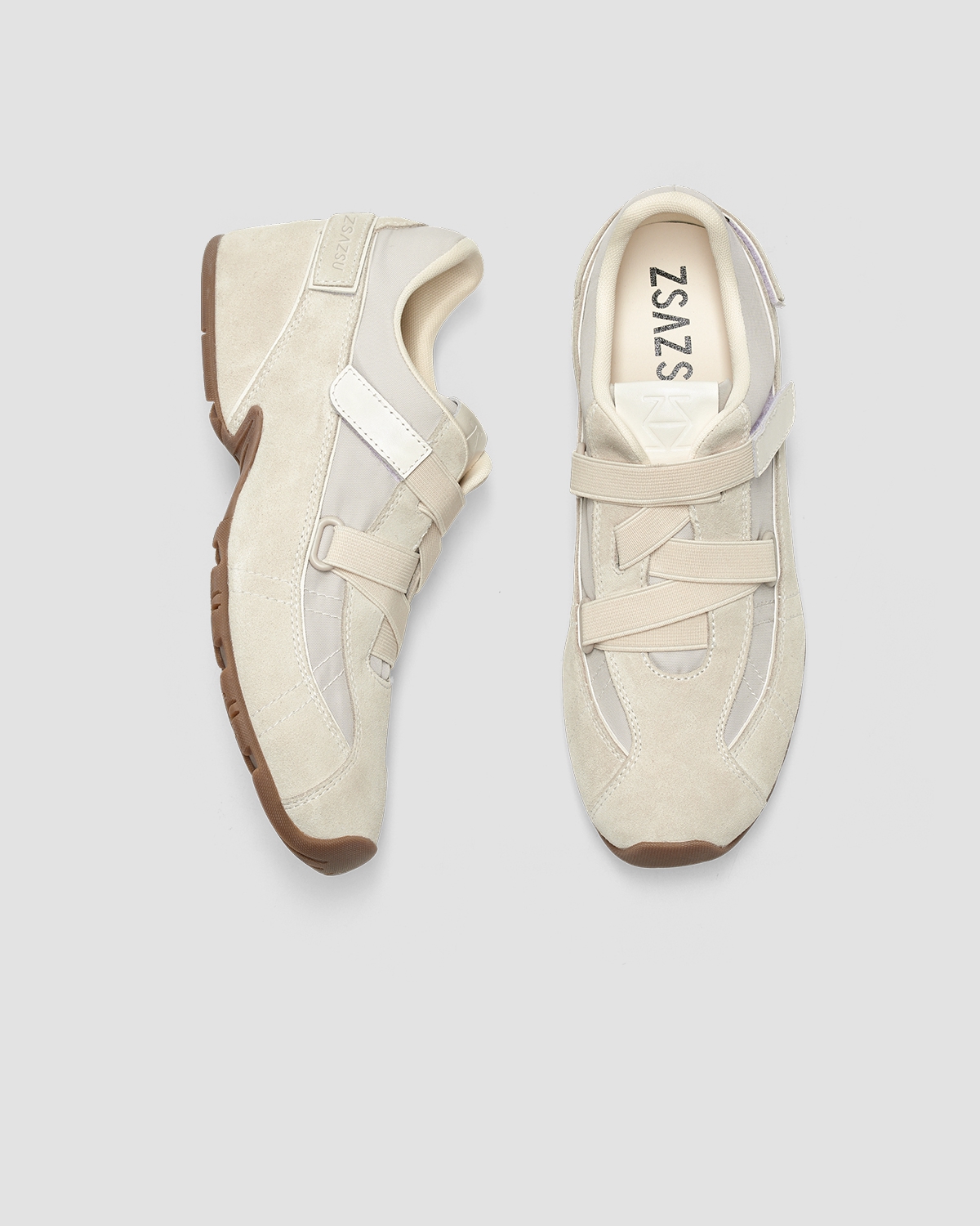 [松果]ZSAZSAZSU莎莎苏 2025春新款棕色复古运动阿甘鞋内增高休闲芭蕾德训鞋