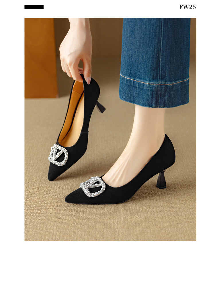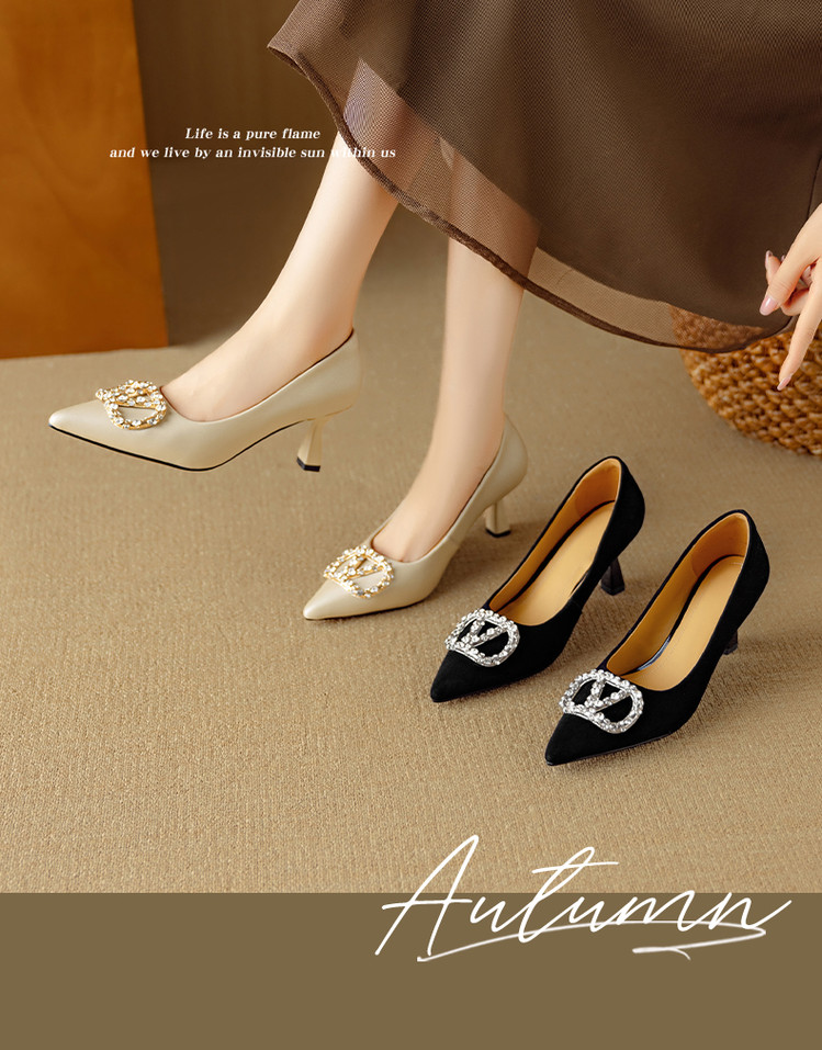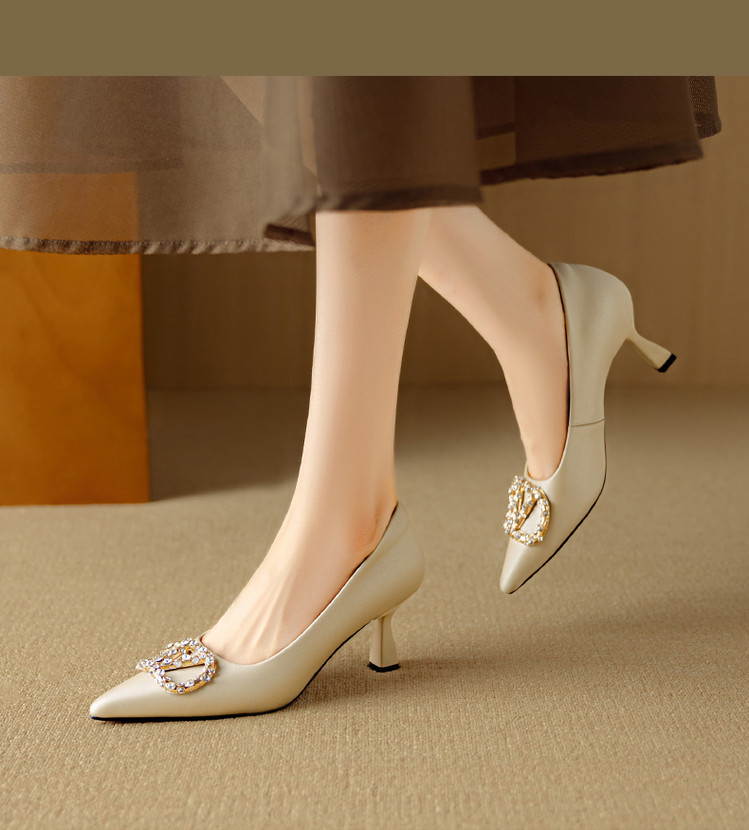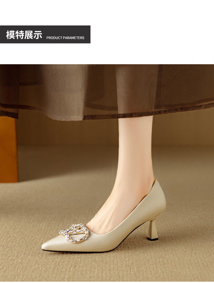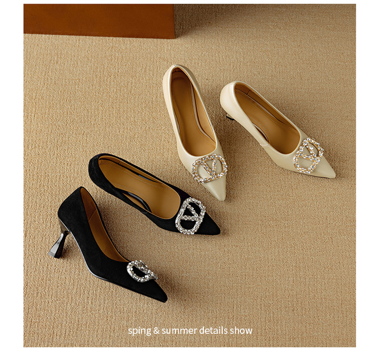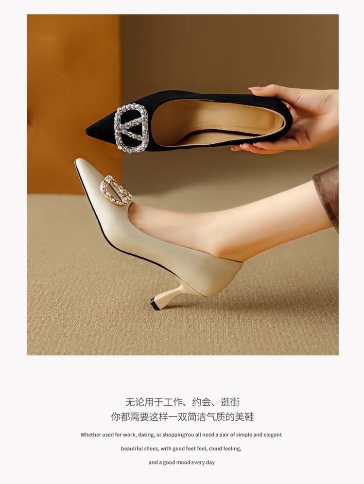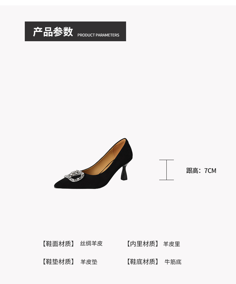 【预售5天】经典钻扣丝绸羊皮单鞋新款真皮优雅尖头高跟鞋女中跟DB&M6502