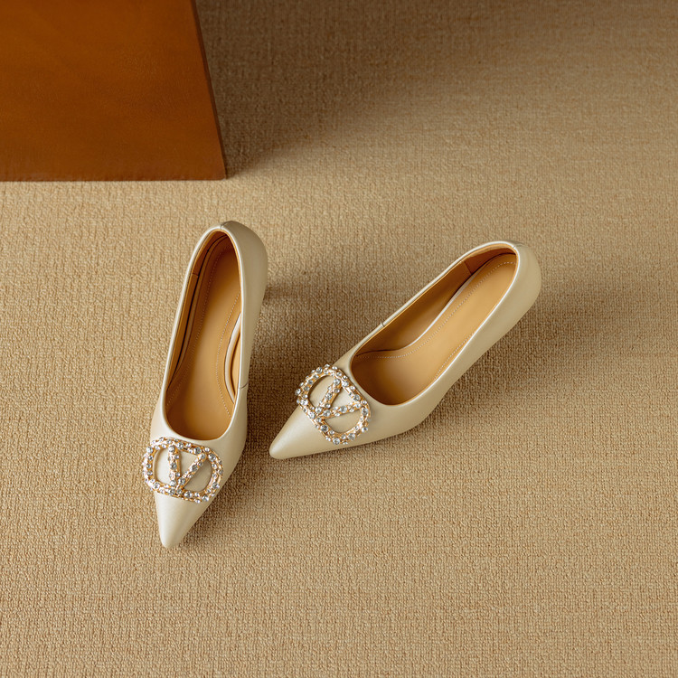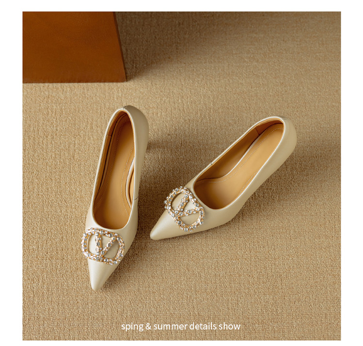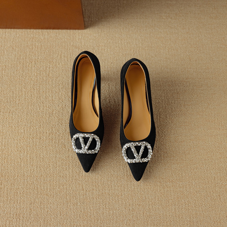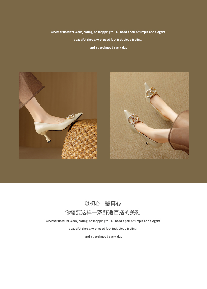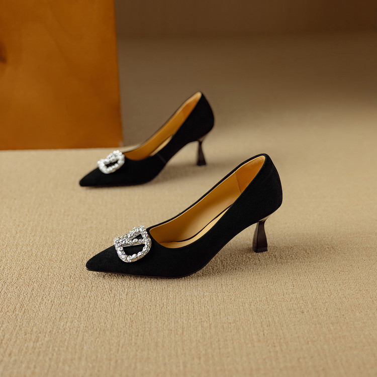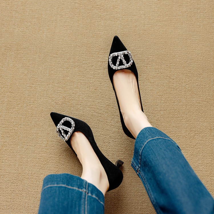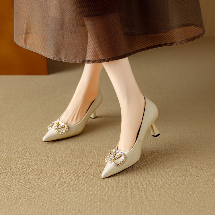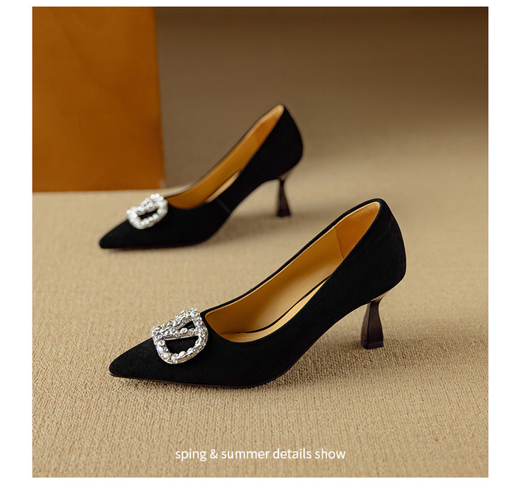 【预售5天】经典钻扣丝绸羊皮单鞋新款真皮优雅尖头高跟鞋女中跟DB&M6502