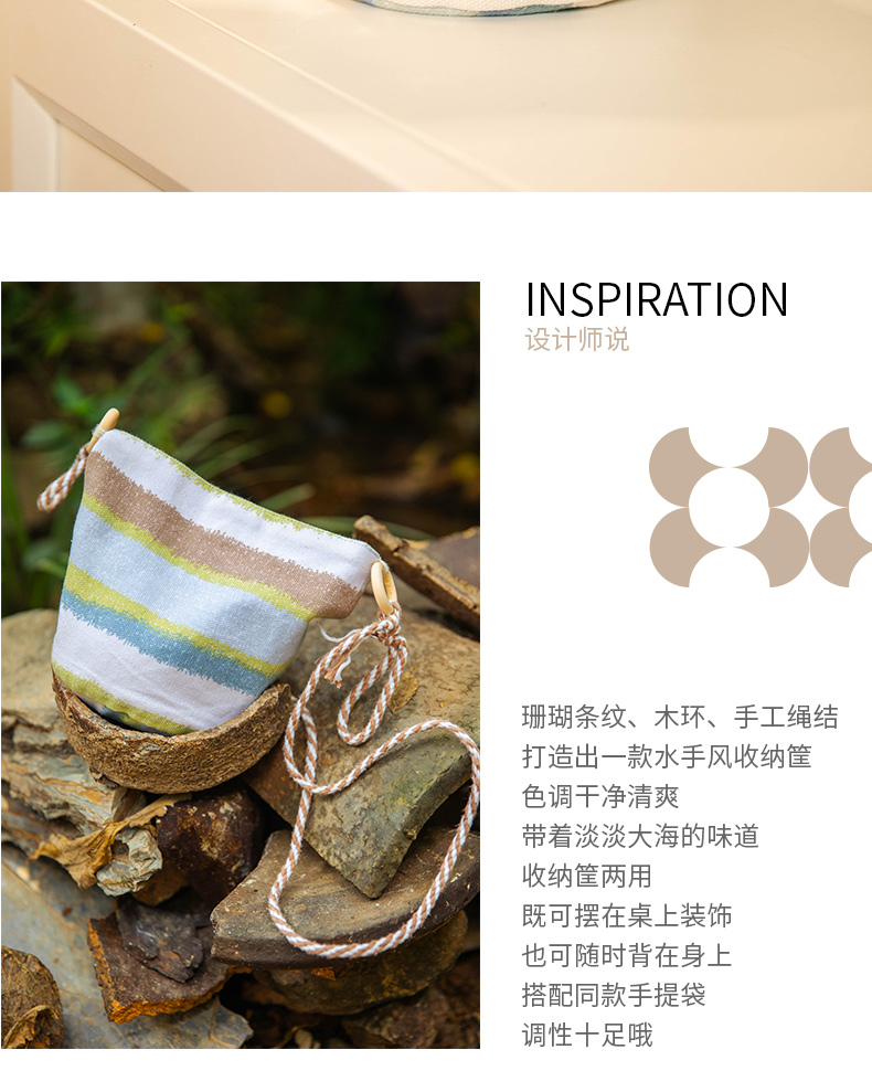 海洋条纹收纳筐棉绳编制收纳包桌面玩具杂物篮子