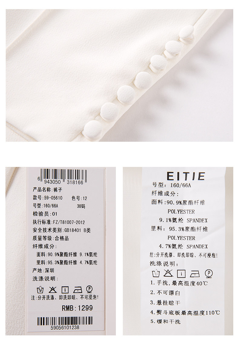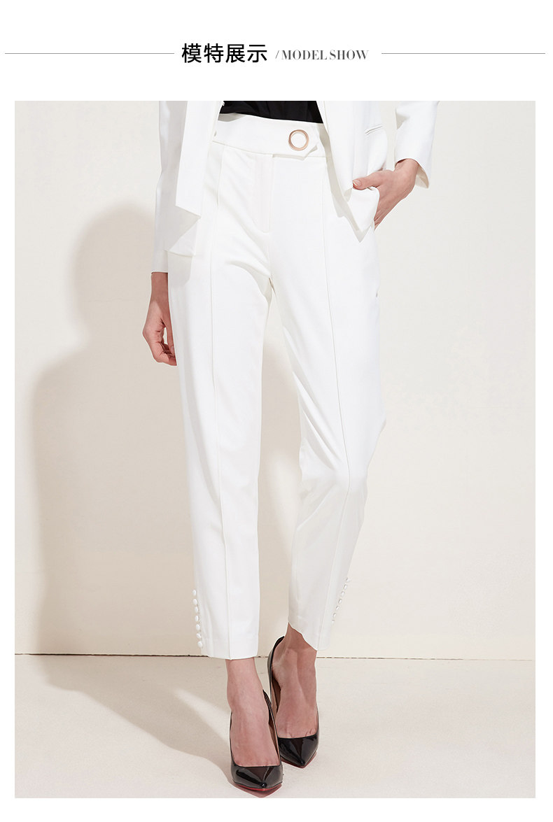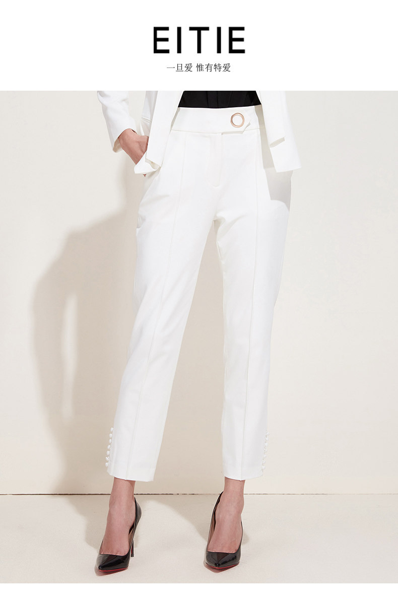 下架,EITIE爱特爱新款女装春装OL休闲正装裤纽扣装饰直筒西装裤子5905610