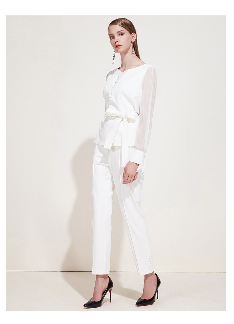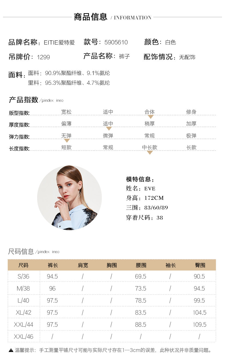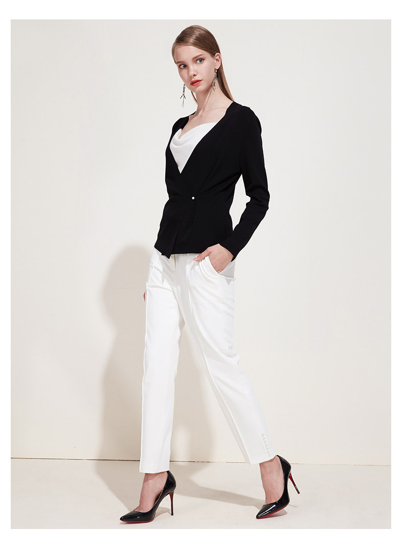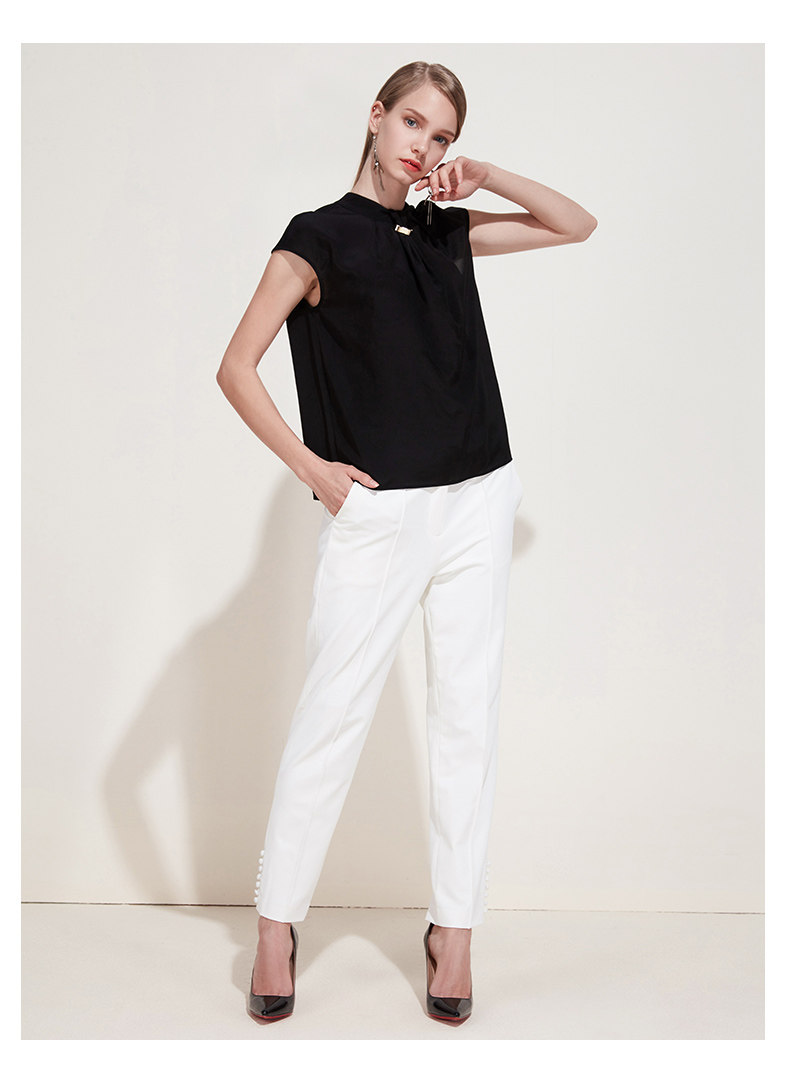 下架,EITIE爱特爱新款女装春装OL休闲正装裤纽扣装饰直筒西装裤子5905610