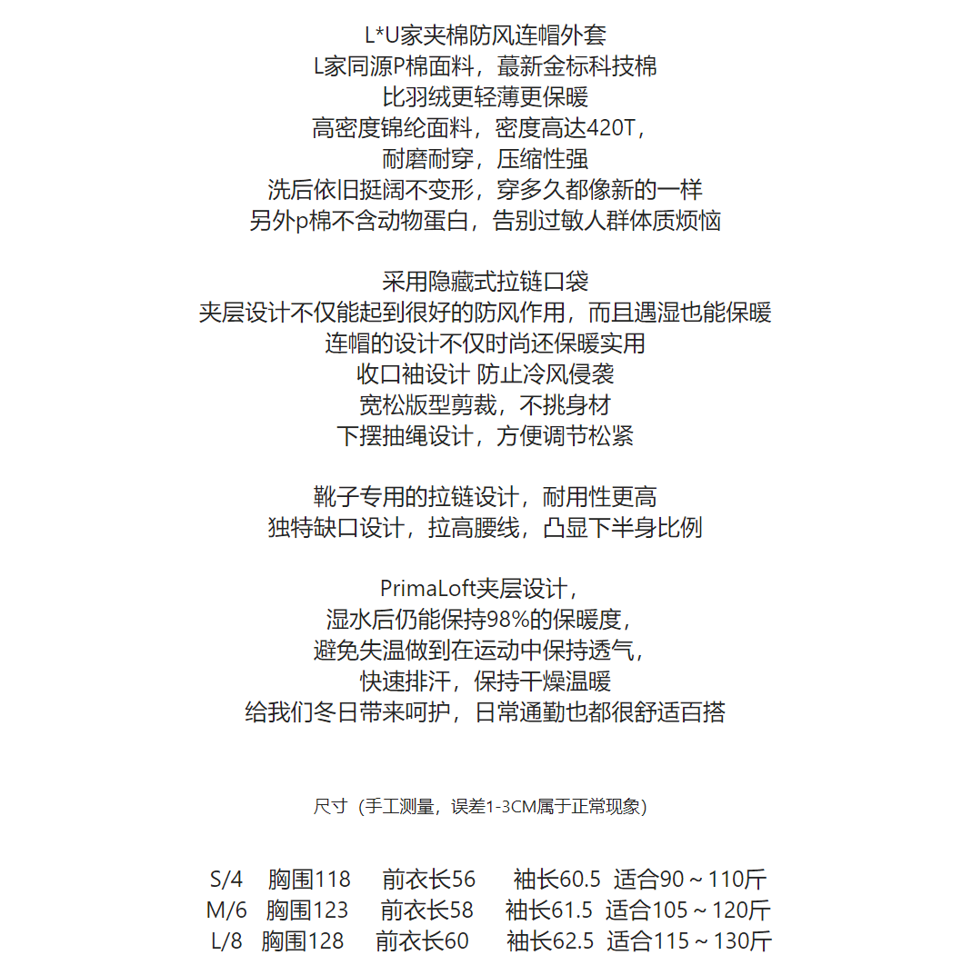 丁摩 L家同款高品金标科技棉保暖夹棉防风运动休闲连帽外套冬5ZF-92301