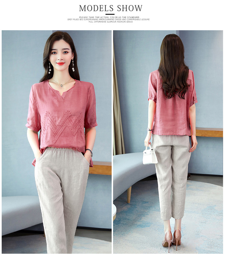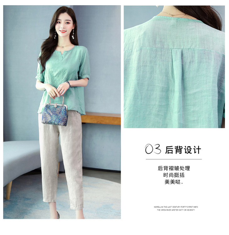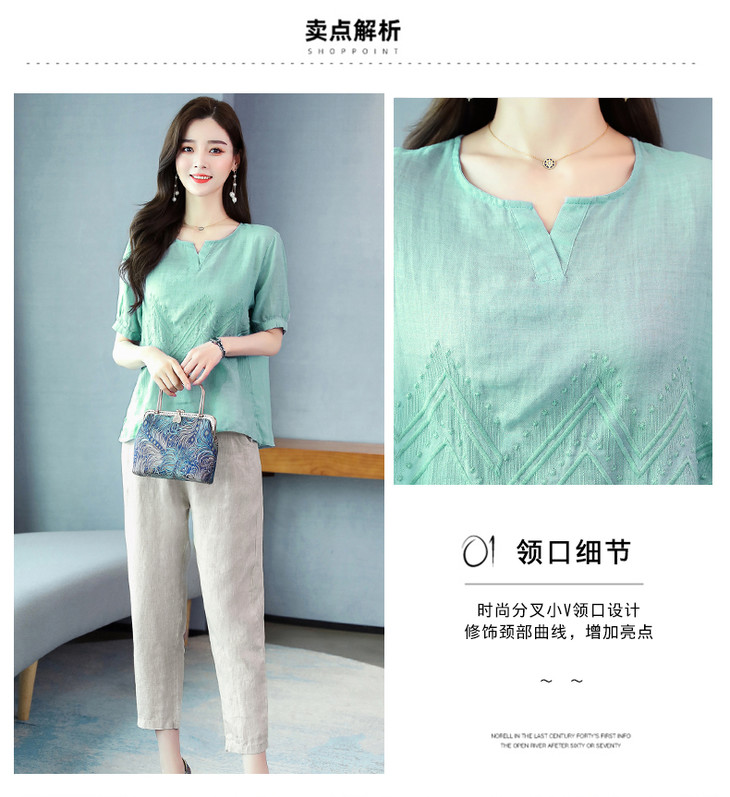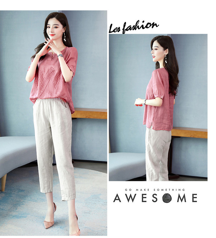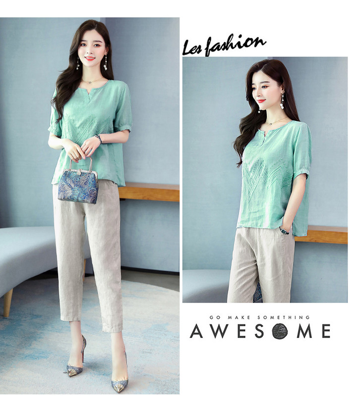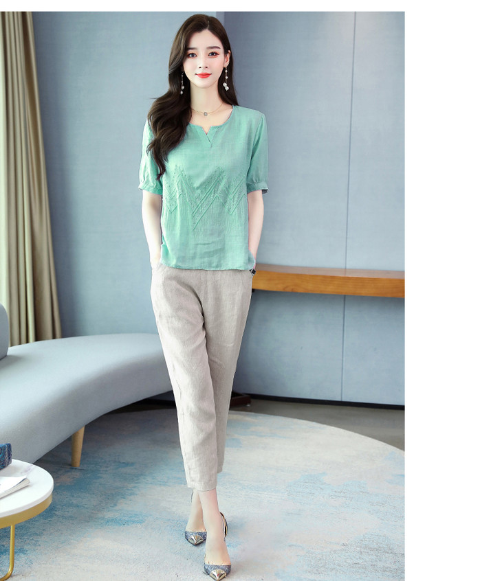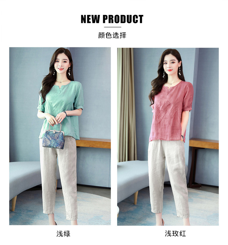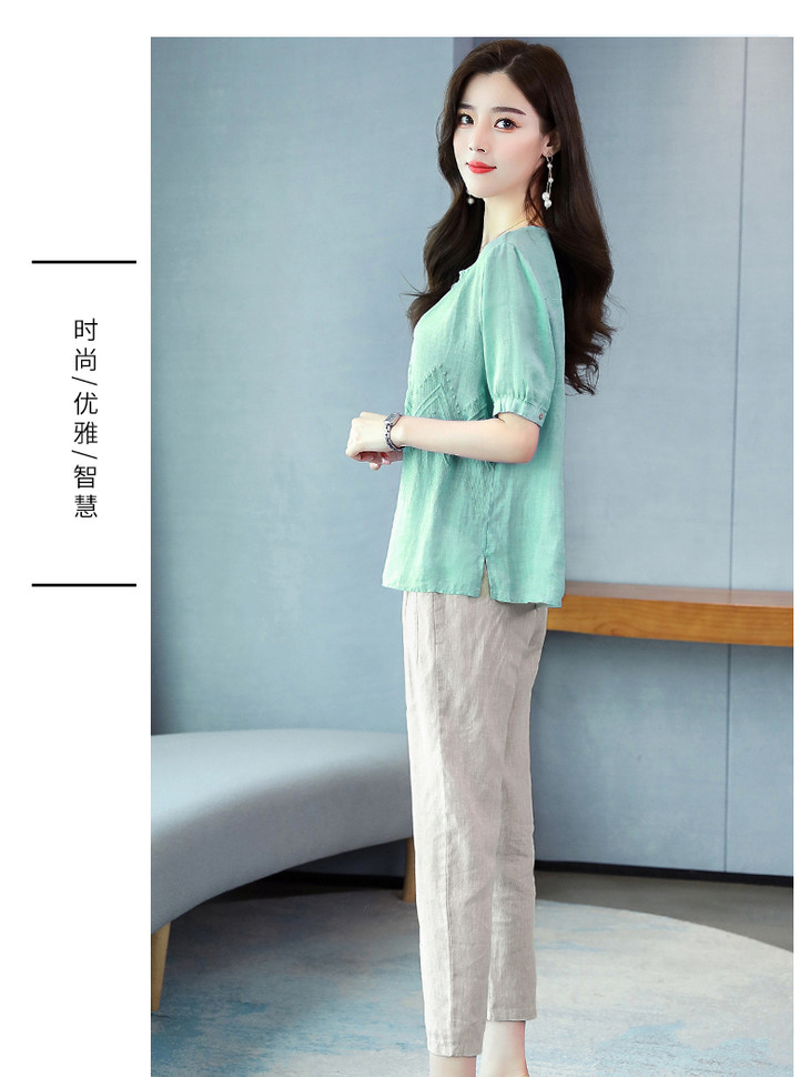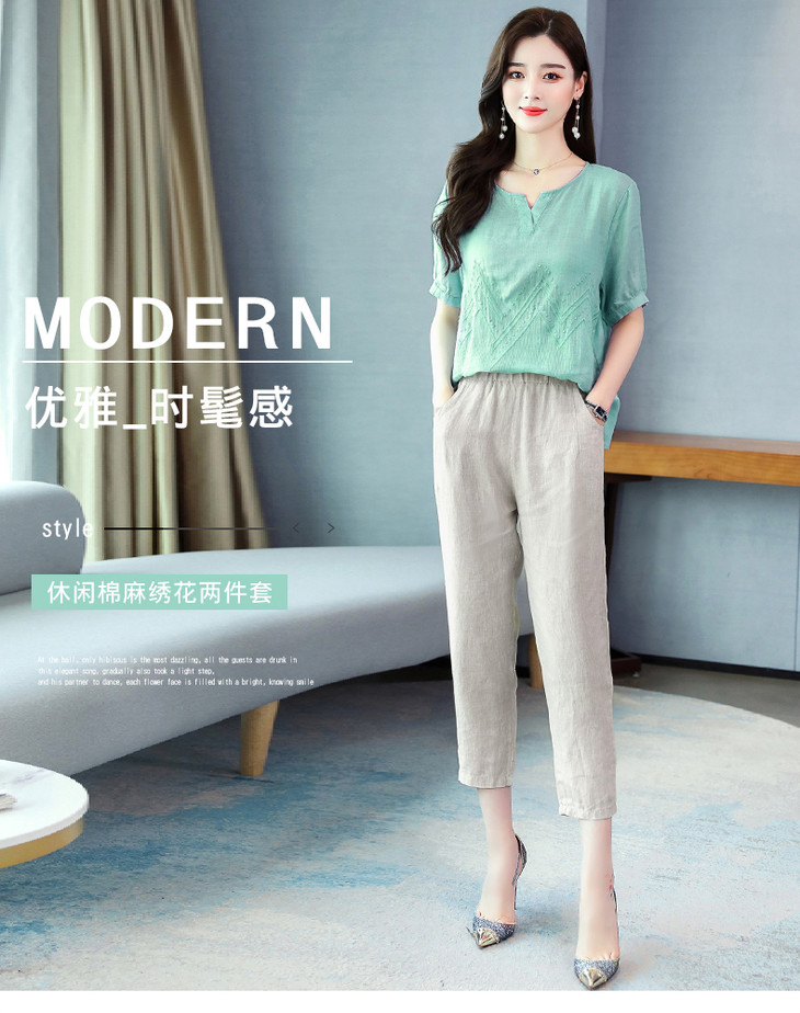 Q-YM2056A新品气质休闲,碎花文艺棉麻两件套