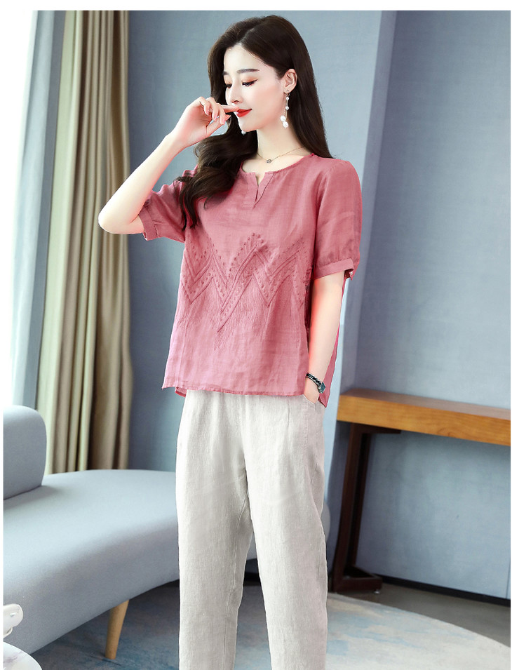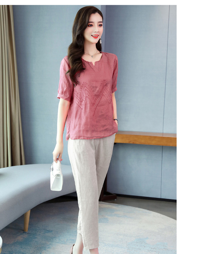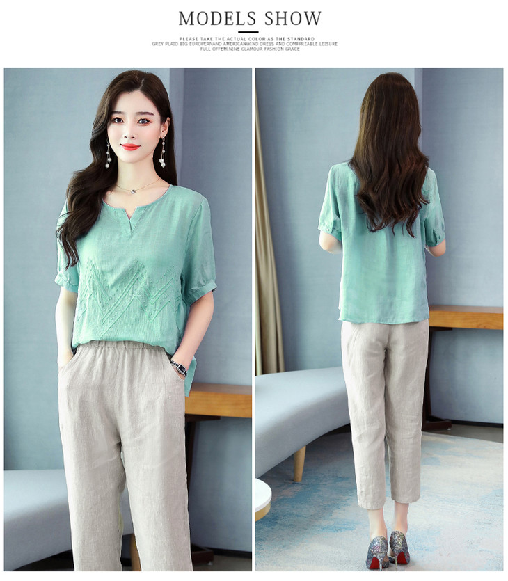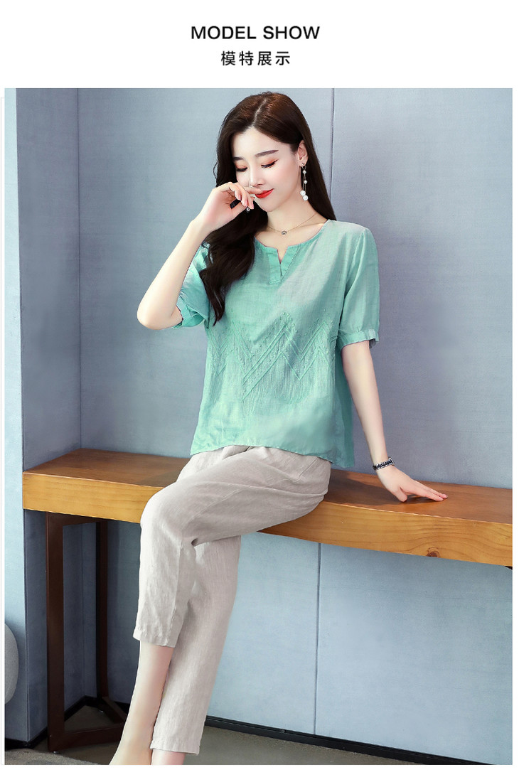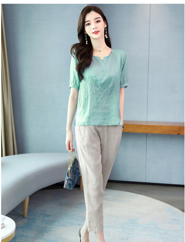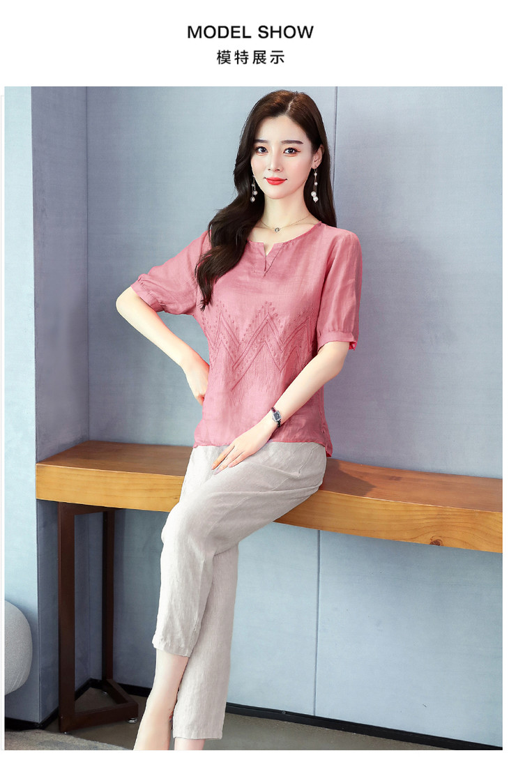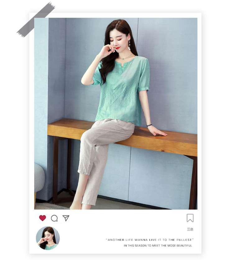 Q-YM2056A新品气质休闲,碎花文艺棉麻两件套