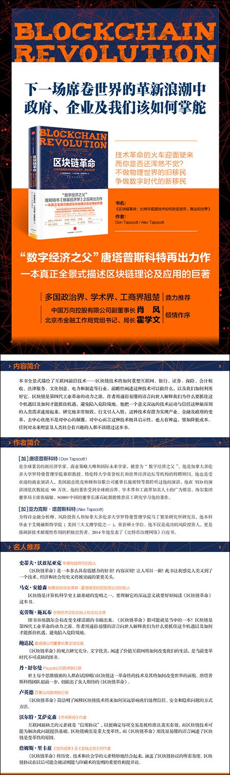 《区块链革命》就如数字货币世界的一本地图集,巧妙地解释了当前的形势,同时为我们通向一个更公平、更高效及更四通八达的全球金融系统指出了一条前进的道路。
