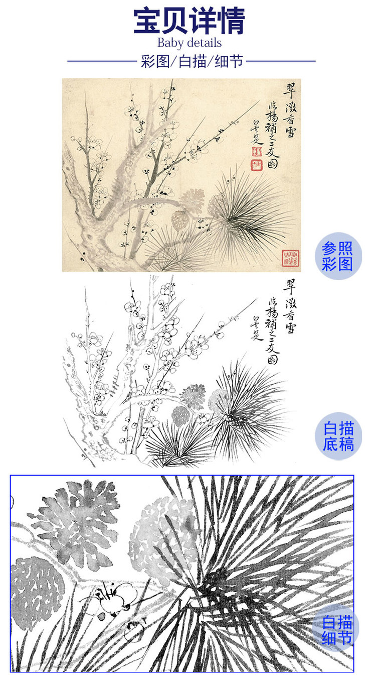 【有步骤、大彩图】李晓明工笔画白描底稿《临宋雪树寒禽图》伯劳鸟初学者临摹花鸟线稿KC24