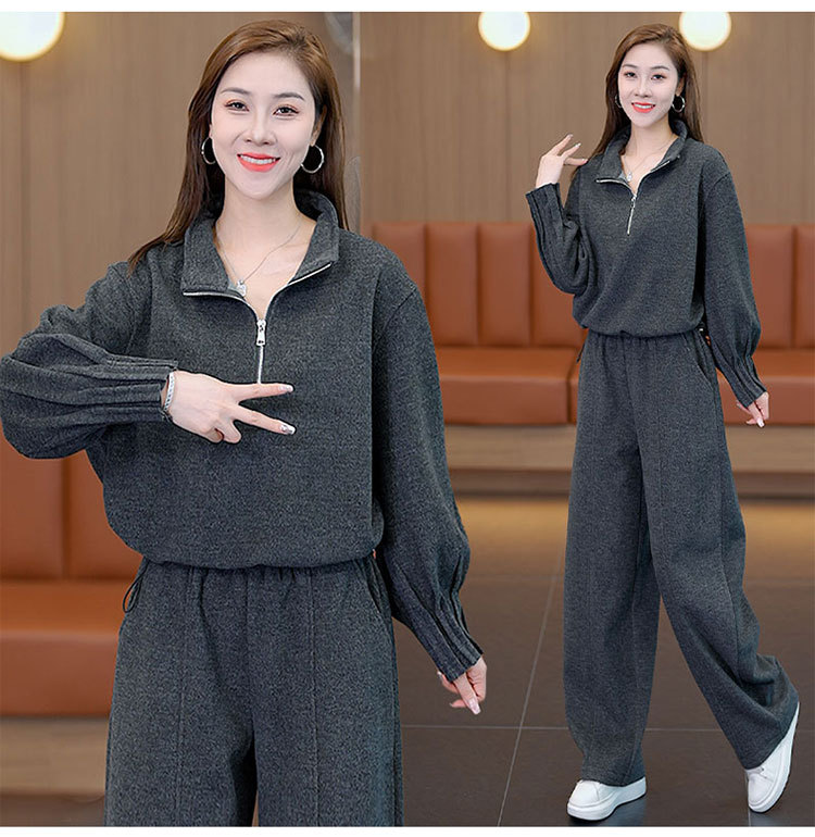 YM 8556-108时尚休闲运动服套装洋气减龄立领卫衣阔腿裤两件套 商品图0