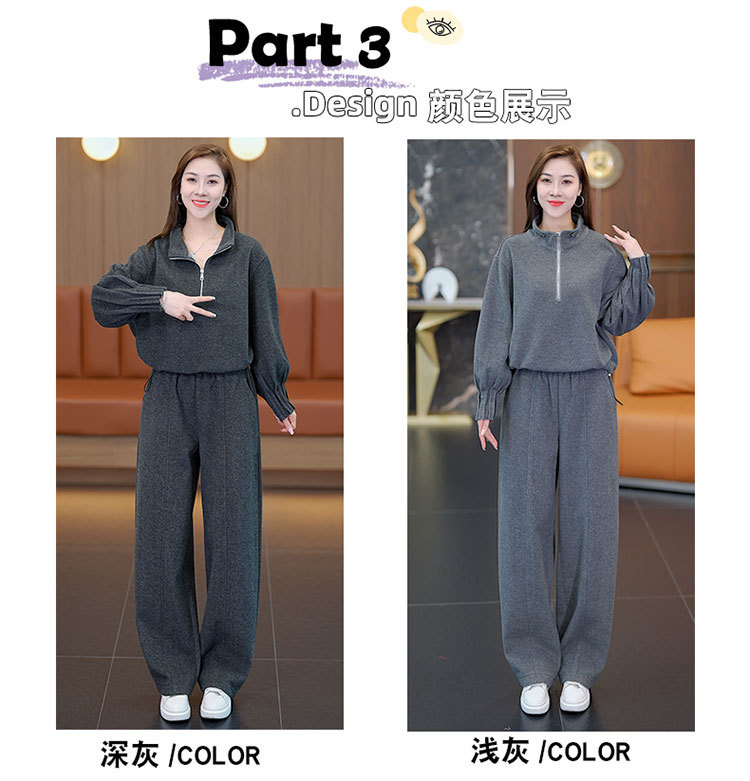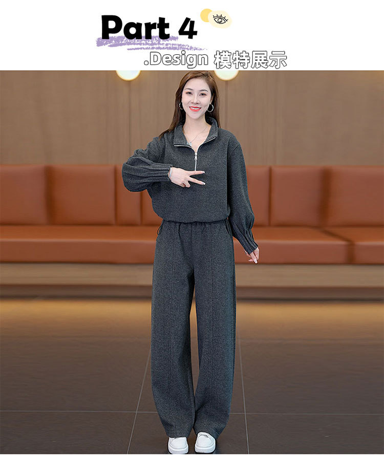 YM 8556-108时尚休闲运动服套装洋气减龄立领卫衣阔腿裤两件套 商品图3