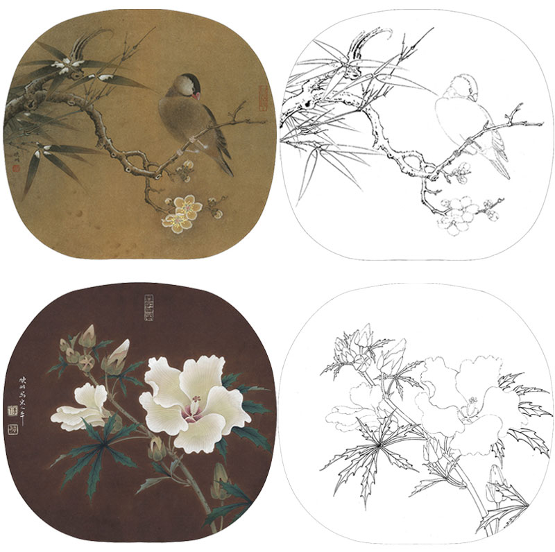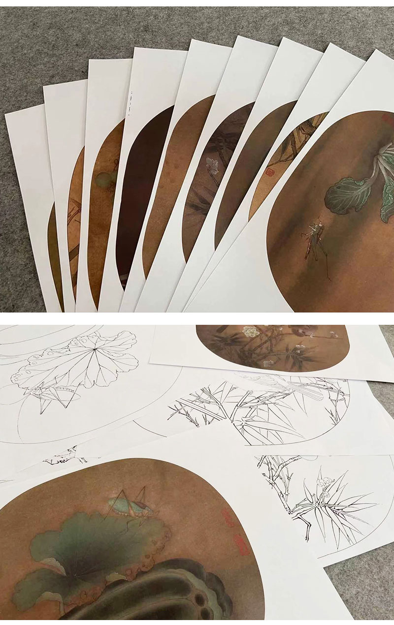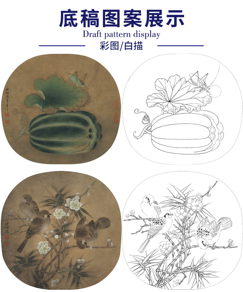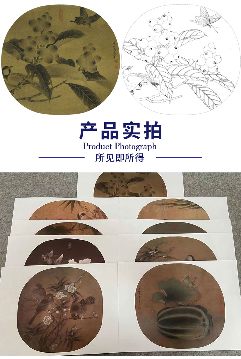 李晓明工笔花鸟画白描底稿麻雀葡萄小品一套九幅册页初学者尺寸35×38厘米TW08