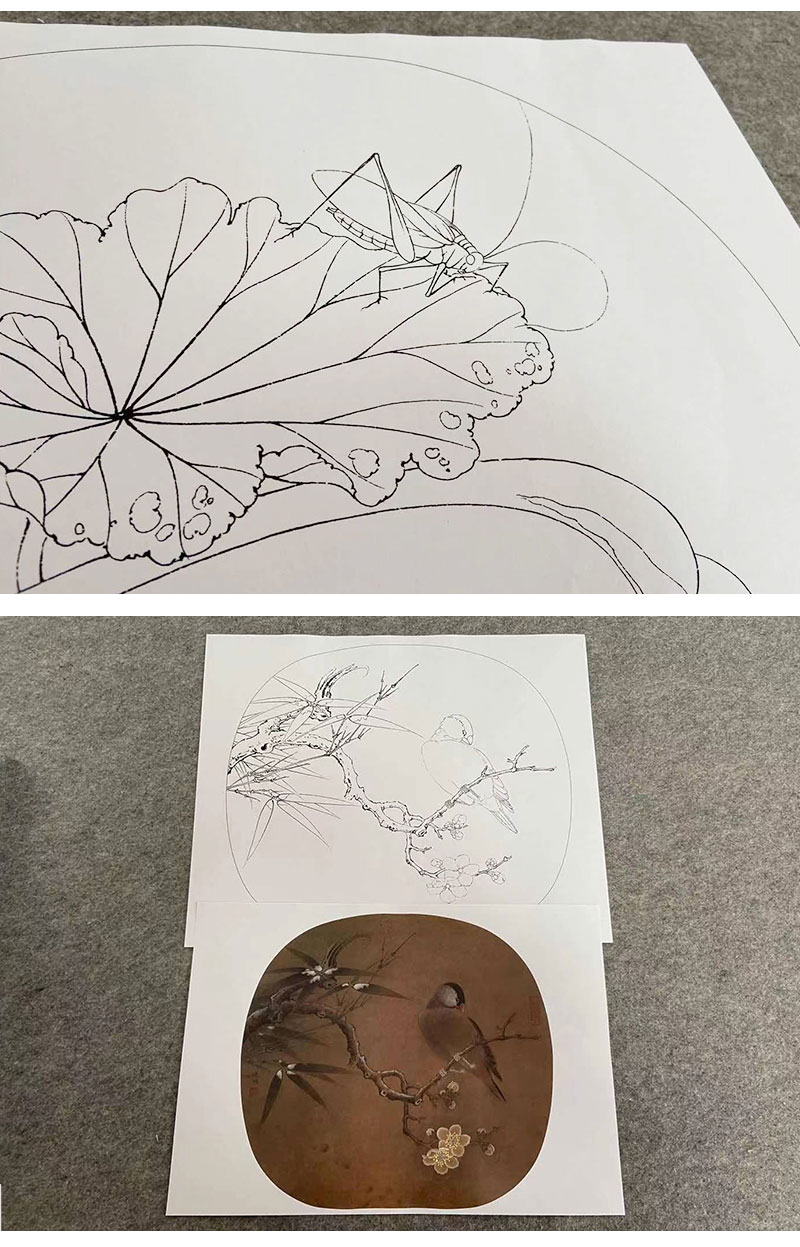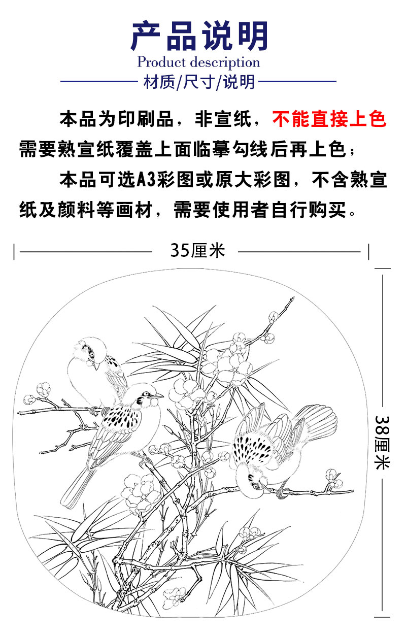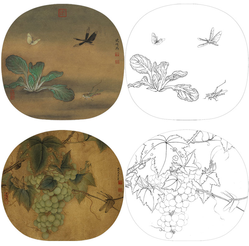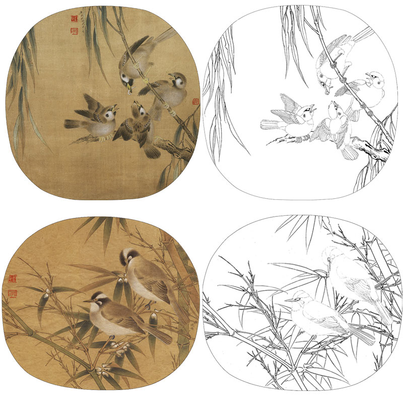 李晓明工笔花鸟画白描底稿麻雀葡萄小品一套九幅册页初学者尺寸35×38厘米TW08