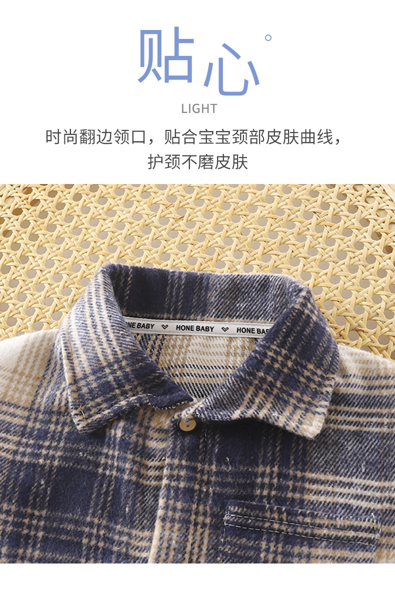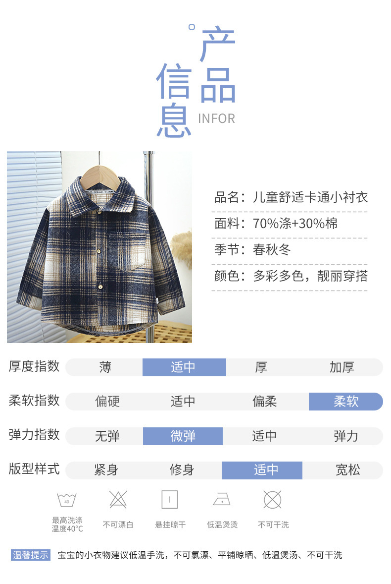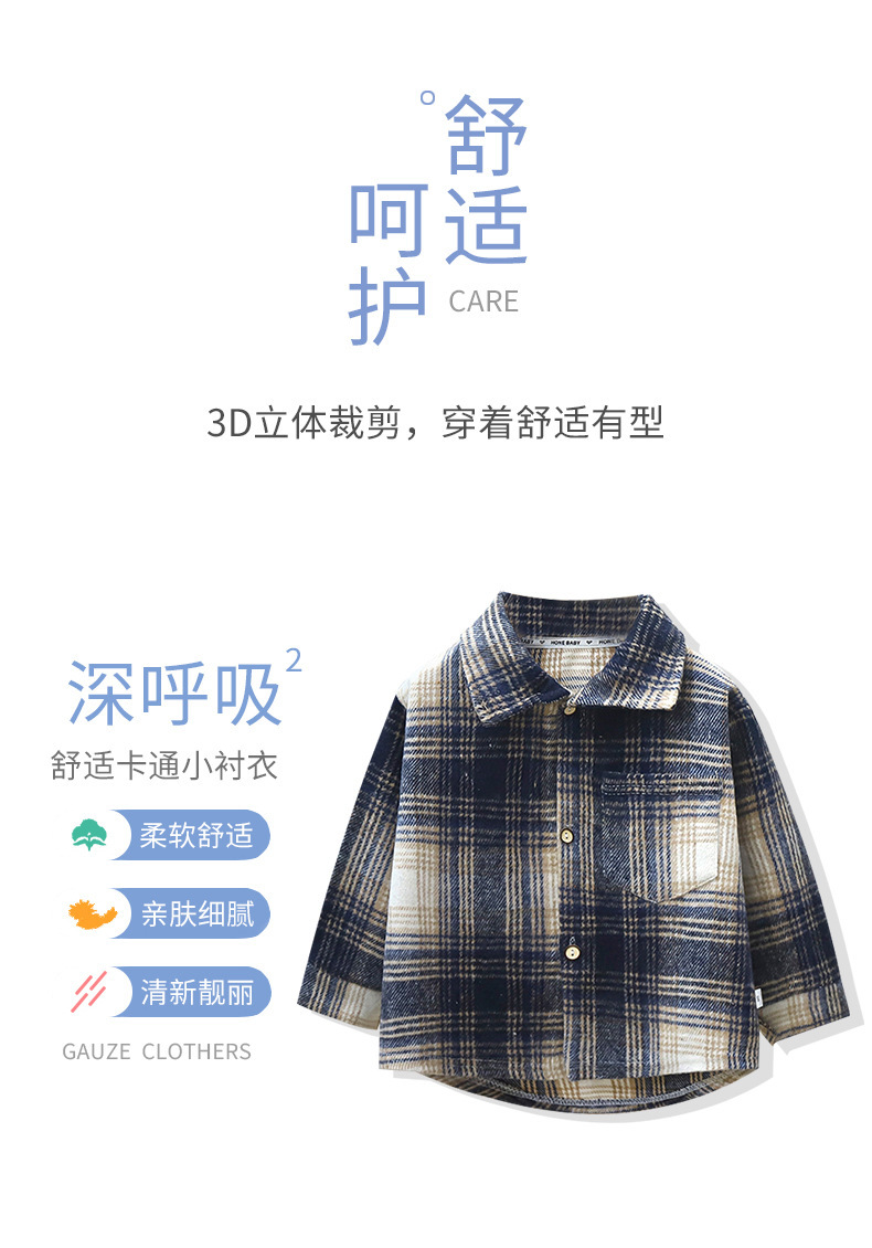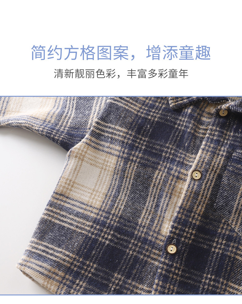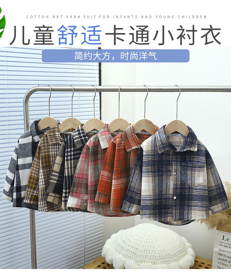 【儿童舒适卡通小衬衣,简约大方,时尚洋气】儿童长袖男童衬衣 宝宝新款韩版春秋 可外穿女童格子翻领衬衫外套-QQ