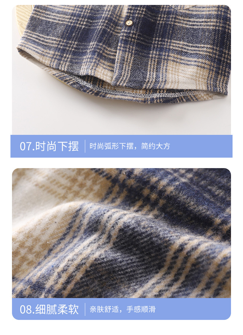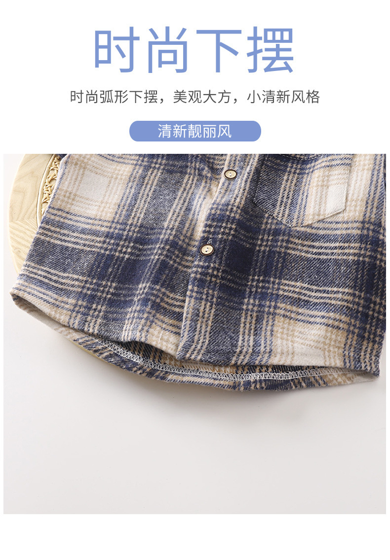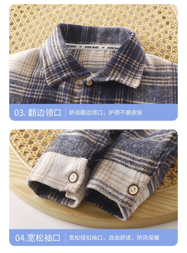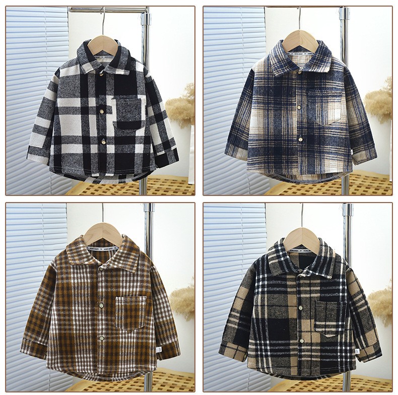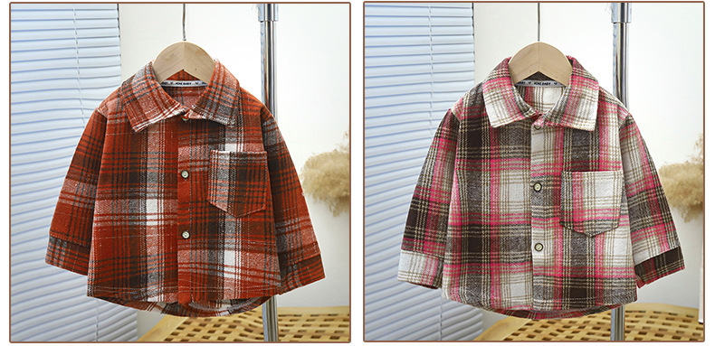 【儿童舒适卡通小衬衣,简约大方,时尚洋气】儿童长袖男童衬衣 宝宝新款韩版春秋 可外穿女童格子翻领衬衫外套-QQ