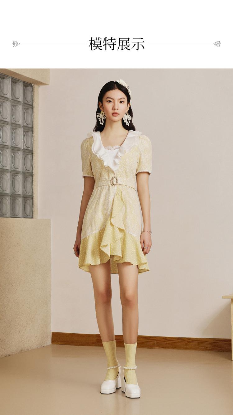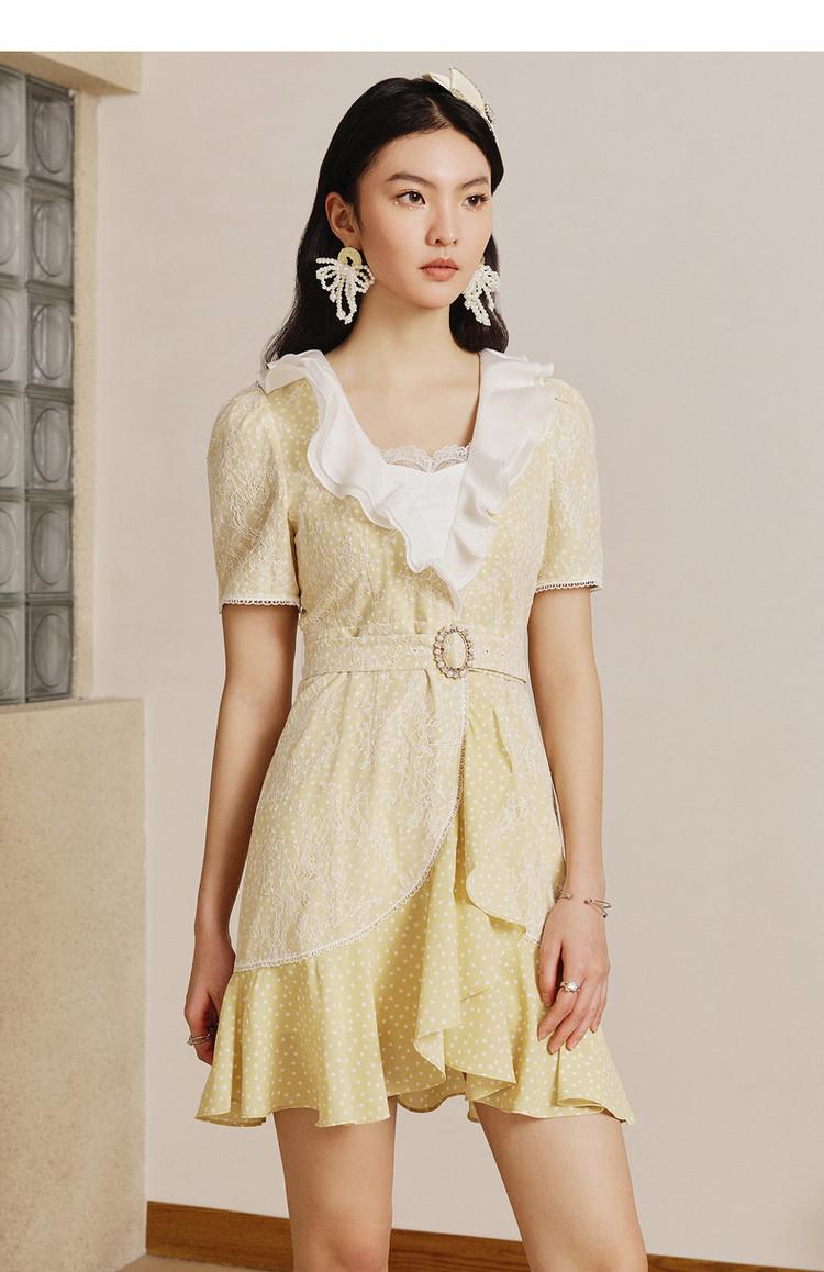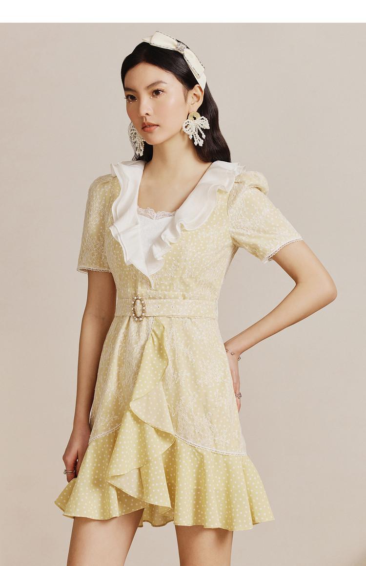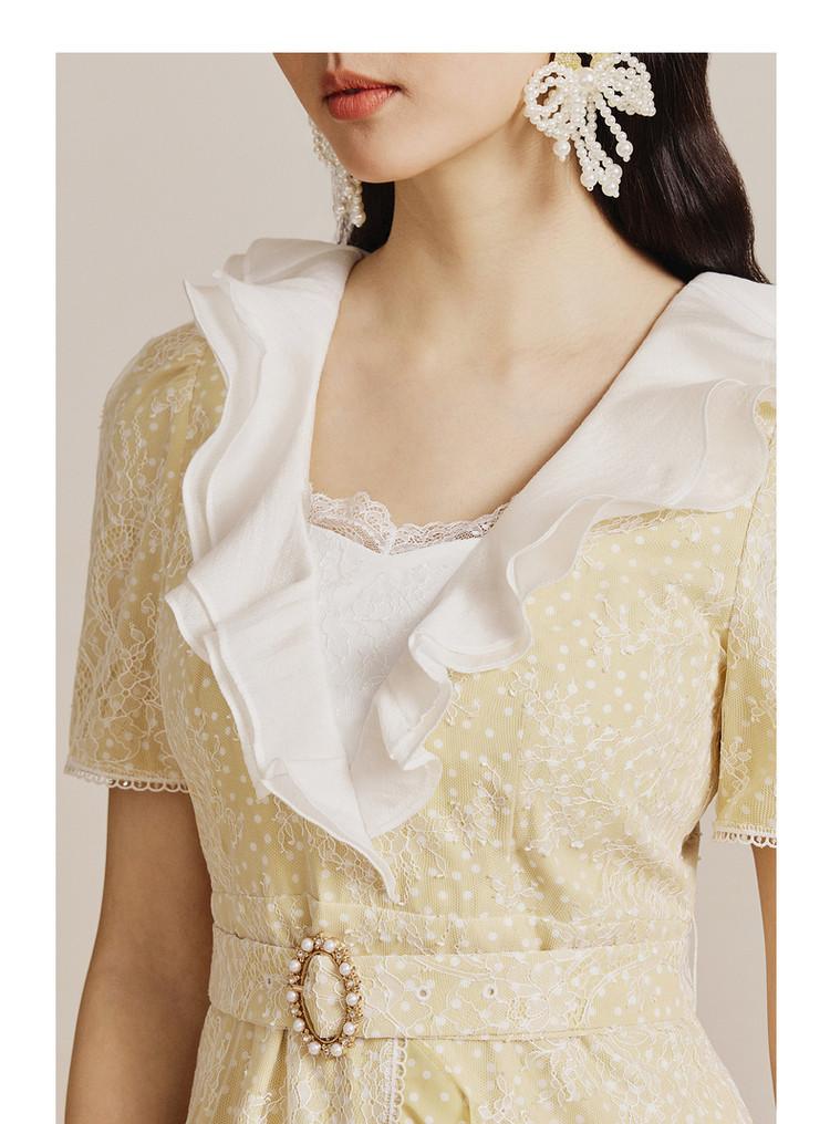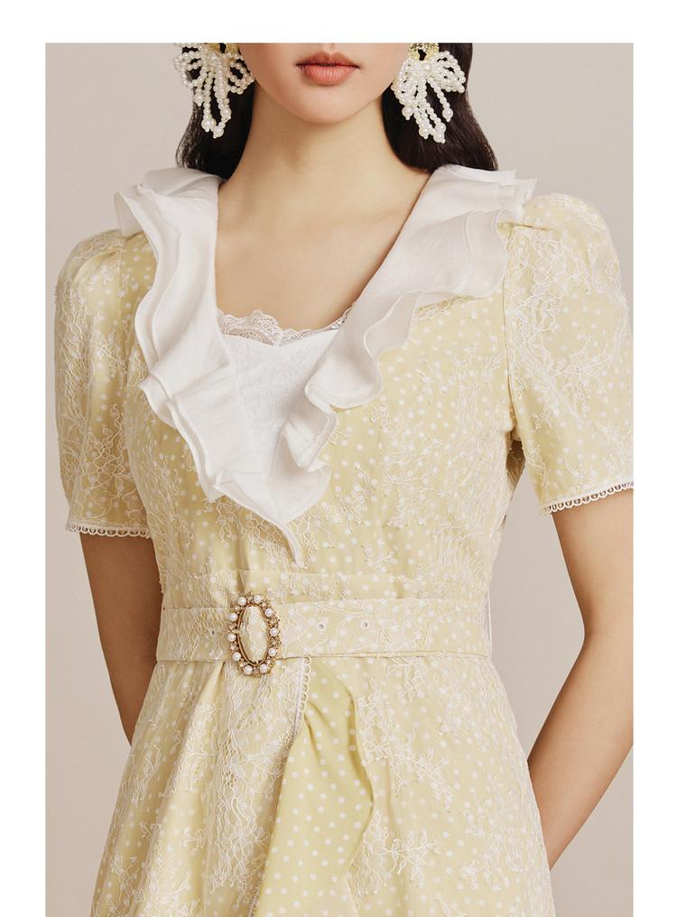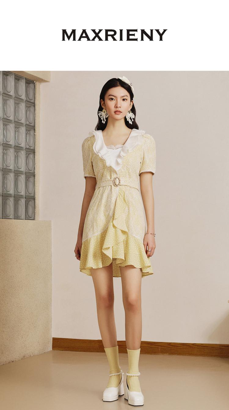 MAXRIENY | 法式精致复古氛围感波点蕾丝荷叶边连衣裙气质时尚(货号:MS88DR067D30)